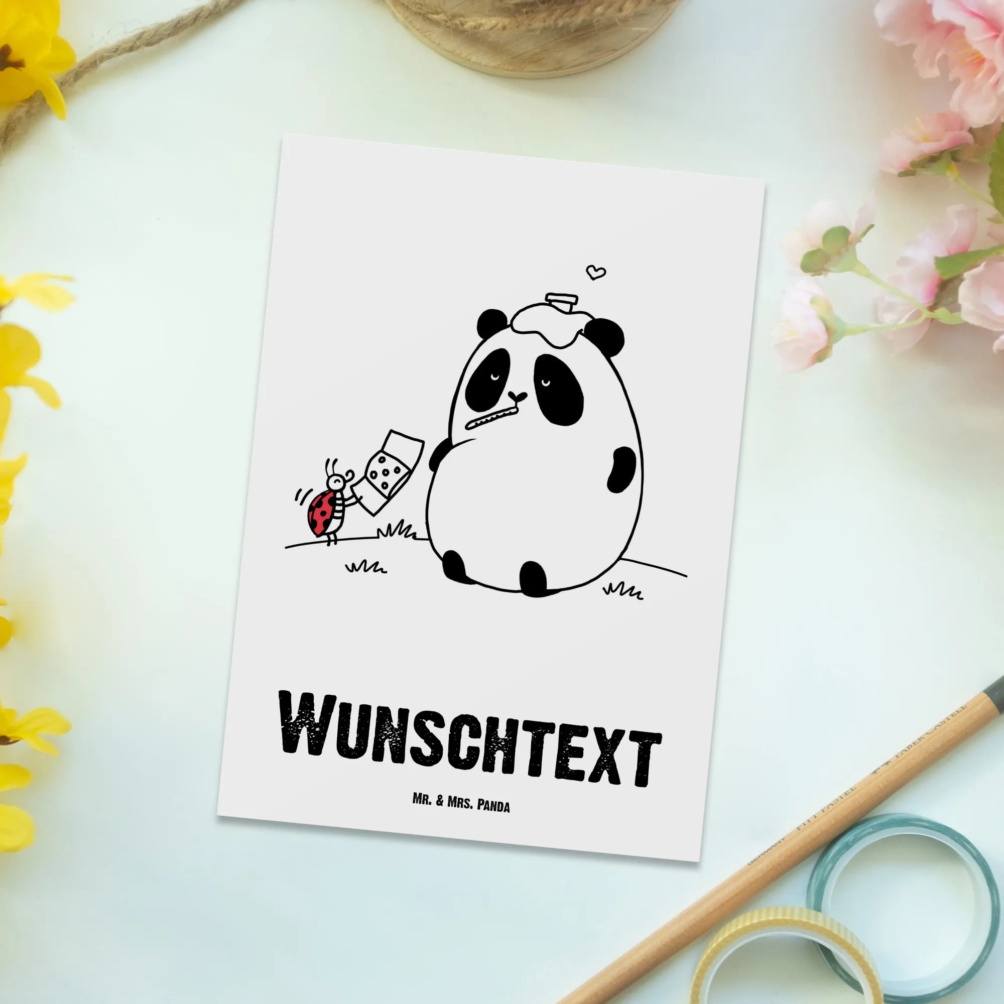Die personalisierte Postkarte 'Easy & Peasy Gute Besserung' von Mr. & Mrs. Panda ist das perfekte Geschenk für alle, die ihren Liebsten eine kleine Freude machen möchten, besonders wenn sie sich nicht wohl fühlen. Mit diesem süßen Motiv sendest du nicht nur gute Besserungswünsche, sondern auch eine Umarmung durch die Post!