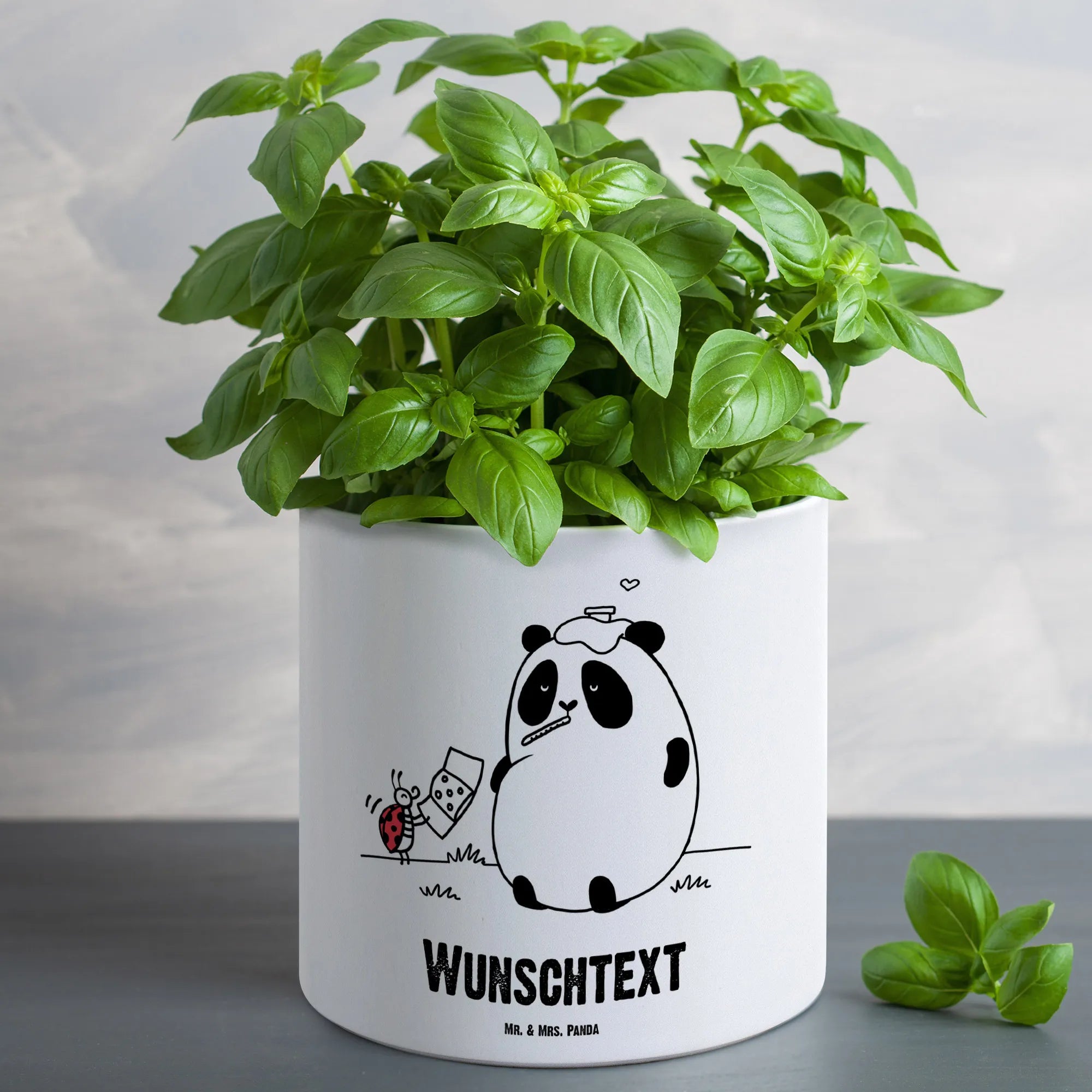 Der personalisierte XL Blumentopf "Easy & Peasy Gute Besserung" von Mr. & Mrs. Panda ist das perfekte Geschenk für jeden, der sich um seine Pflanzen und seine Lieben kümmert. Mit einem süßen Panda, der erkältet auf einer bunten Wiese sitzt und ein Pflaster von seinem besten Freund, dem Marienkäfer, erhält, bringt dieser Blumentopf nicht nur Freude, sondern auch eine Portion Menschenliebe in jeden Raum. Ob für Freunde, Familie oder einfach mal zur Aufmunterung – dieser personalisierbare Pflanztopf mit dem motivierenden Spruch "Gute Besserung!" ist ideal, um jemandem ein Lächeln ins Gesicht zu zaubern.