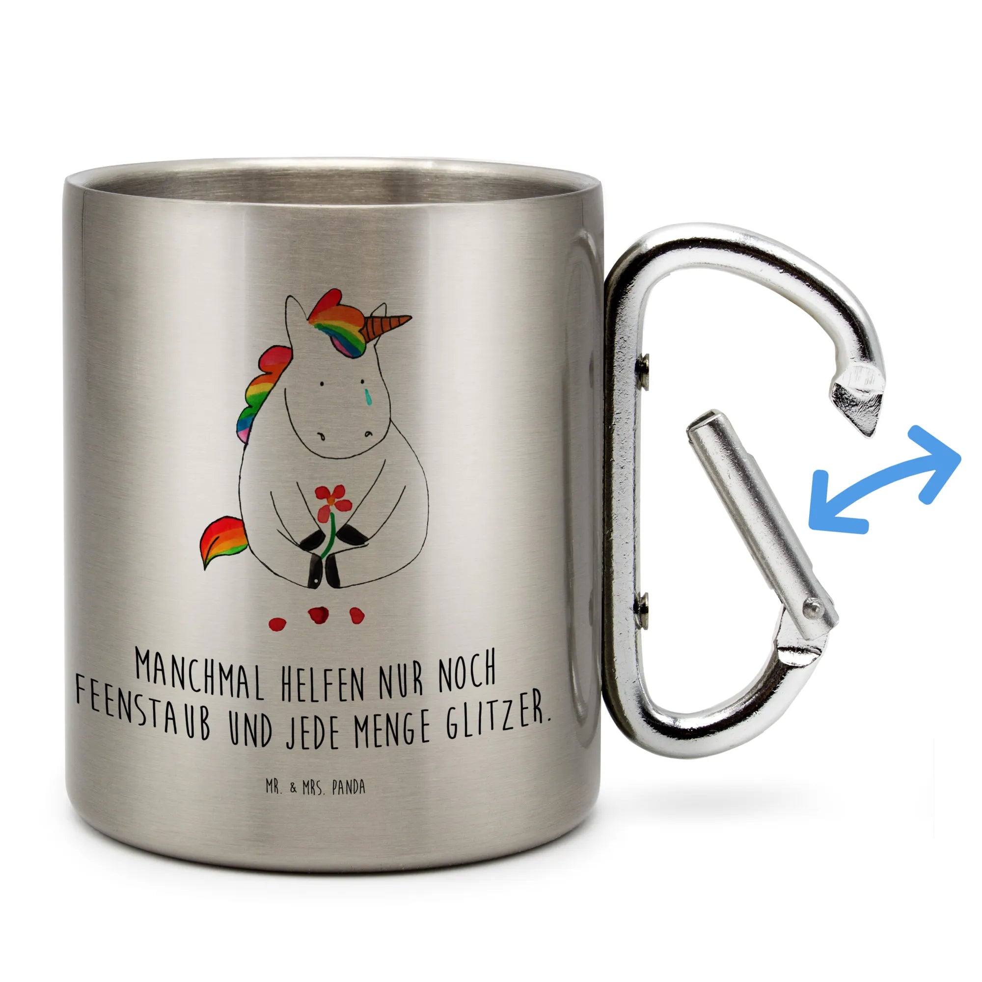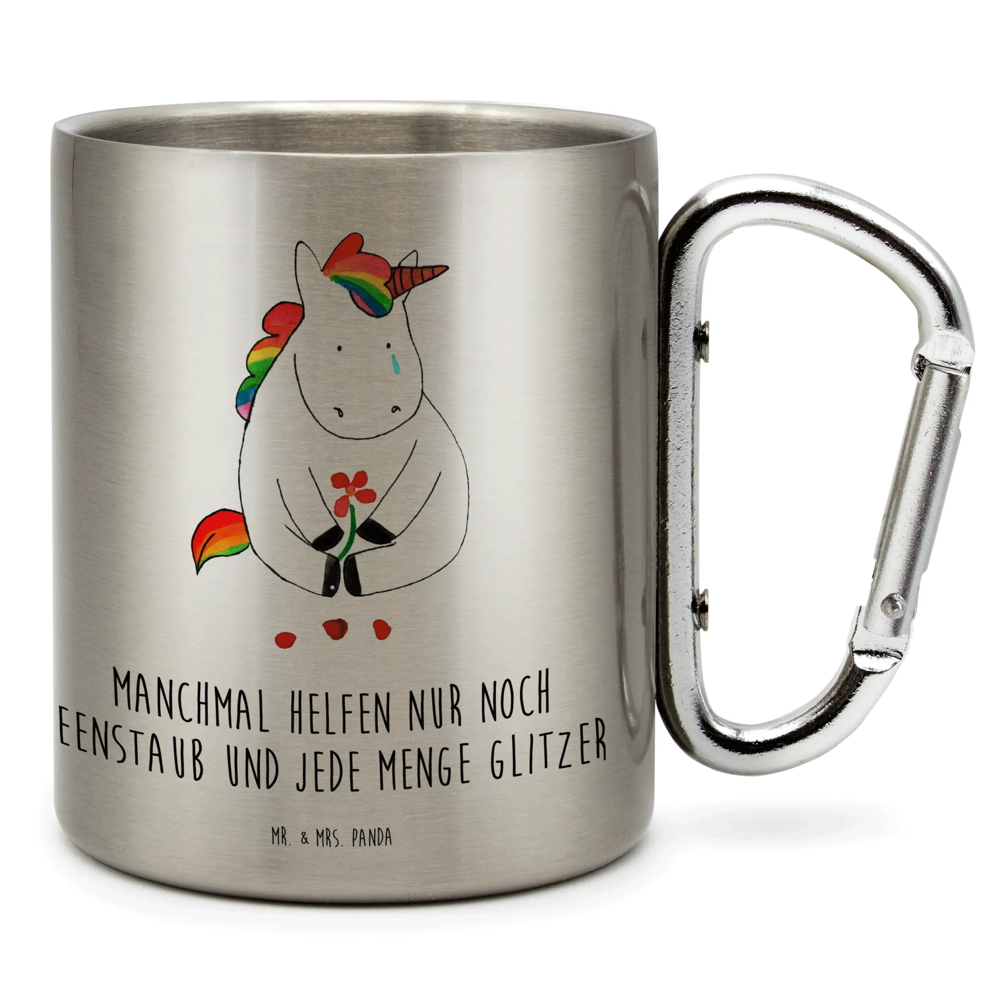 Du bist auf der Suche nach dem idealen Geschenk für einen Freund, der einen Liebeskummer hat, oder möchtest einer geliebten Person ein bisschen Glitzer und Freude schenken? Dann ist dieser Edelstahlbecher mit dem süßen Einhorn genau das Richtige! Die lustigen und liebevollen Designs von Mr. & Mrs. Panda sind perfekt für jeden Anlass, sei es ein Geburtstag, ein Trostgeschenk oder einfach nur so als kleine Aufmerksamkeit. Hole dir jetzt diesen besonderen Edelstahlbecher und bringe ein bisschen Zauber in deinen Alltag oder das Leben deiner Liebsten. Das traurige Einhorn ist eine bezaubernde Erinnerung daran, dass nach jedem Regen auch wieder die Sonne scheint – und etwas Feenstaub kann dabei immer helfen!