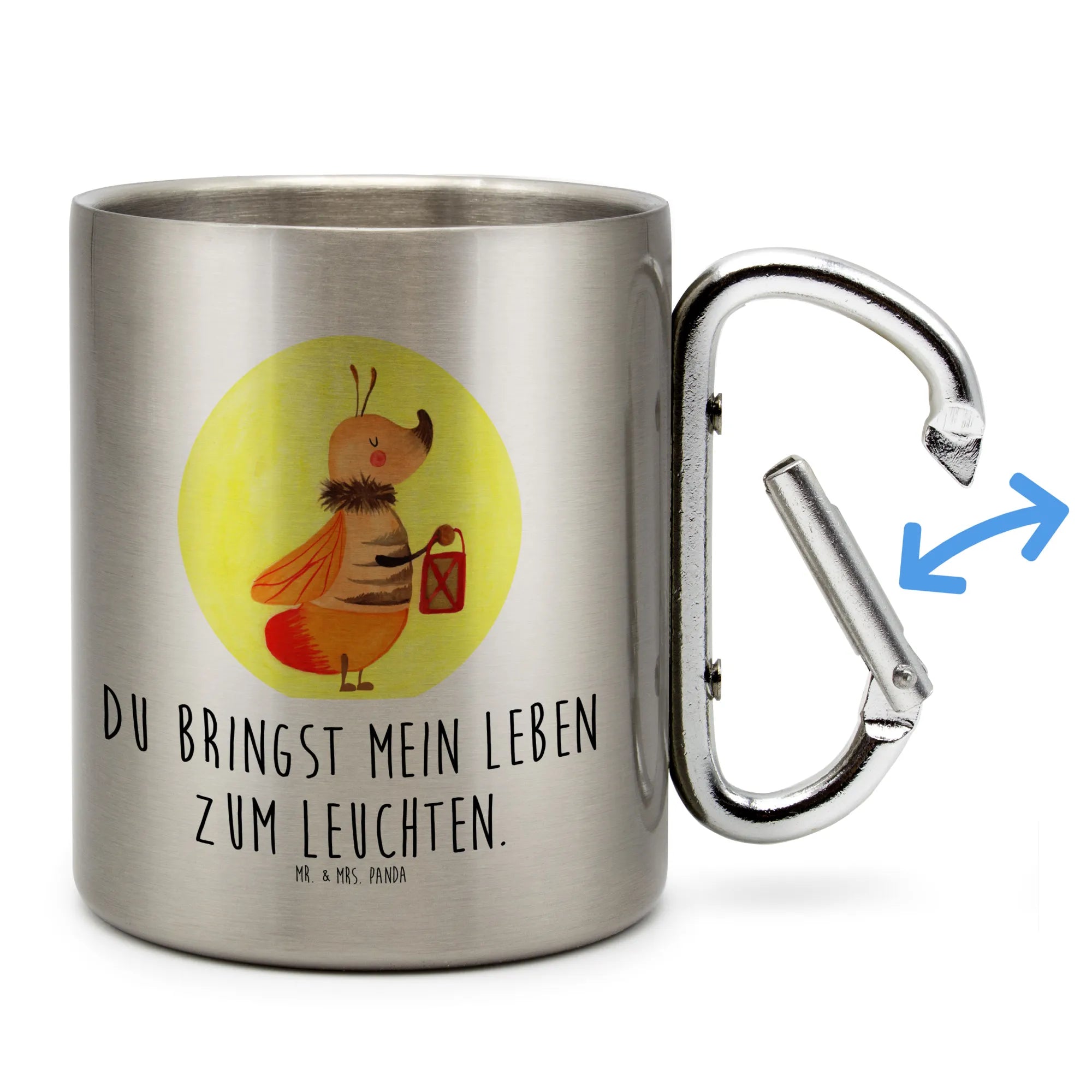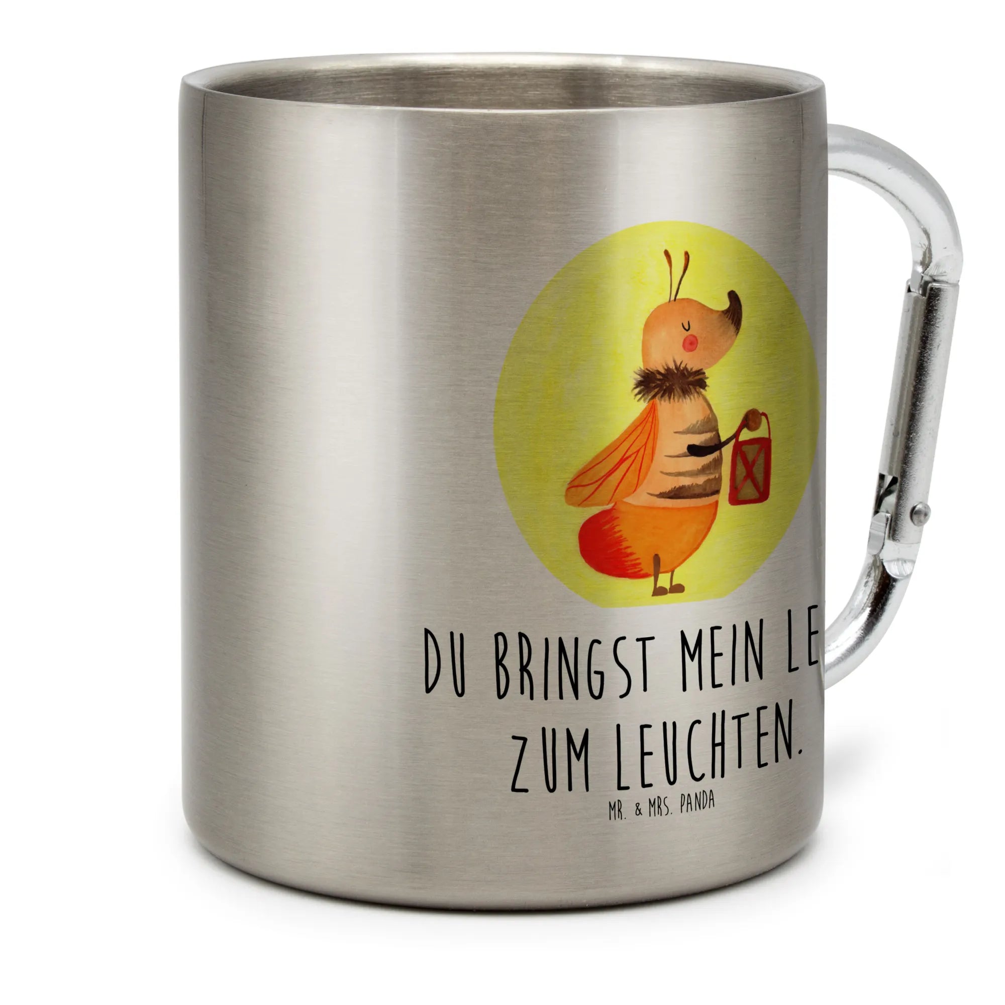 Entdecke die zauberhafte Edelstahltasse mit dem niedlichen Glühwürmchen-Motiv aus der Small World Kollektion von Mr. & Mrs. Panda! Diese Tasse ist der ideale Begleiter für alle Outdoor-Fans und eignet sich hervorragend für Campingausflüge oder Wanderungen. Der integrierte Karabiner ermöglicht es dir, die Tasse ganz einfach an deinem Rucksack oder Gürtel zu befestigen.