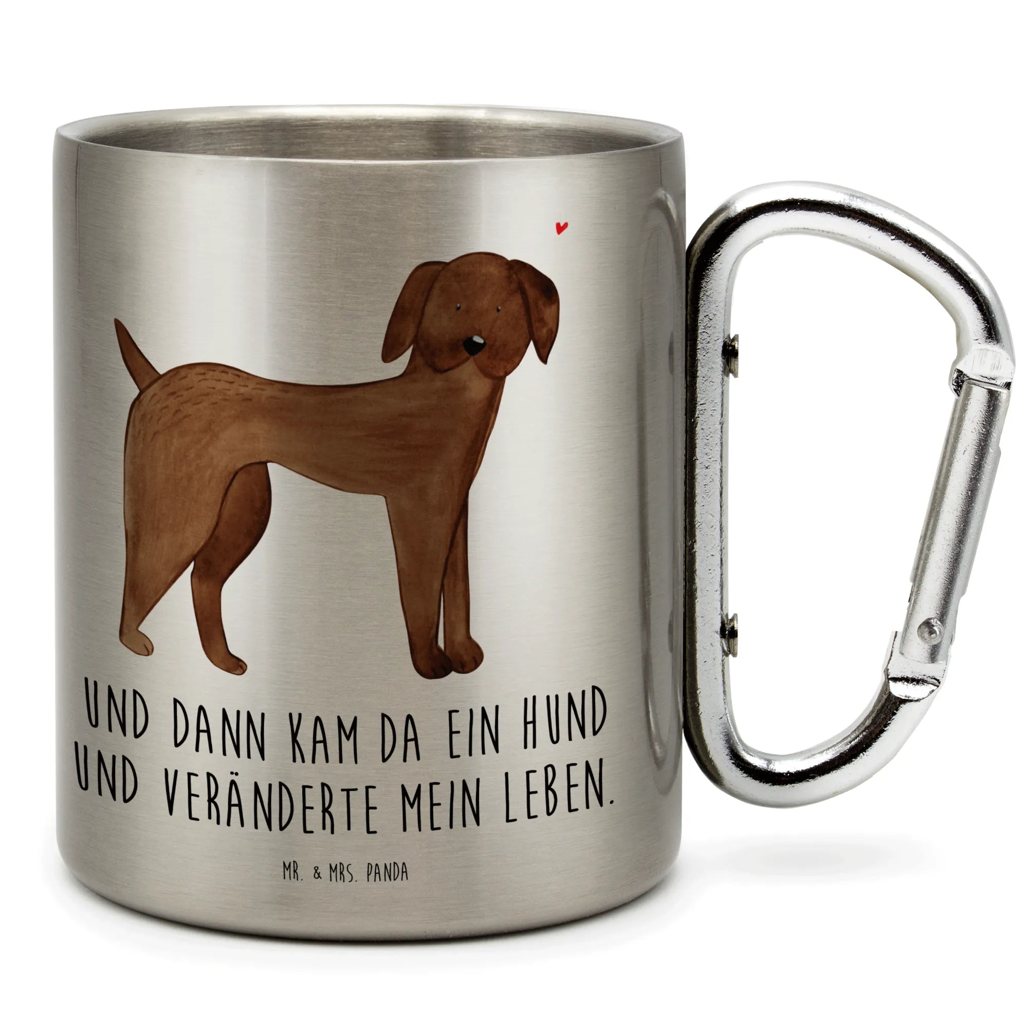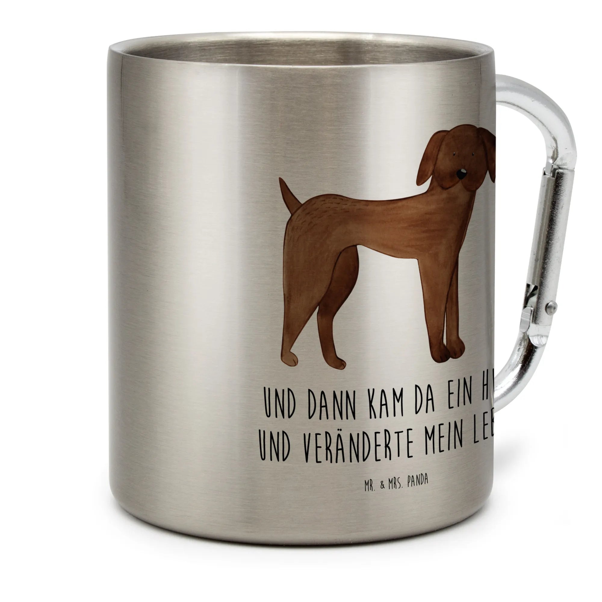Die besondere Note erhält dieser Becher durch das liebevoll gestaltete Hundemotiv und den Spruch "Und dann kam da ein Hund und veränderte mein Leben." Dieser Spruch ist besonders bei Hundebesitzern beliebt und bringt ein Lächeln ins Gesicht. Ob für den besten Freund, die beste Freundin oder für sich selbst - dieser Edelstahlbecher ist eine wunderschöne Geschenkidee für jeden Hundeliebhaber.