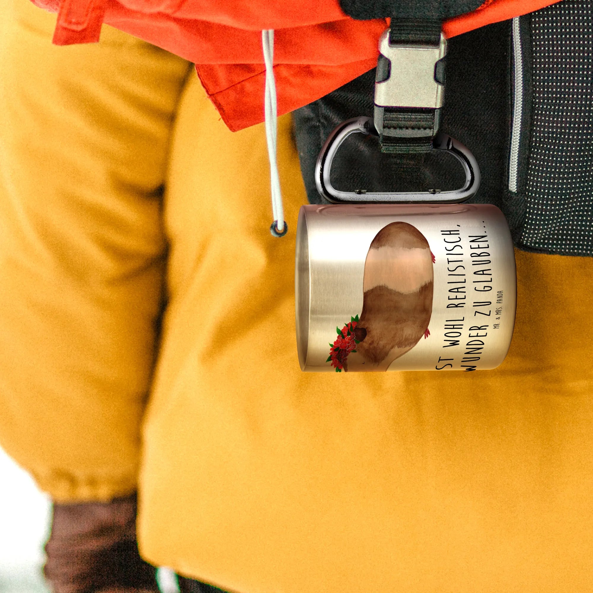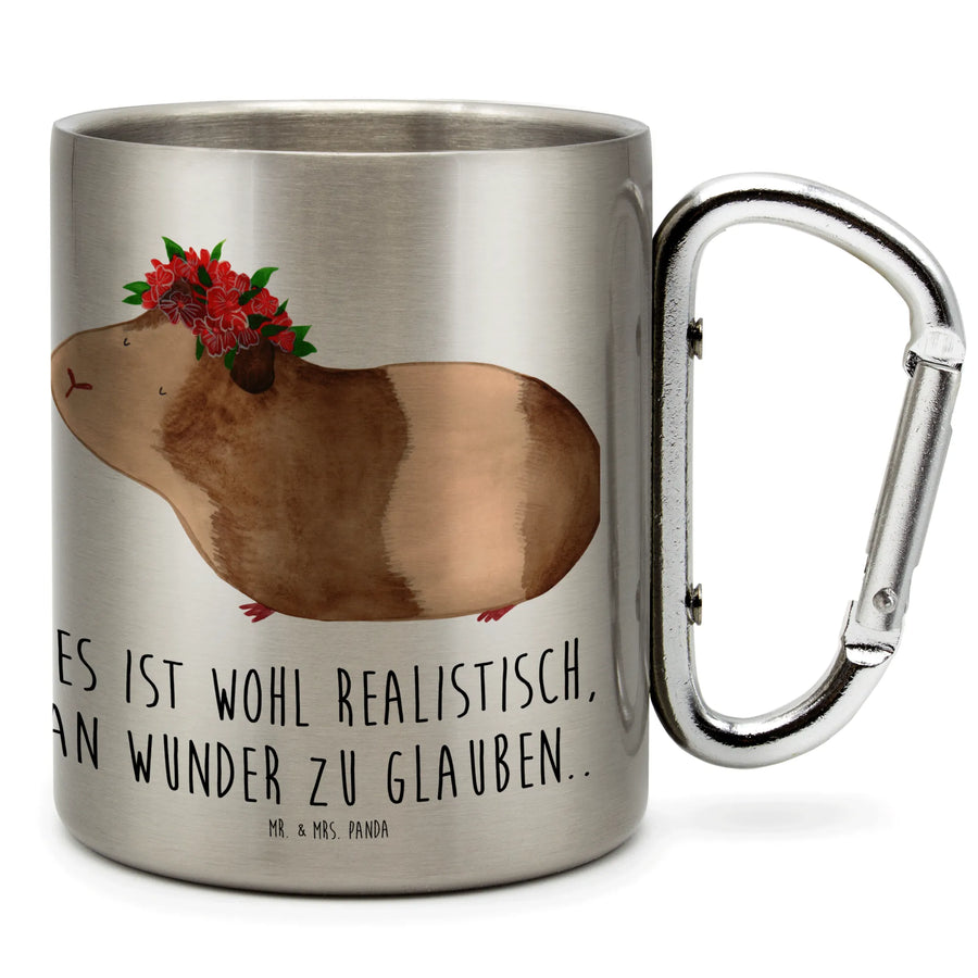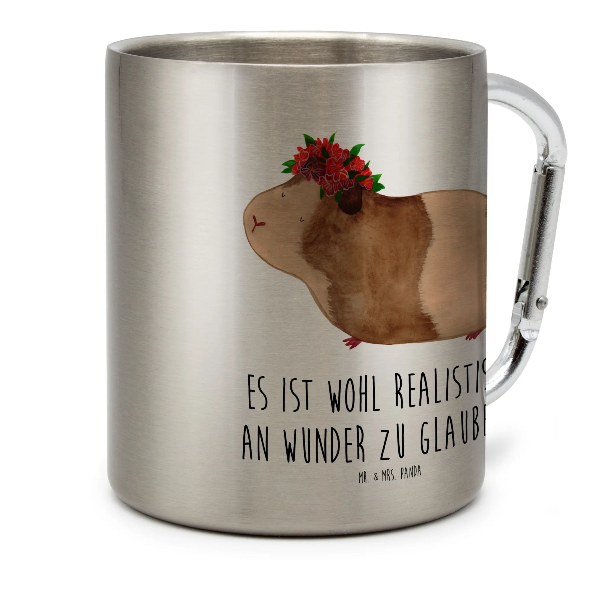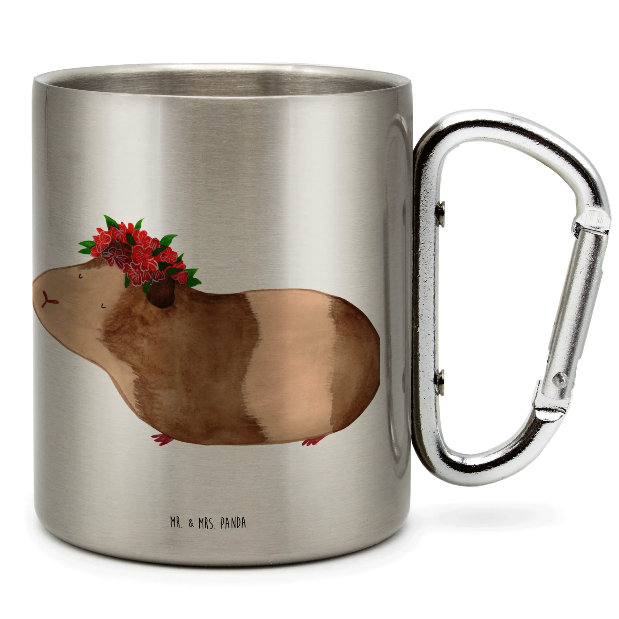 Du bist auf der Suche nach dem perfekten Geschenk für Campingliebhaber oder einfach nur für Freunde, die gute Laune verbreiten? Dann ist der Edelstahlbecher mit dem niedlichen Meerschweinchen-Motiv von Mr. & Mrs. Panda genau das Richtige! Dieser robuste und praktische Edelstahlbecher mit Karabiner ist ideal für Outdoor-Abenteuer, sei es beim Wandern, Zelten oder einfach beim Picknick im Park. Mit einer Füllmenge von 330 ml bietet er genügend Platz für deine liebsten Getränke, seien es heiße Tees, erfrischende Säfte oder sogar der gute alte Kaffee für den Morgen.