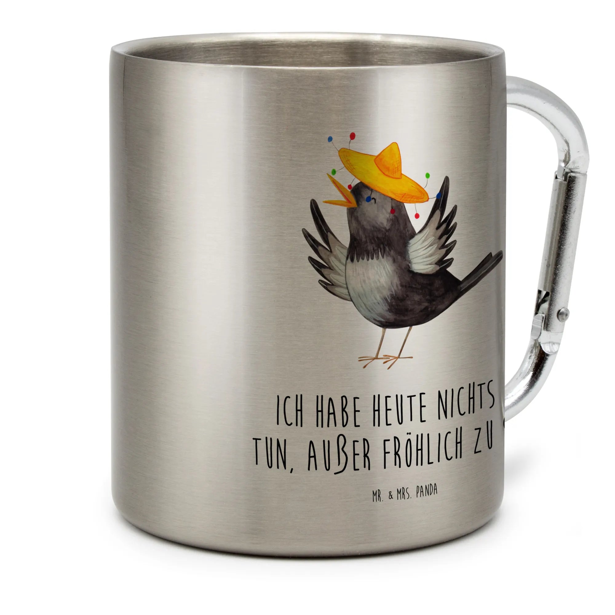 Entdecke den einzigartigen Edelstahlbecher 'Rabe mit Sombrero' aus der zauberhaften Small World Kollektion von Mr. & Mrs. Panda. Dieser wunderschöne und robuste Edelstahlbecher ist mehr als nur ein praktisches Camping-Accessoire. Mit seinen 330 ml Füllmenge und der charmanten Darstellung eines fröhlichen Raben, der im Tanz mit einem bunten Sombrero ausgestattet ist, bringt er gute Laune in jede Outdoor-Aktivität.