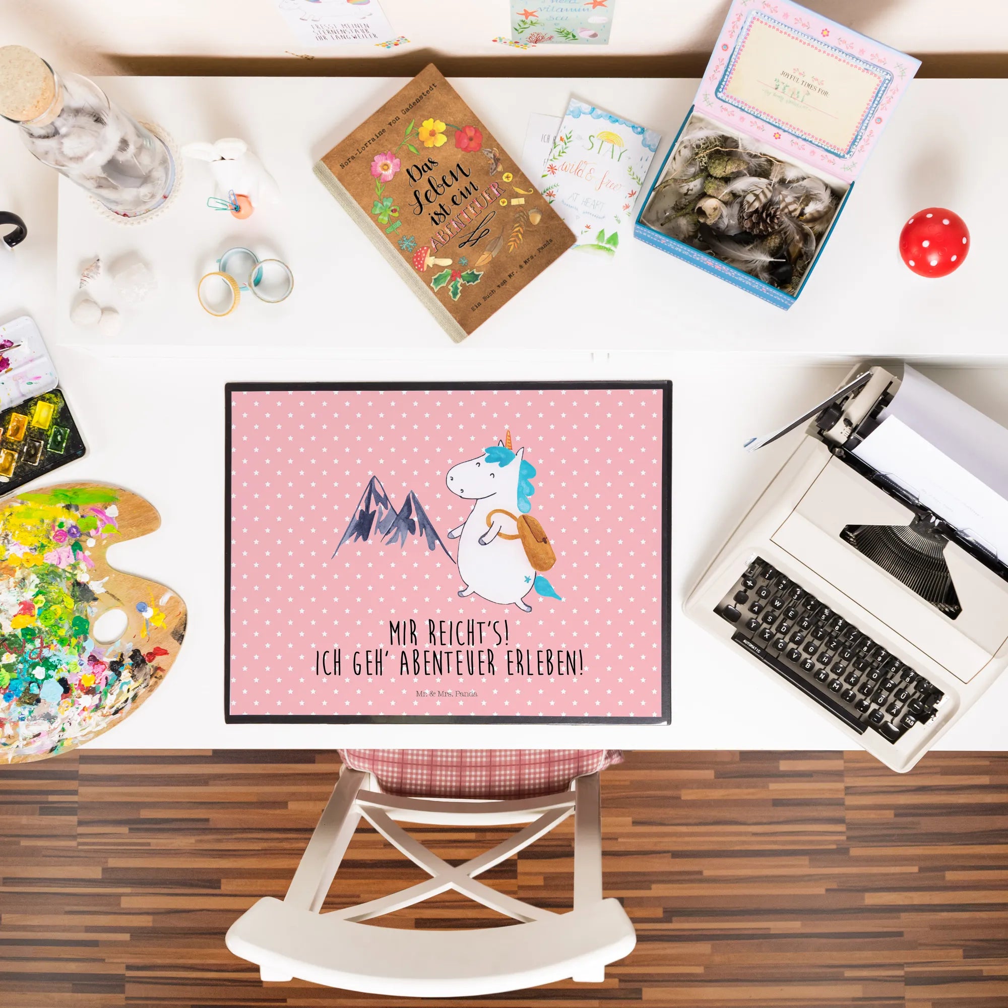 Diese Schreibtischunterlage von Mr. & Mrs. Panda ist nicht einfach nur ein Schreibtischschutz, sie ist dein tägliches Fenster zur Freiheit und Abenteuerlust. Das liebevoll gestaltete Motiv aus der Einhorn-Kollektion zeigt ein niedliches Einhorn, das bereit ist, die höchsten Gipfel zu erklimmen. Begleitet wird es von dem mutigen Slogan "Mir reicht's! Ich gehe Abenteuer erleben!". Dieses Produkt ist die perfekte Wahl für alle Weltenbummler, Bergsteiger und Entdecker, die auch im Büro oder beim Lernen eine Prise Magie und Fernweh brauchen. ✨