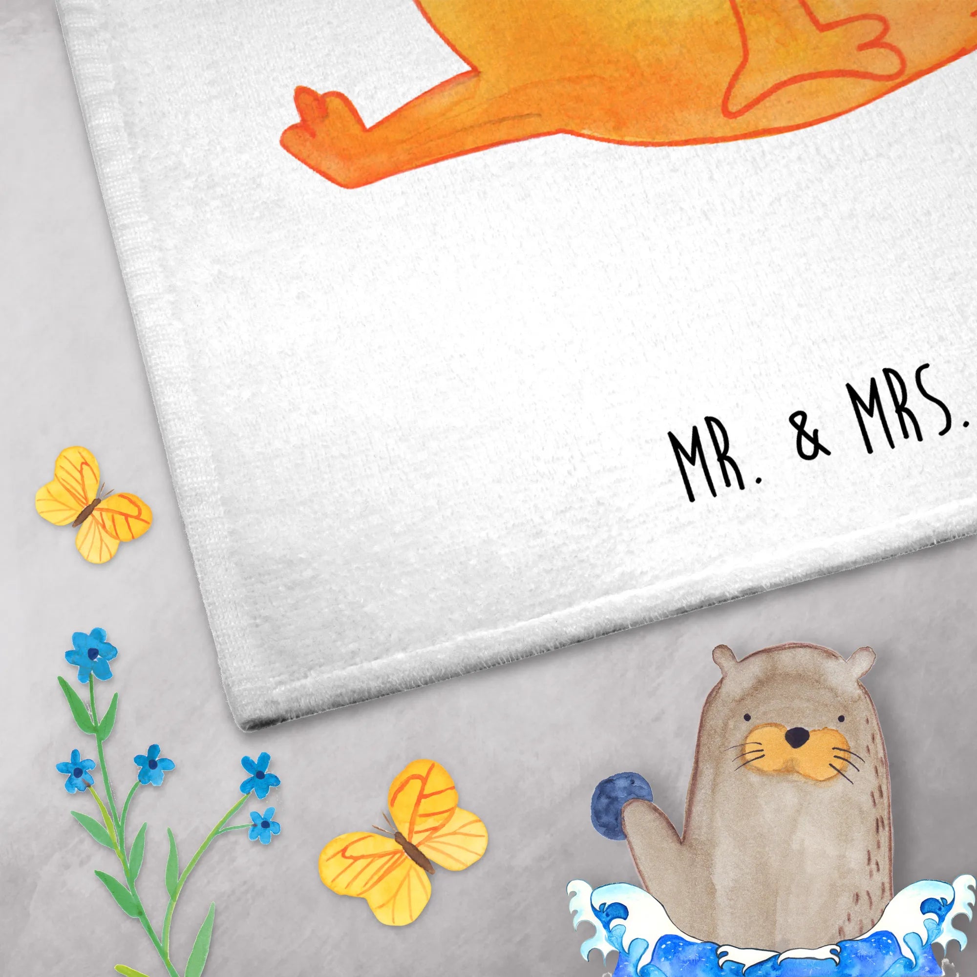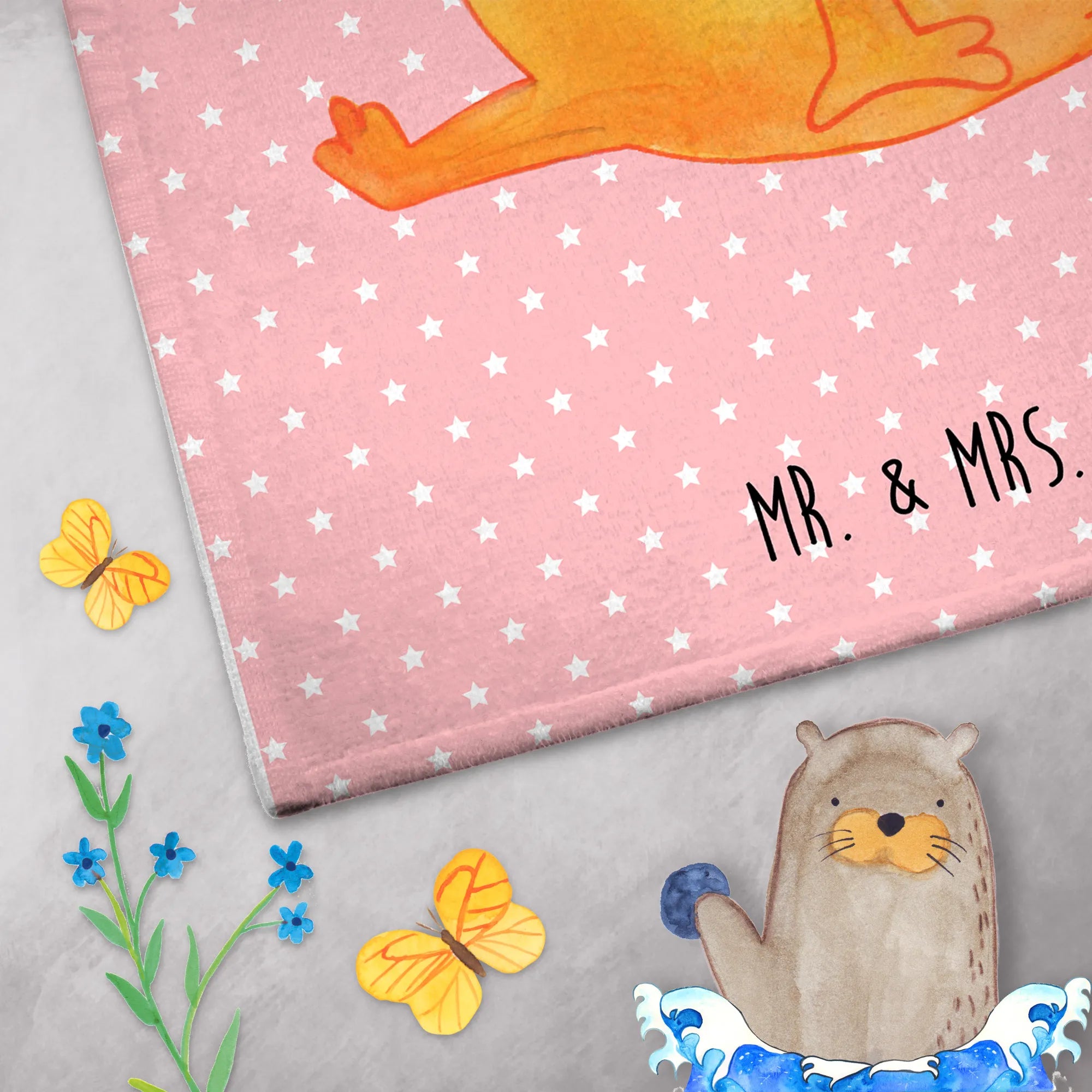 Setze ein fröhliches Zeichen in deinem Bad mit dem Gästehandtuch von Mr. & Mrs. Panda! Mit großzügigen Maßen von 300 mm x 500 mm und aus einer weichen Baumwollmischung sorgt dieses Handtuch dafür, dass sich deine Gäste sofort wohlfühlen. Die hochwertig bedruckten Motive und Sprüche bringen nicht nur Farbe ins Badezimmer, sondern auch ein Lächeln auf die Lippen. Es hat ein Gewicht von nur 60 g, ist somit leicht und angenehm zu handhaben. Ob für dein Gästebad oder das eigene Badezimmer, es sorgt für eine einladende Atmosphäre. Rundum umsäumt und dank der doppelten Naht äußerst strapazierfähig. Pflege dein Handtuch ganz einfach bei 30°C in der Waschmaschine oder lasse es bei niedrigen Temperaturen im Trockner trocknen. Schaffe mit diesem besonderen Gästehandtuch Gemütlichkeit und Stil in deinem Zuhause.