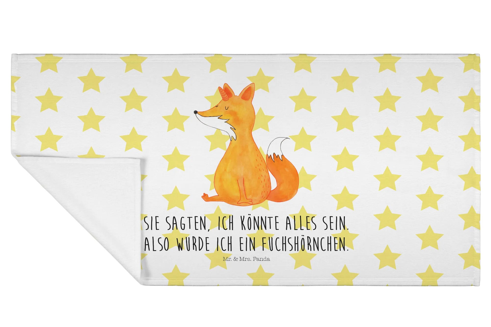 Du liebst fabelhafte Einhörner und alles, was in ihrer magischen Welt lebt? Dann wirst du unser fantastisches Handtuch "Fuchshörnchen Wunsch" aus der Einhorn-Kollektion von Mr. & Mrs. Panda einfach lieben! Mit seinen großzügigen Maßen von 50 x 100 cm ist es nicht nur ein echter Hingucker, sondern auch ein echter Alleskönner für dein Badezimmer. Das hochwertig bedruckte Handtuch aus einer flauschigen Baumwollmischung bringt Farbe und gute Laune in jeden Raum und wird garantiert zum Lieblingsstück in deinem Zuhause!