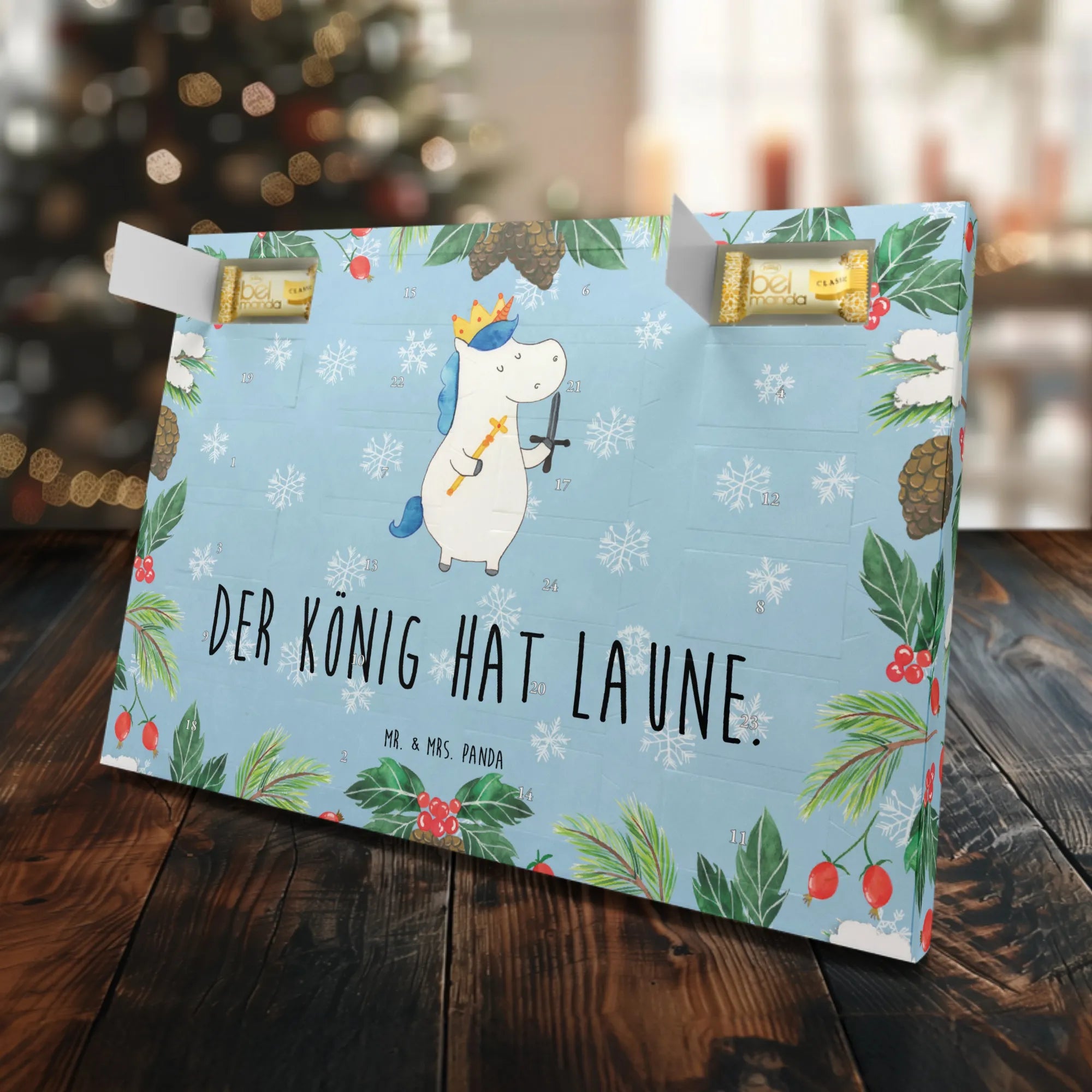 Das wundervolle Design mit dem eingearbeiteten Motiv des Einhorn Königs, der stolz mit seinem Schwert auftritt, wird garantiert die Herzen von Groß und Klein erobern. Mit dem liebevollen Slogan "Der König hat Laune" bringt dieser Kalender nicht nur eine fröhliche Botschaft, sondern auch das Gefühl von Abenteuer und Magie in deine Wintertage.