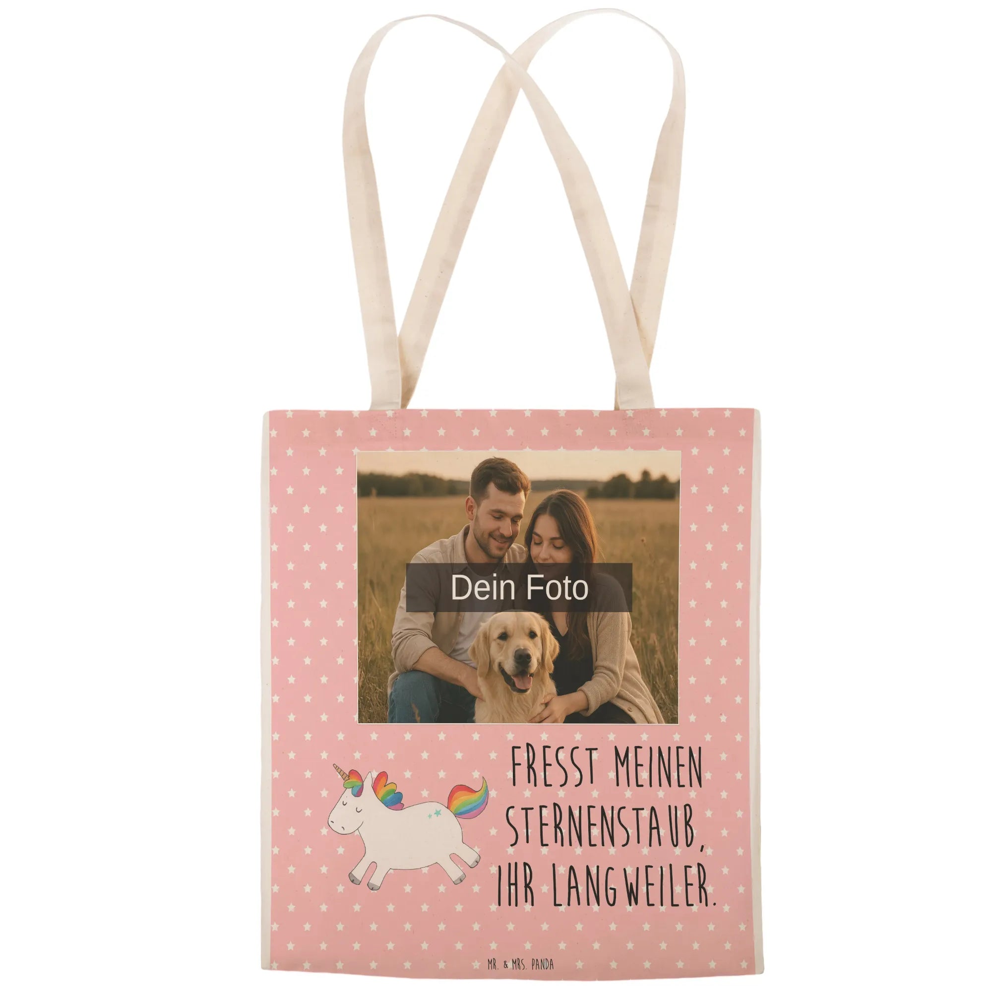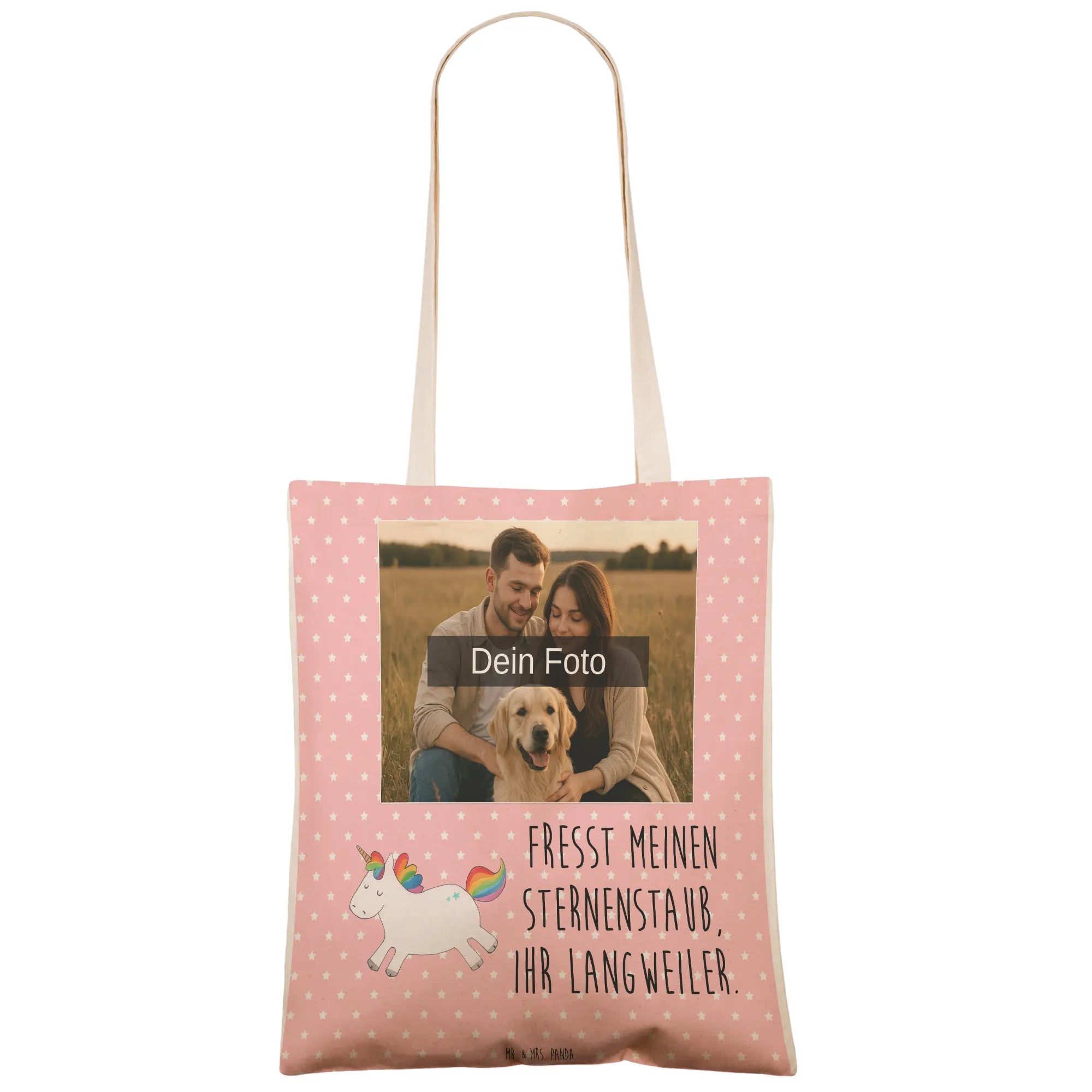 Personalisierte Foto Einkaufstasche Einhorn Happy