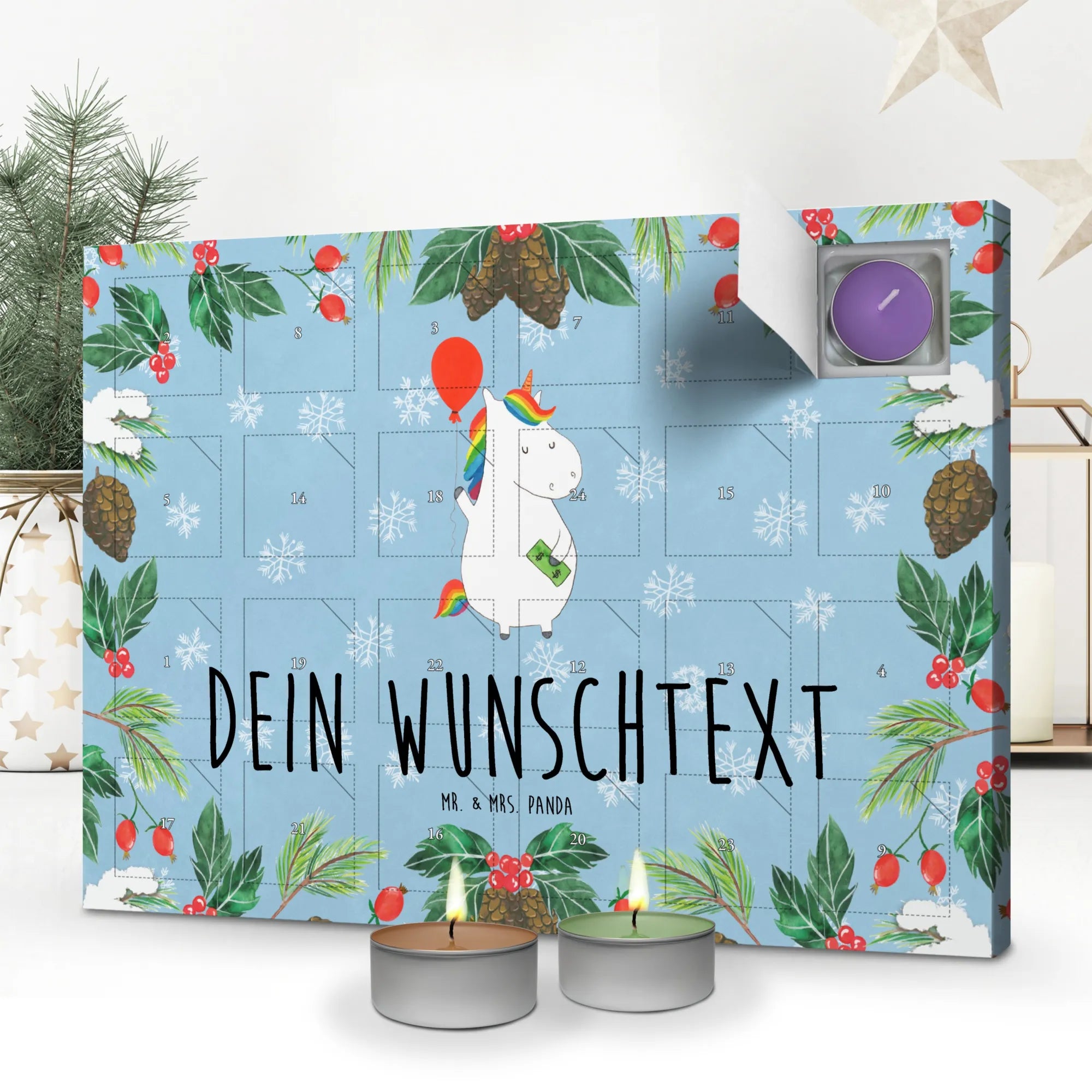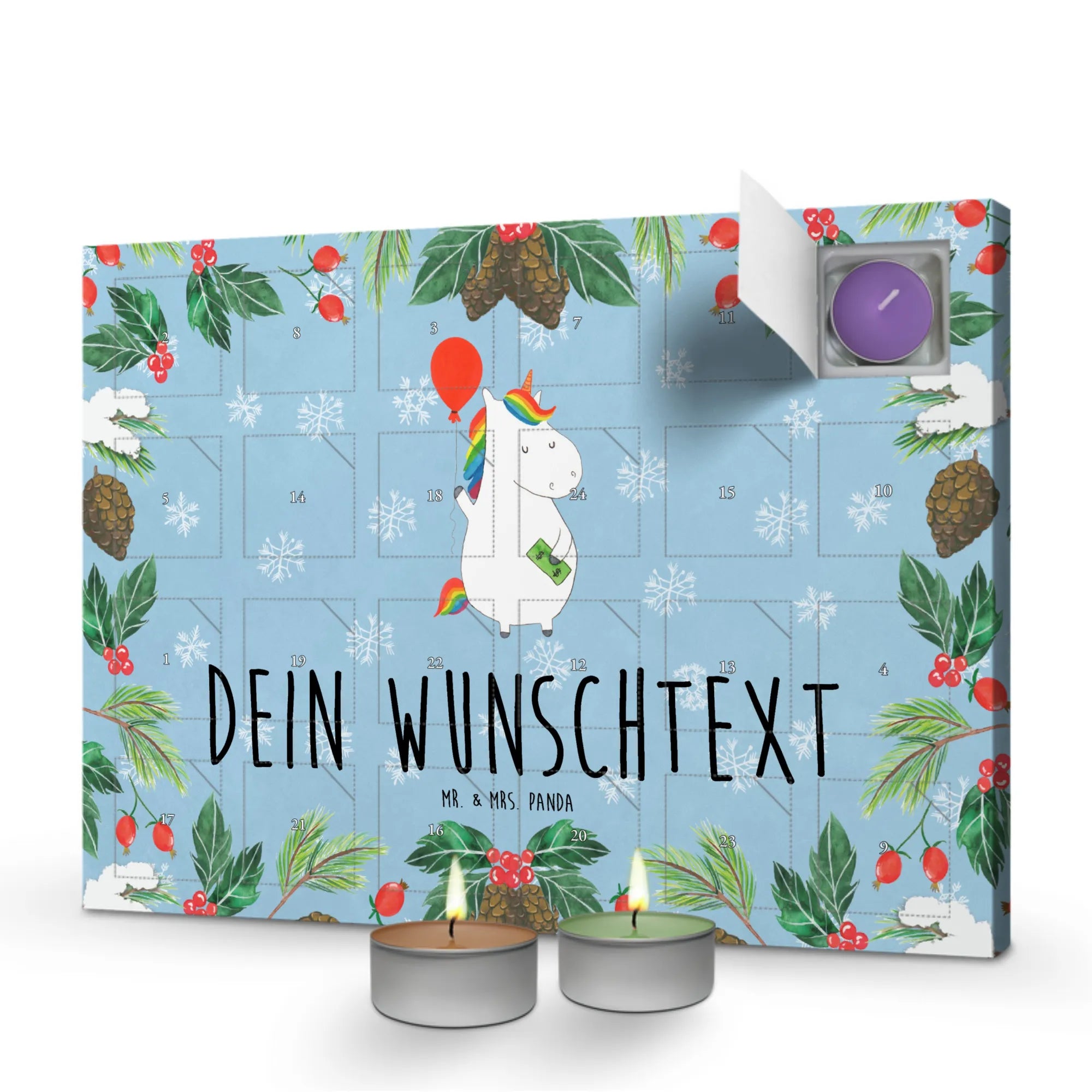 Duftkerzen Adventskalender mit Namen Einhorn Luftballon - Eisblau