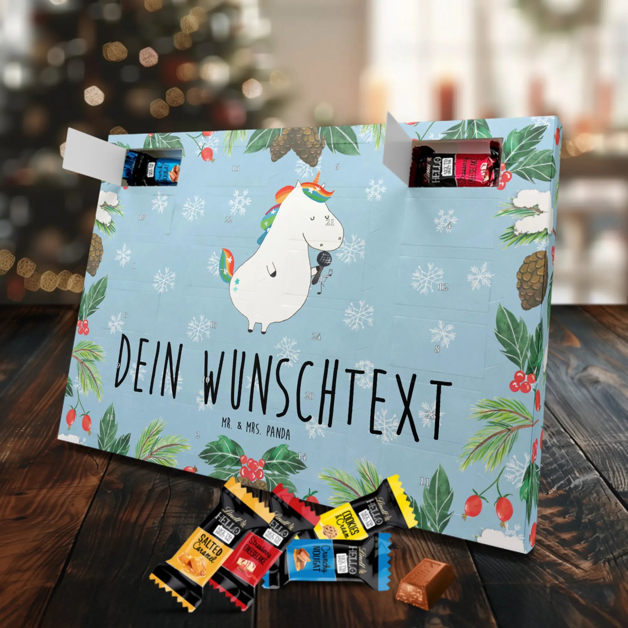 Personalisierter Schoko Adventskalender „Einhorn Sänger“ – Einhorn, Party & Glitzer