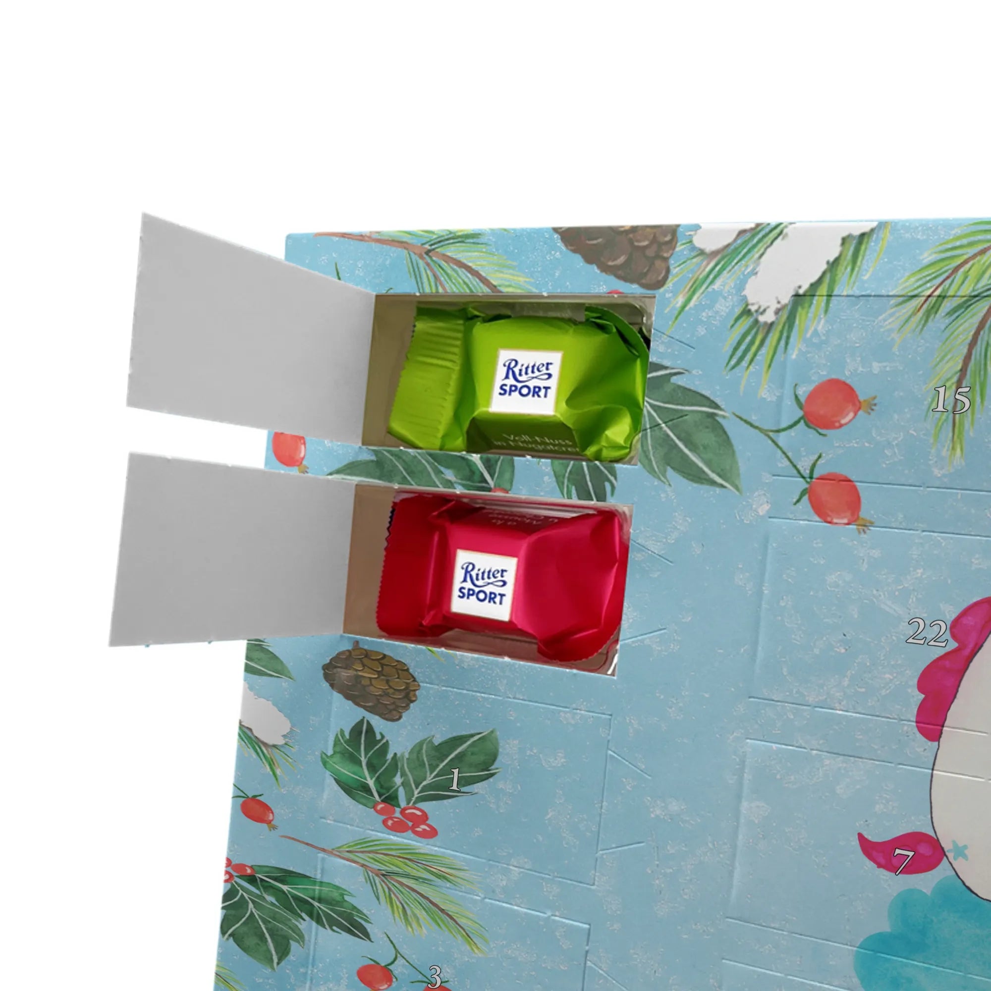 🐼 Adventskalender mit Namen, personalisierbar, gefüllt mit Ritter Sport Schokowürfeln.