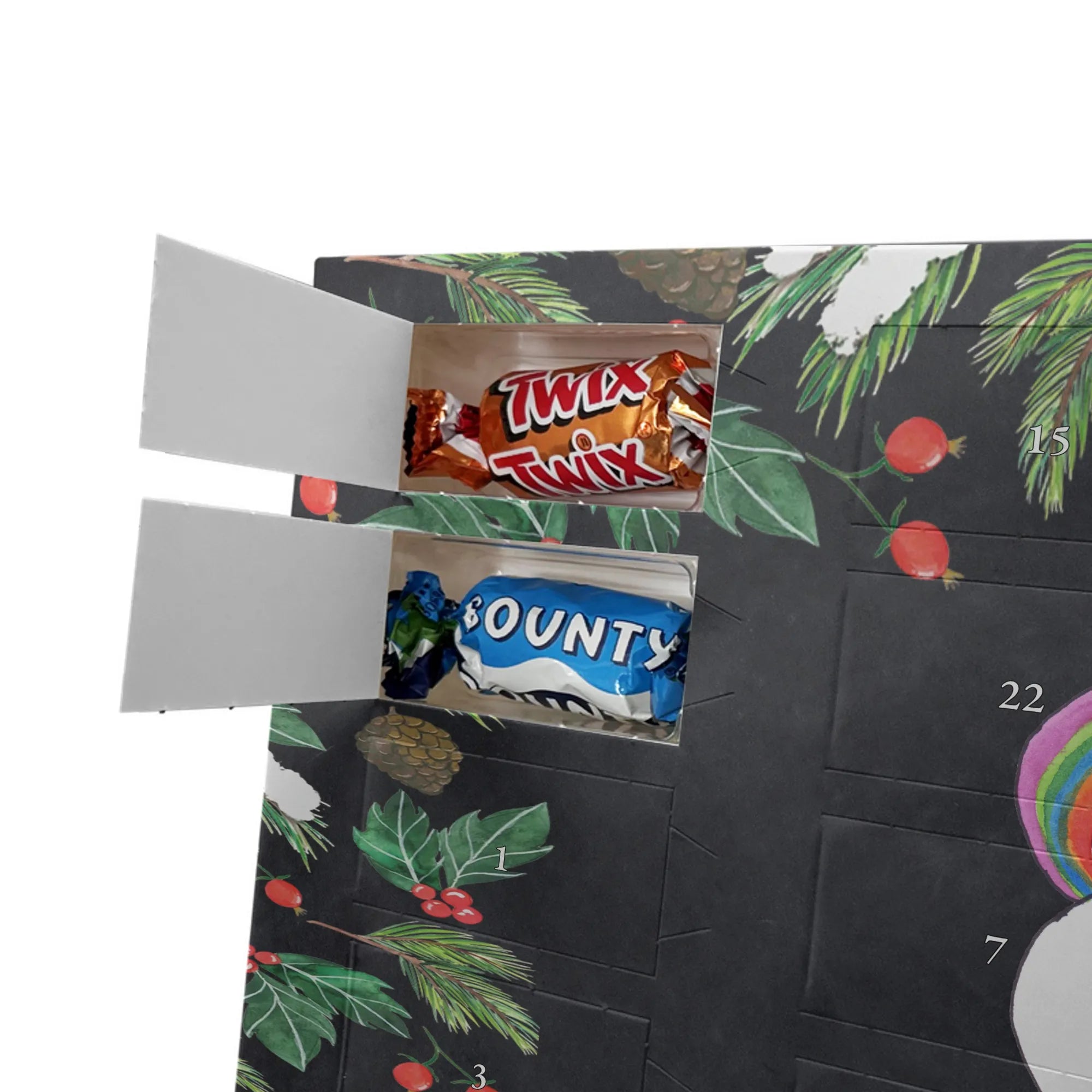 Personalisierter Schoko-Adventskalender von Mr. & Mrs. Panda – liebevoll gestaltet und ideal als individuelles Geschenk in der Adventszeit. Wir bedrucken den Kalender mit zauberhaften Motiven & herzlichen Sprüchen und personalisieren ihn mit deinem Wunschnamen oder Wunschtext. Die hochwertige Druckqualität kombiniert mit einer seidenmatten Oberflächenveredelung sorgt für ein edles Erscheinungsbild, und die bedruckten Seitenflächen geben dem Motiv zusätzlichen Charme. Der Kalender kann aufgehängt oder aufgestellt werden, sodass du ihn flexibel platzieren kannst. Gefüllt ist der Kalender mit Celebrations, die 24 hochwertige Überraschungen in 8 verschiedenen Sorten beinhalten: Maltesers, Mars, Snickers, Twix, Milky Way, Bounty, Galaxy und Galaxy Caramel. Maße: 325 mm x 225 mm x 27 mm – handlich und doch großzügig für die kleinen Leckereien hinter den Türchen. Ob für Kinder, Partner oder beste Freunde: dieser personalisierte Schoko-Adventskalender macht das Warten auf Weihnachten bunter und leckerer. Verschenke eine persönliche Erinnerung und jeden Tag ein kleines Schokoladen-Glück!