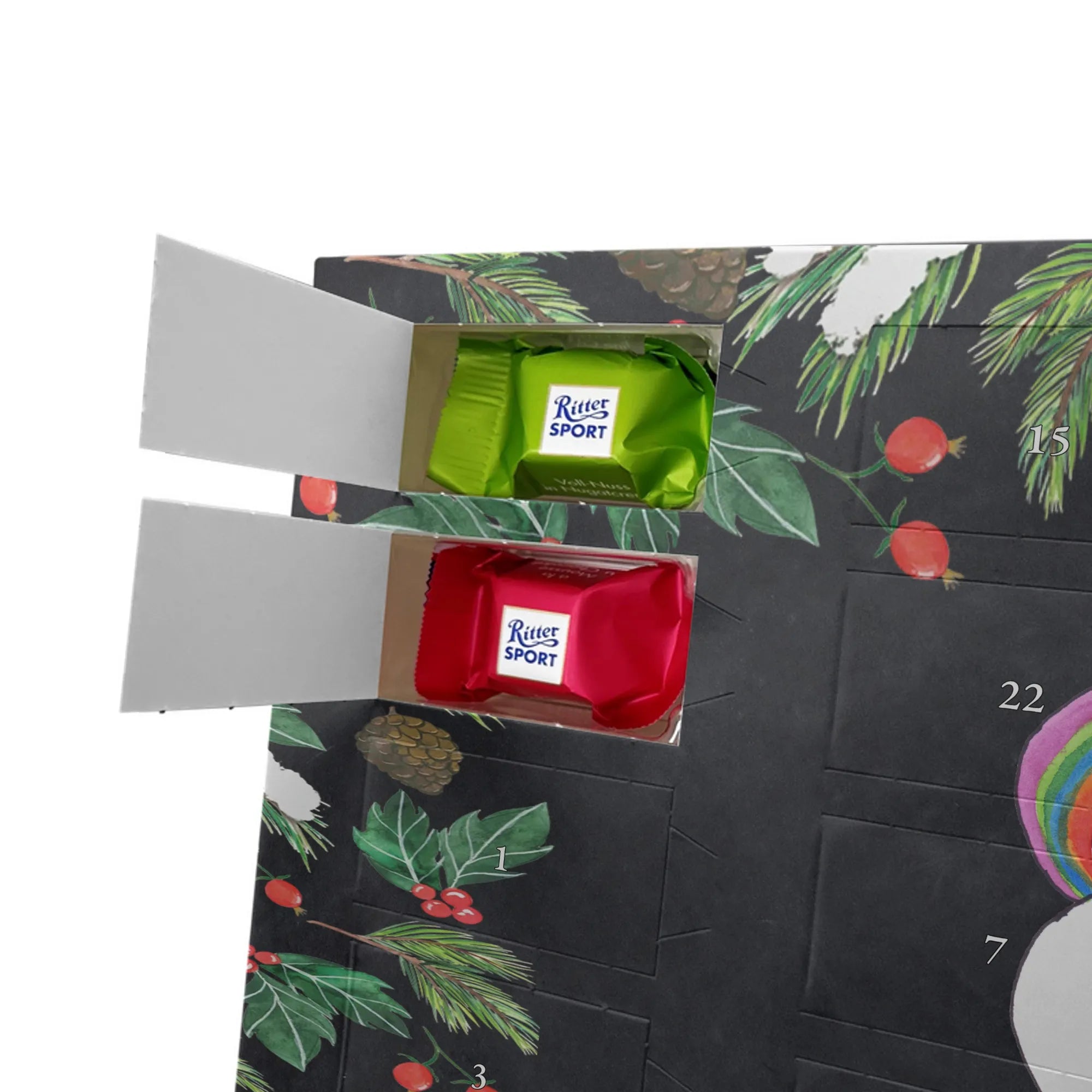 🐼 SCHOKO ADVENTSKALENDER: Personalisiert, seidenmatt bedruckt, gefüllt mit kinder® Schokolade.