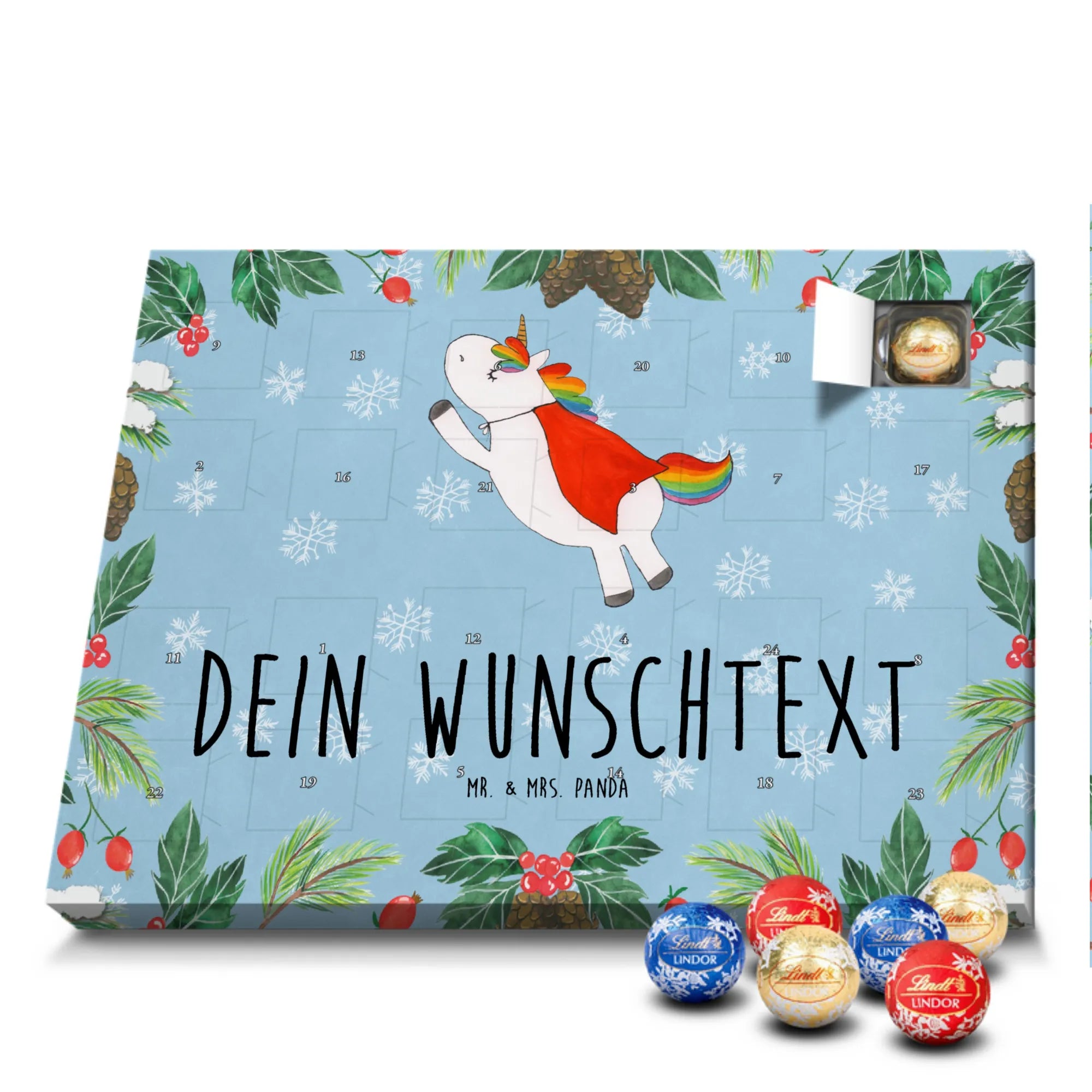 Personalisierter Schoko Adventskalender „Einhorn Super“ aus der Einhorn - Kollektion von Mr. & Mrs. Panda – das ideale Geschenk für Einhorn-Fans, Mädchen und Deine beste Freundin. Das handgezeichnete Einhorn im Superhelden-Kostüm trägt den liebevollen Spruch „Every girl needs a superhero“ und sorgt für ein Lächeln an jedem Adventstag. 🎀