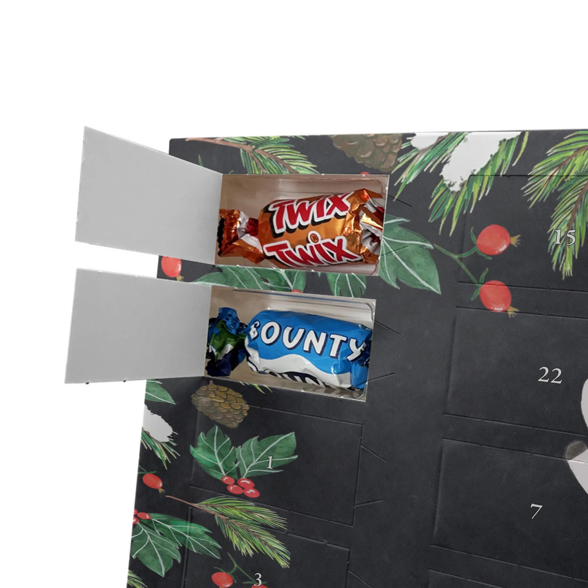 Schoko Adventskalender personalisiert von Mr. & Mrs. Panda – eine besonders liebevolle Geschenkidee für die Adventszeit. Unser Design vereint niedliche Illustrationen und herzliche Sprüche, die wir selbstverständlich mit deinem Wunschtext oder Namen personalisieren. Die brillante Druckqualität wird durch eine seidenmatte Oberflächenveredelung unterstrichen, die Farben und Details wunderschön zur Geltung bringt. Zusätzlich sind die Seitenflächen bedruckt, sodass das Motiv rundum stimmig ist. Du kannst den Kalender entweder aufhängen oder aufstellen – je nachdem, wo die Vorfreude am besten zur Geltung kommt. Gefüllt ist der Kalender mit Celebrations: 24 hochwertige Füllungen in 8 leckeren Sorten wie Maltesers, Mars, Snickers, Twix, Milky Way, Bounty, Galaxy und Galaxy Caramel sorgen für abwechslungsreiche Genussmomente. Maße: 325 mm x 225 mm x 27 mm – ein handliches Format, das trotzdem viel Platz für süße Überraschungen bietet. Ob als Geschenk für Freunde, Familie oder als kleine Verwöhnung für dich selbst: Dieser personalisierte Schoko Adventskalender bringt täglich Freude und ist mit ganz viel Herz gestaltet.