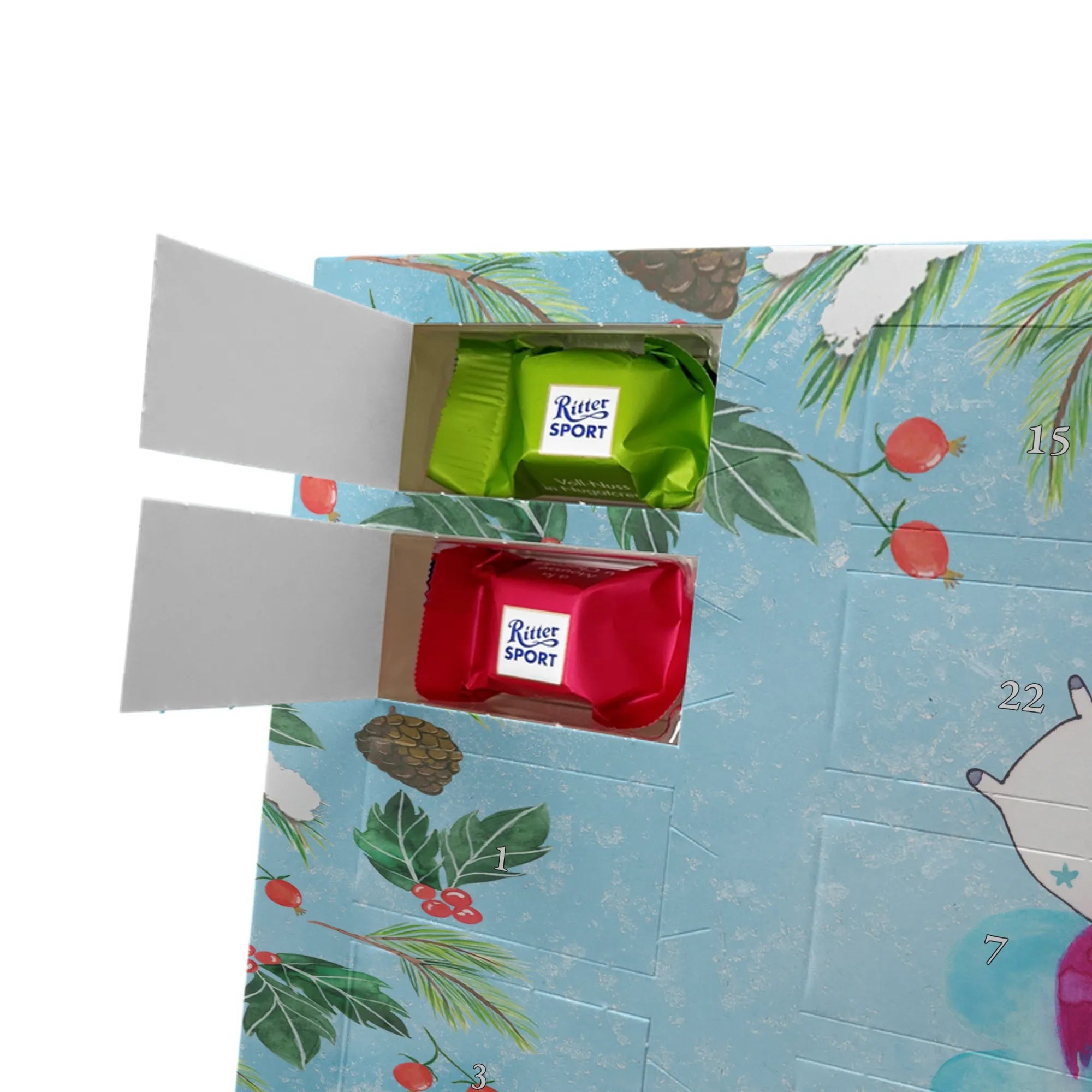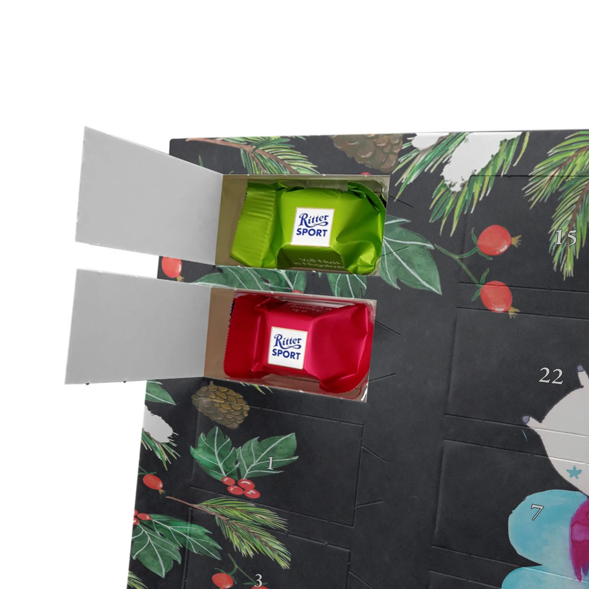 🐼 Personalisierter Schoko Adventskalender, seidenmatt und mit Ritter Sport Schokowürfeln.