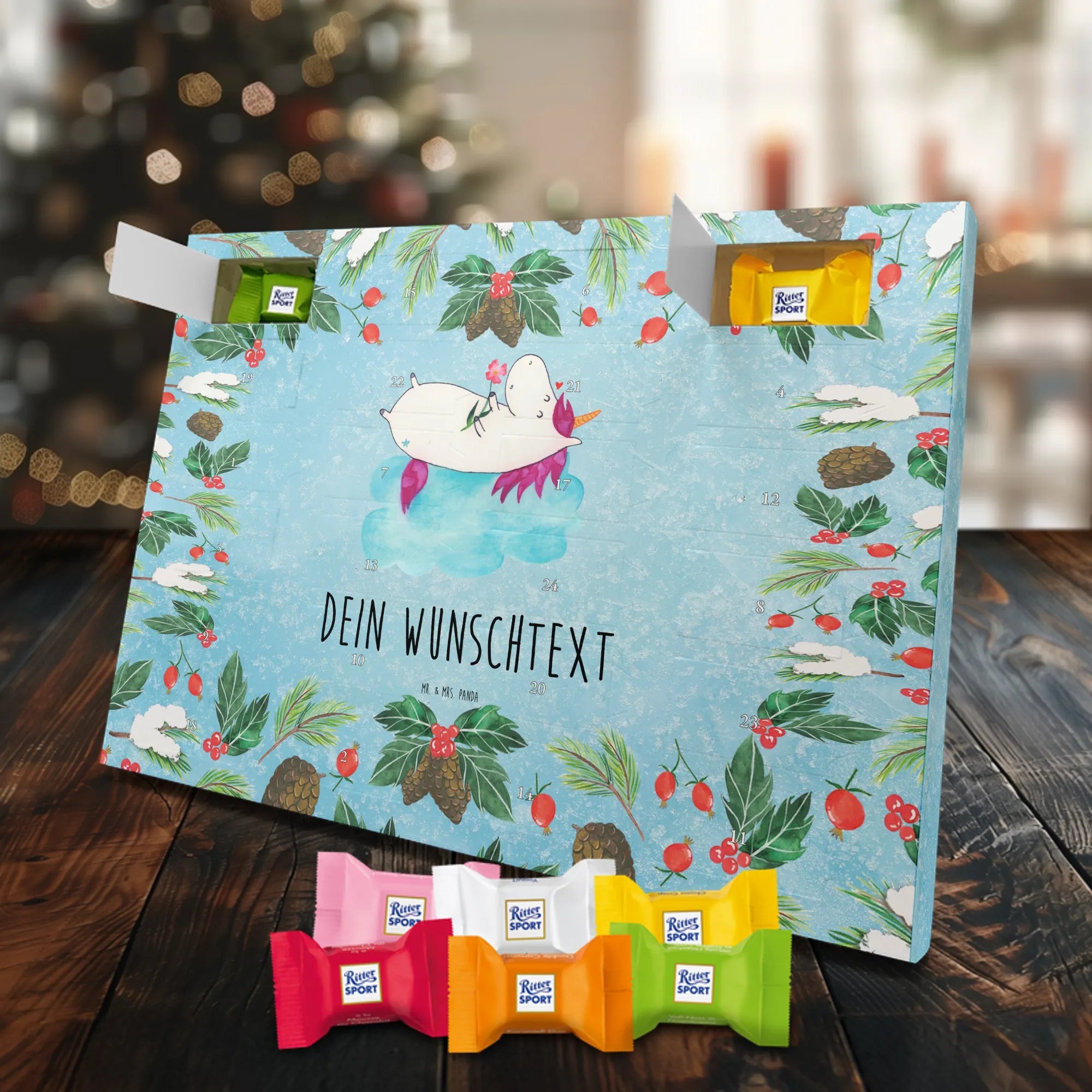 Personalisierter Schoko Adventskalender „Einhorn verliebt auf Wolke“