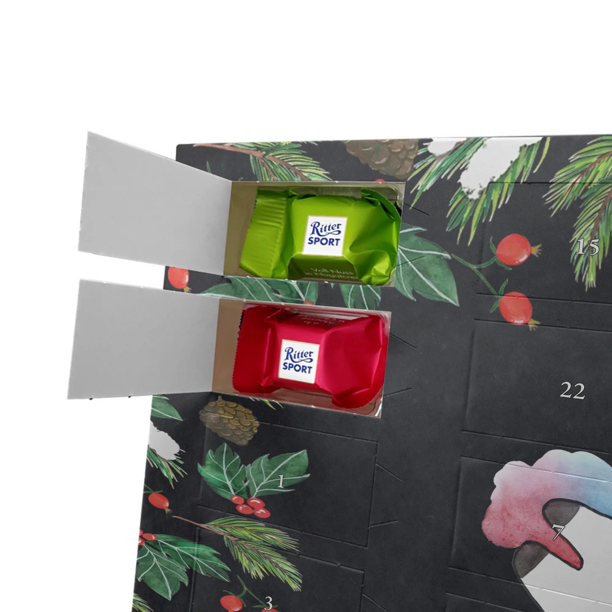 Gefüllt mit Ritter Sport Schokowürfeln in leckeren Sorten wie Mousse au Chocolat, Schoko Crisp, Voll-Nuss in Nougatcreme, Karamell Duo, Joghurt und Erdbeer-Joghurt – jeden Morgen eine kleine süße Überraschung. Ideal für Einhorn-Fans, Verliebte, Freunde mit Humor und alle, die Advent und Schokolade lieben.