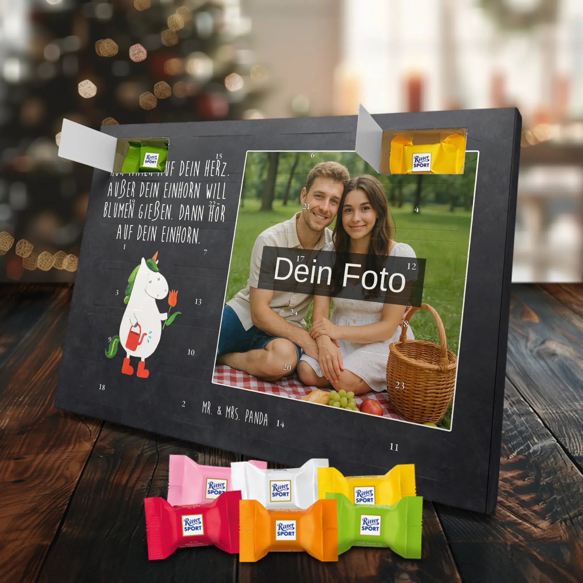 Wunderschöner Personalisierter Schoko Foto Adventskalender von Mr. & Mrs. Panda – das perfekte Geschenk für deine Liebsten! Dieser Adventskalender ist liebevoll gestaltet, bedruckt mit wunderschönen Motiven & Sprüchen von Mr. & Mrs. Panda und personalisierbar mit einem Foto deiner Wahl. Achte bitte auf hohe Auflösung: Lade ein Foto in guter Qualität und ausreichender Auflösung hoch, damit das Druckergebnis klar und brillant wird. Achte auf den richtigen Bildausschnitt, damit keine wichtigen Details abgeschnitten werden. Wir empfehlen, den Kalender-Rahmen vorher anzusehen, um zu wissen, wie dein Foto platziert wird. Lade nur Bilder hoch, bei denen du die Bildrechte besitzt oder die Erlaubnis hast. Die Fotos werden weder aufbereitet noch zugeschnitten. Rücknahme bei personalisierten Foto Artikeln ist ausgeschlossen. Der Kalender besticht durch brillante Druckqualität mit seidenmatter Oberflächenveredelung und bedruckte Seitenflächen. Maße: 325 mm x 225 mm x 27 mm. Besonderheit: Kann aufgehängt oder aufgestellt werden – ganz wie du möchtest. Gefüllt ist der Kalender mit Ritter Sport Schokowürfeln in leckeren Geschmacksrichtungen: Mousse au Chocolat, Schoko Crisp, Voll-Nuss in Nougatcreme, Karamell Duo, Joghurt und Erdbeer-Joghurt. Ein zauberhaftes, persönliches Geschenk, das Vorfreude bereitet und jeden Tag im Advent versüßt!