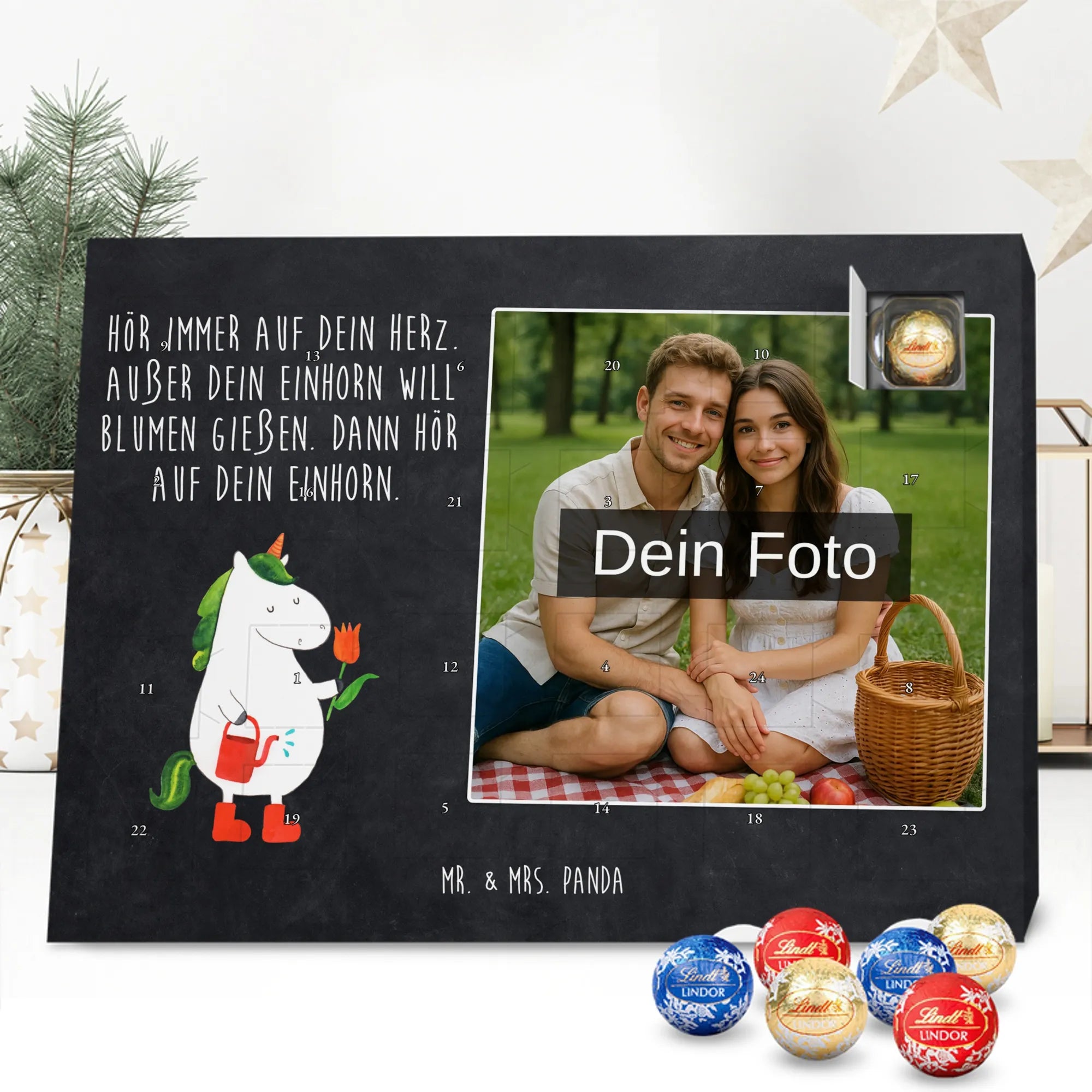 Unser bezaubernder Personalisierter Schokoladen Foto Adventskalender von Mr. & Mrs. Panda bringt persönliche Freude in die Vorweihnachtszeit. Du lädst ein Foto hoch, wir drucken es zusammen mit unseren liebevollen Illustrationen und Sprüchen – so entsteht ein ganz persönliches Geschenk. Achte auf hohe Bildqualität und darauf, dass der Bildausschnitt passt, denn wir nehmen keine Anpassungen am Foto vor. Die Verarbeitung ist hochwertig: seidenmatte Oberflächenveredelung, bedruckte Seitenflächen und eine stabile Konstruktion. Der Kalender kann sowohl aufgehängt als auch aufgestellt werden – flexibel und hübsch. Maße: 233 mm x 178 mm x 24 mm. Gefüllt mit Lindt Lindor Markenschokolade: 24 einzeln verpackte Markenschokoladen Kugeln, Sorten: Vollmilch, Feinherb und Weiße Schokolade. Zutatenhinweis: Zucker, pflanzliches Fett, Kakaobutter u.v.m.; kann Spuren von Haselnüssen und Mandeln enthalten. Wichtig: Lade nur Fotos hoch, für die du Nutzungsrechte hast; personalisierte Foto-Artikel sind vom Umtausch ausgeschlossen. Verschenke einen Advent mit Herz von Mr. & Mrs. Panda.
