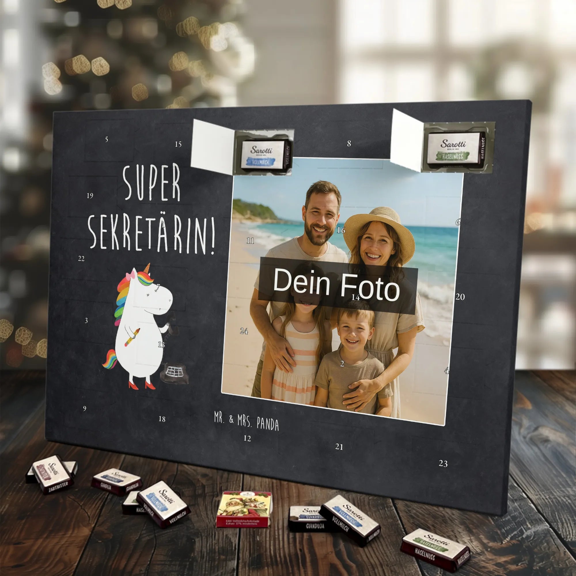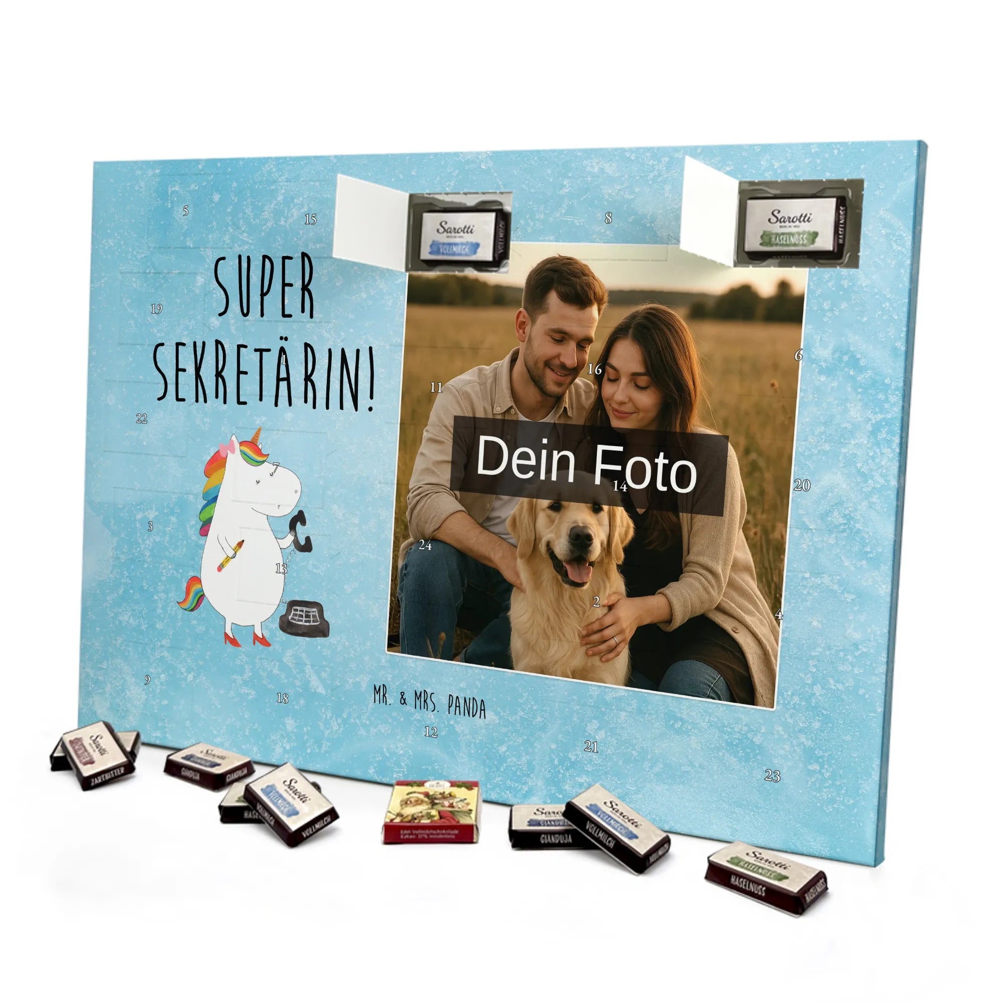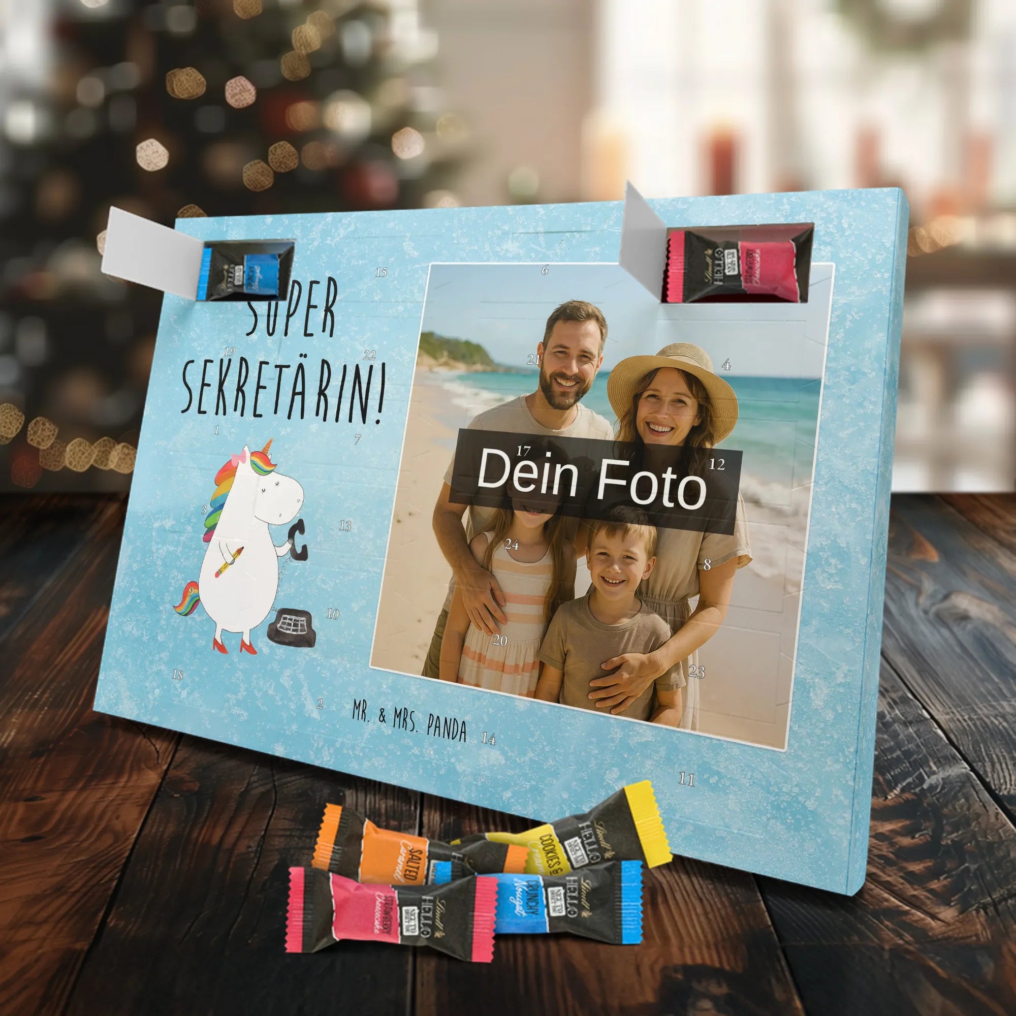 Personalisierter Schoko Foto Adventskalender Einhorn Sekretärin - Celebrations - Eisblau