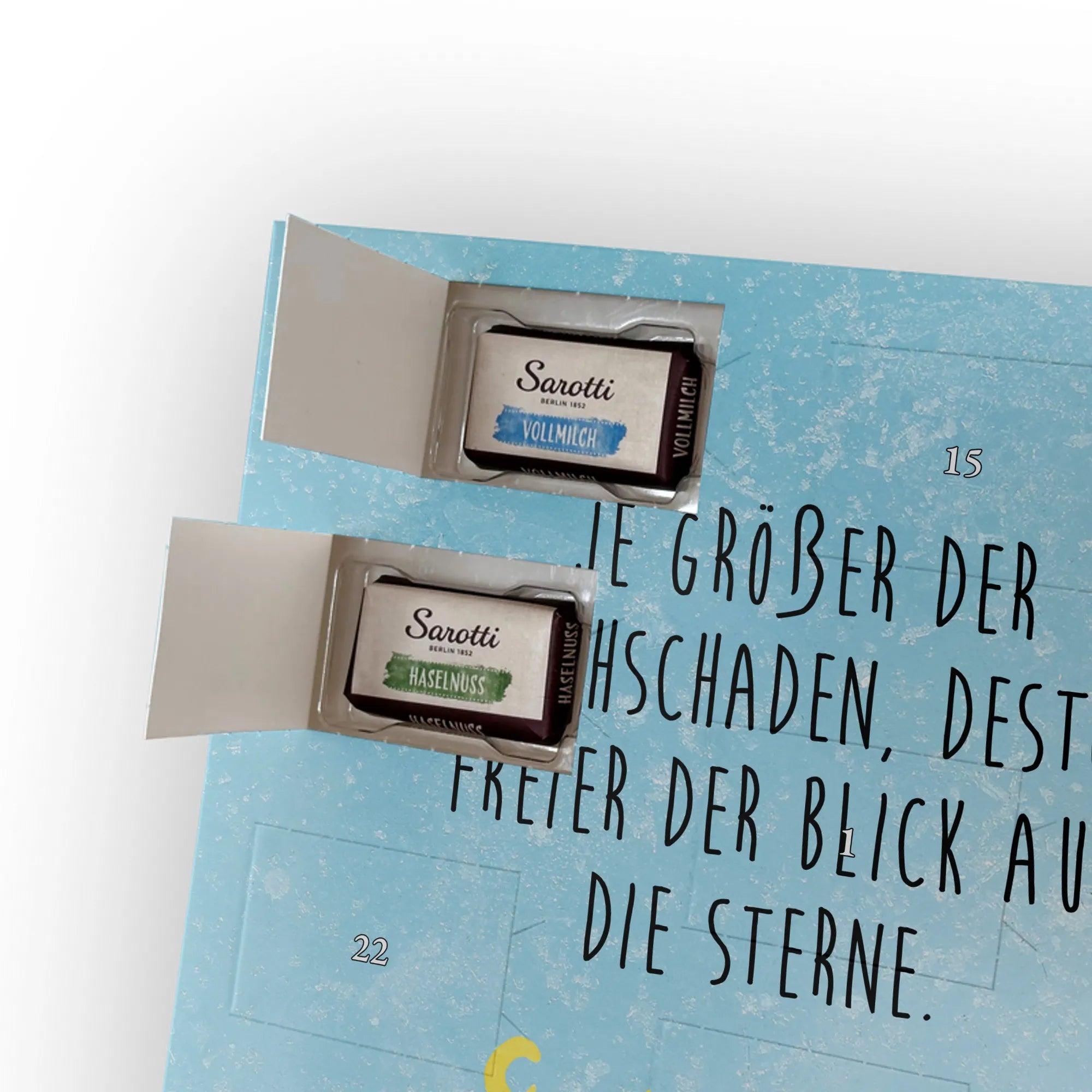 Schoko Foto Adventskalender personalisiert – ein zauberhaftes Geschenk, das Erinnerungen und Geschmack vereint. Mr. & Mrs. Panda haben liebevolle Motive und Sprüche gestaltet, die den Kalender umrahmen; dein Foto setzt die persönliche Note. Für ein optimales Druckbild lade bitte ein Foto mit hoher Auflösung hoch und achte auf einen passenden Bildausschnitt, damit wichtige Details nicht abgeschnitten werden. Bitte nur Bilder verwenden, für die du die Rechte besitzt. Die seidenmatte Oberflächenveredelung sorgt für edle Haptik und die bedruckten Seitenflächen für ein rundum gelungenes Design. Maße: 355 mm x 245 mm x 11 mm – kann aufgehängt oder aufgestellt werden. Wichtiger Hinweis: Wir bearbeiten oder schneiden die Fotos nicht nach; eine Rücknahme personalisierter Foto Artikel ist ausgeschlossen. Gefüllt mit 24 einzeln verpackten Schokoladentäfelchen in den Geschmacksrichtungen Vollmilch, Nougat, Zartbitter und Haselnuss von Sarotti® und Confiserie Heidel®. Insgesamt enthält der Kalender 107 g Markenschokolade. Ideal als Geschenk für Partner, Familie oder Freunde – persönlich, süß und liebevoll verpackt von Mr. & Mrs. Panda.
