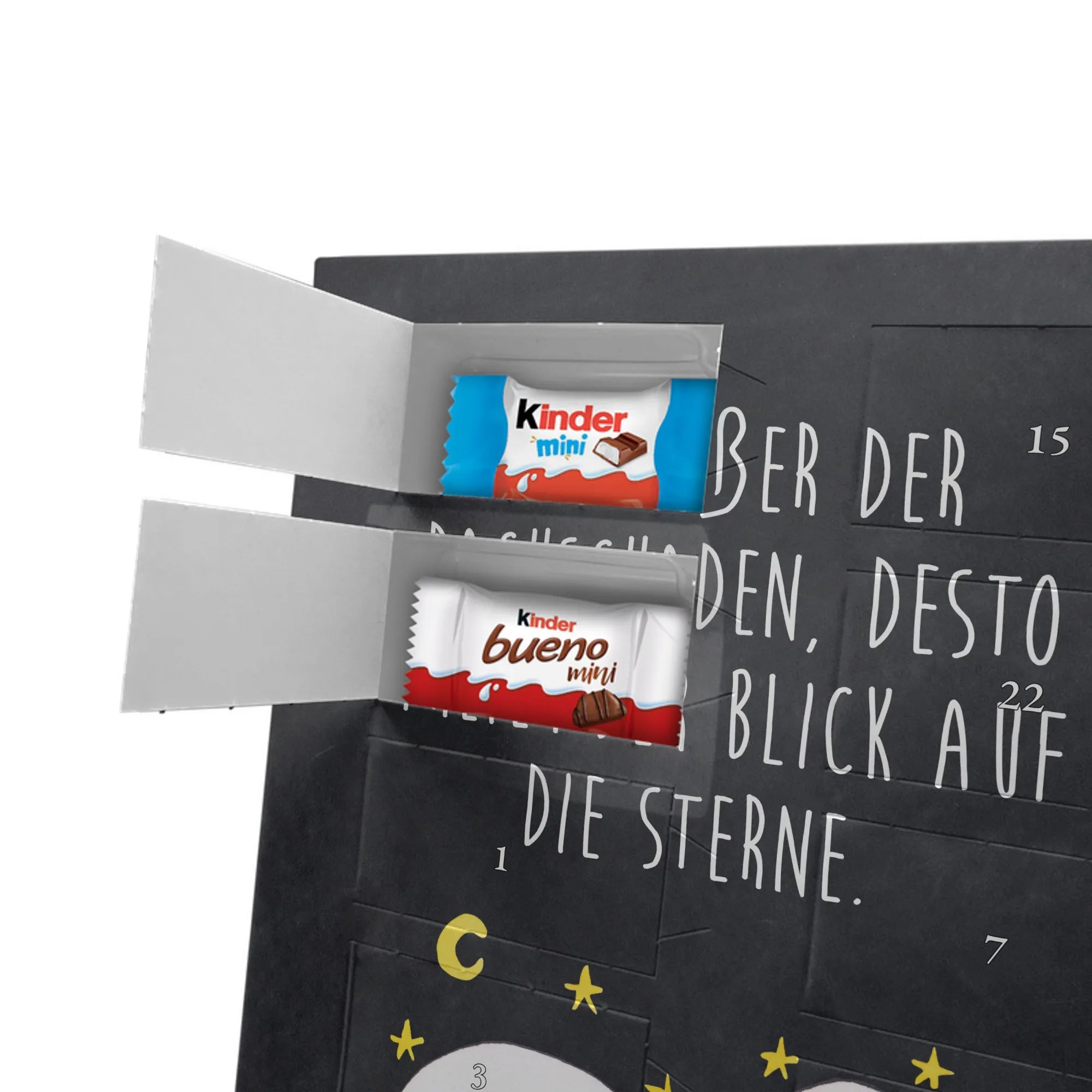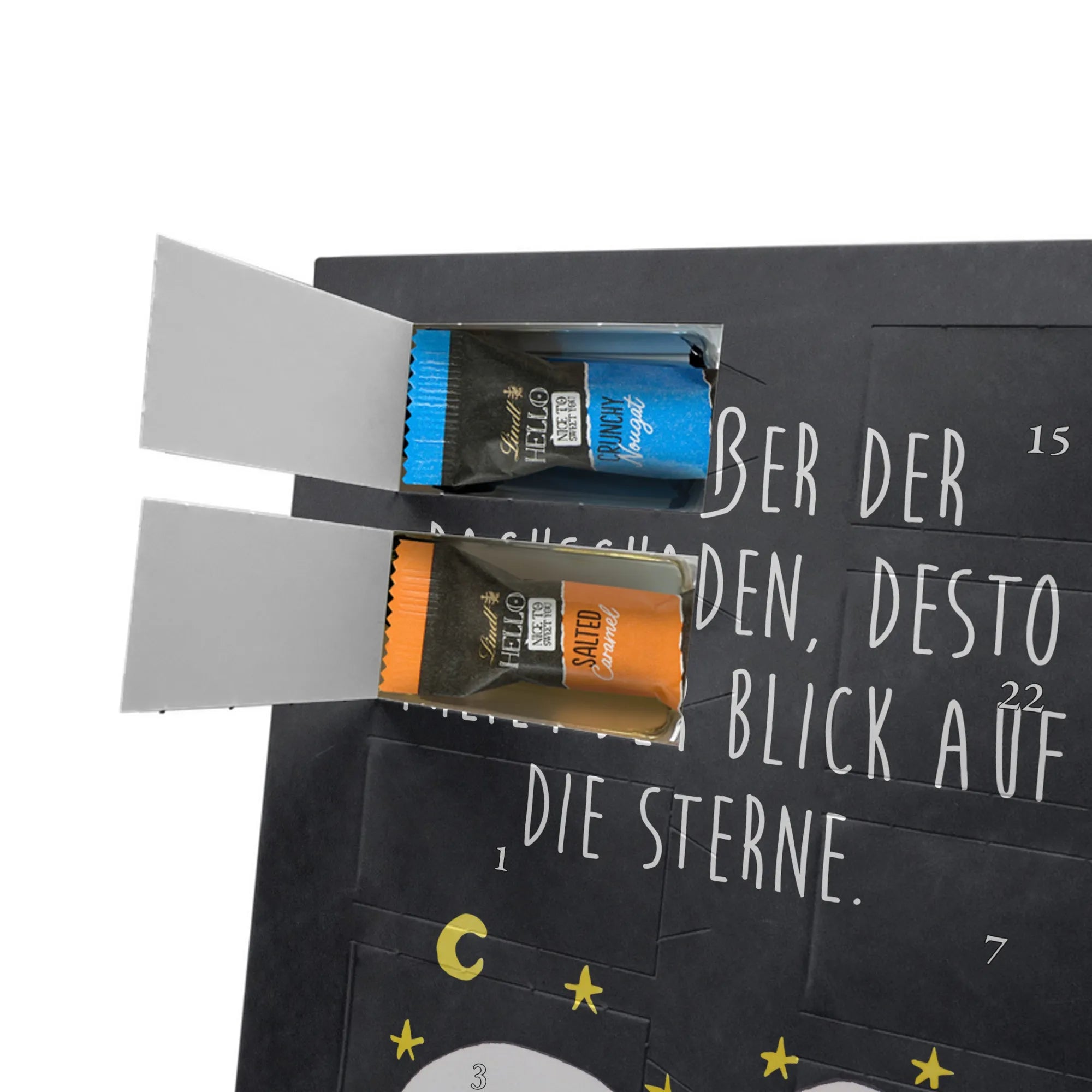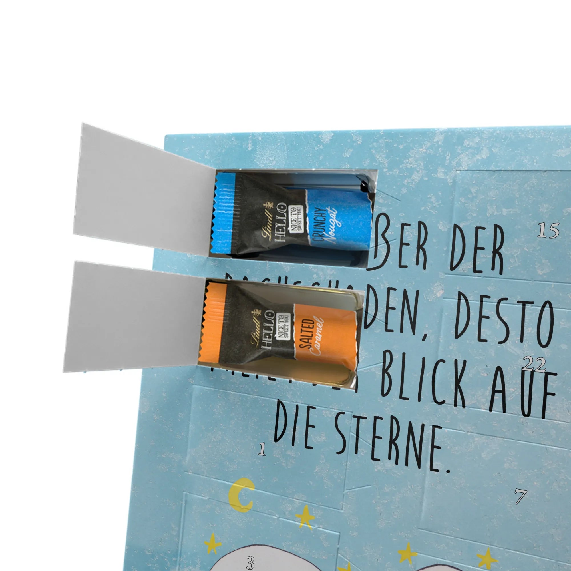 Lustiger Personalisierter Schoko Foto-Adventskalender – das Must-have für eine persönliche Adventszeit von Mr. & Mrs. Panda. Jeder Kalender wird mit unseren charmanten Illustrationen und liebevollen Sprüchen bedruckt, während dein Foto die Vorderseite einzigartig macht. Achte bitte darauf, ein Foto mit guter Qualität und ausreichend hoher Auflösung hochzuladen, damit der Druck gestochen scharf wirkt. Überprüfe den Bildausschnitt, damit wichtige Bereiche nicht verloren gehen. Denk daran, nur Bilder zu verwenden, bei denen du die nötigen Rechte besitzt. Die Verarbeitung ist hochwertig: brillante Druckqualität mit seidenmatter Oberflächenveredelung und bedruckten Seitenflächen. Maße: 325 mm x 225 mm x 27 mm. Du kannst den Kalender aufhängen oder aufstellen – sehr praktisch. Hinweis: Die hochgeladenen Fotos werden nicht nachbearbeitet oder zugeschnitten; Rücknahme bei personalisierten Foto-Artikeln ist ausgeschlossen. Gefüllt ist der Kalender mit Celebrations Schokolade – 24 Stück in 8 verschiedenen Sorten (Maltesers, Mars, Snickers, Twix, Milky Way, Bounty, Galaxy, Galaxy Caramel). Verschenke ein Stück persönlich gestaltete Vorfreude und mache jeden Dezembertag zu etwas Besonderem.