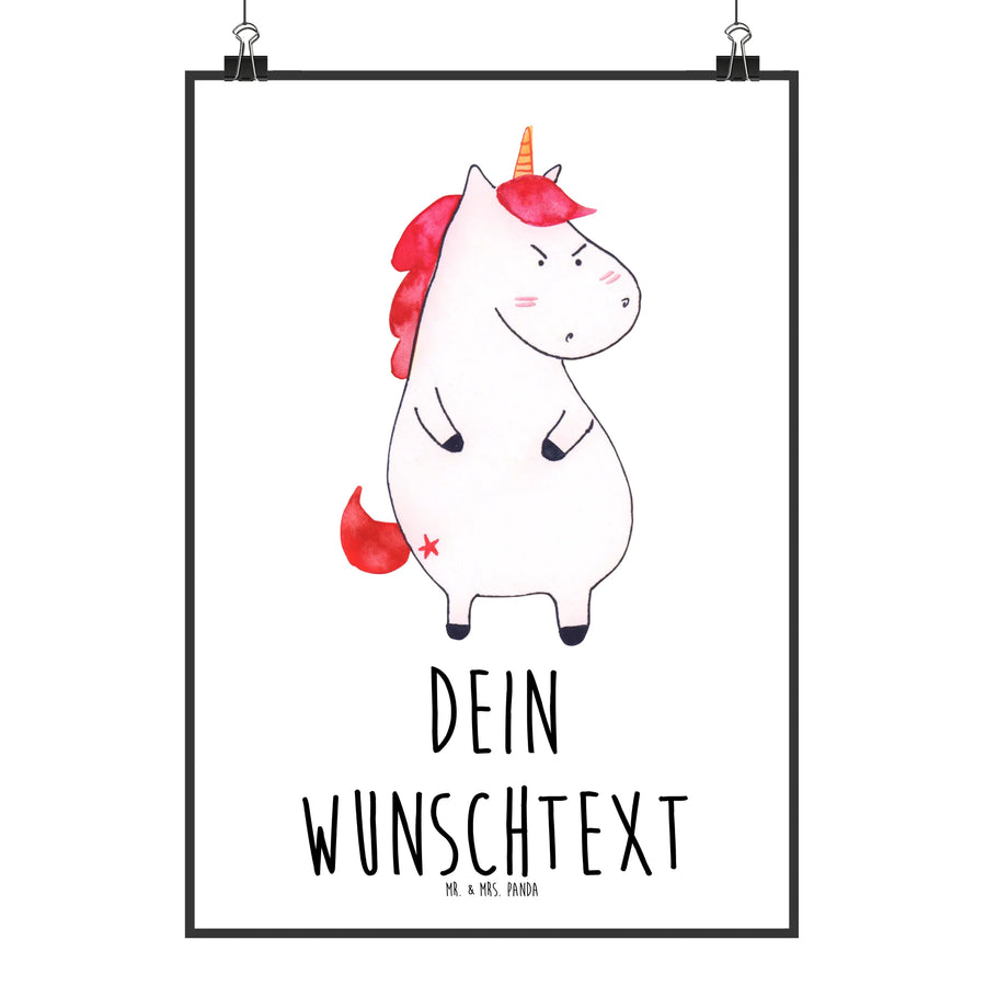Das personalisierte Poster "Einhorn wütend" aus der zauberhaften Einhorn-Kollektion von Mr. & Mrs. Panda ist das perfekte Geschenk für alle, die Einhörner lieben, und für diejenigen, die einfach mal eine klare Ansage machen wollen.