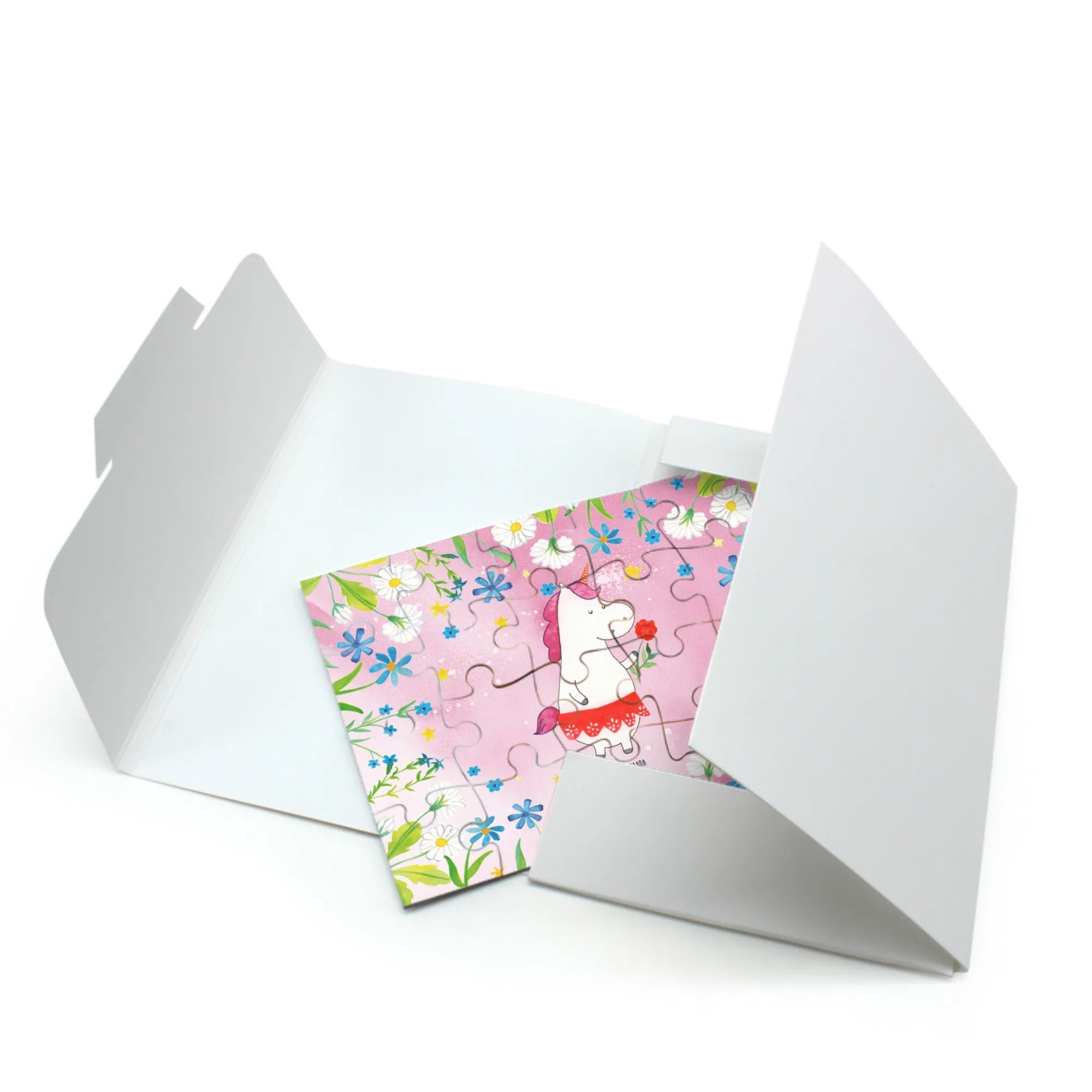 Suchst du ein Geschenk, das sofort begeistert? Unser Puzzle „Einhorn Dame“ aus der Einhorn - Kollektion von Mr. & Mrs. Panda zeigt ein liebevoll handgezeichnetes Einhorn in feiner, ladyhafter Pose. Die Aquarell-Farben wirken sanft und strahlend zugleich – perfekt als Einhorn Deko oder als gemeinsames Puzzle-Erlebnis.