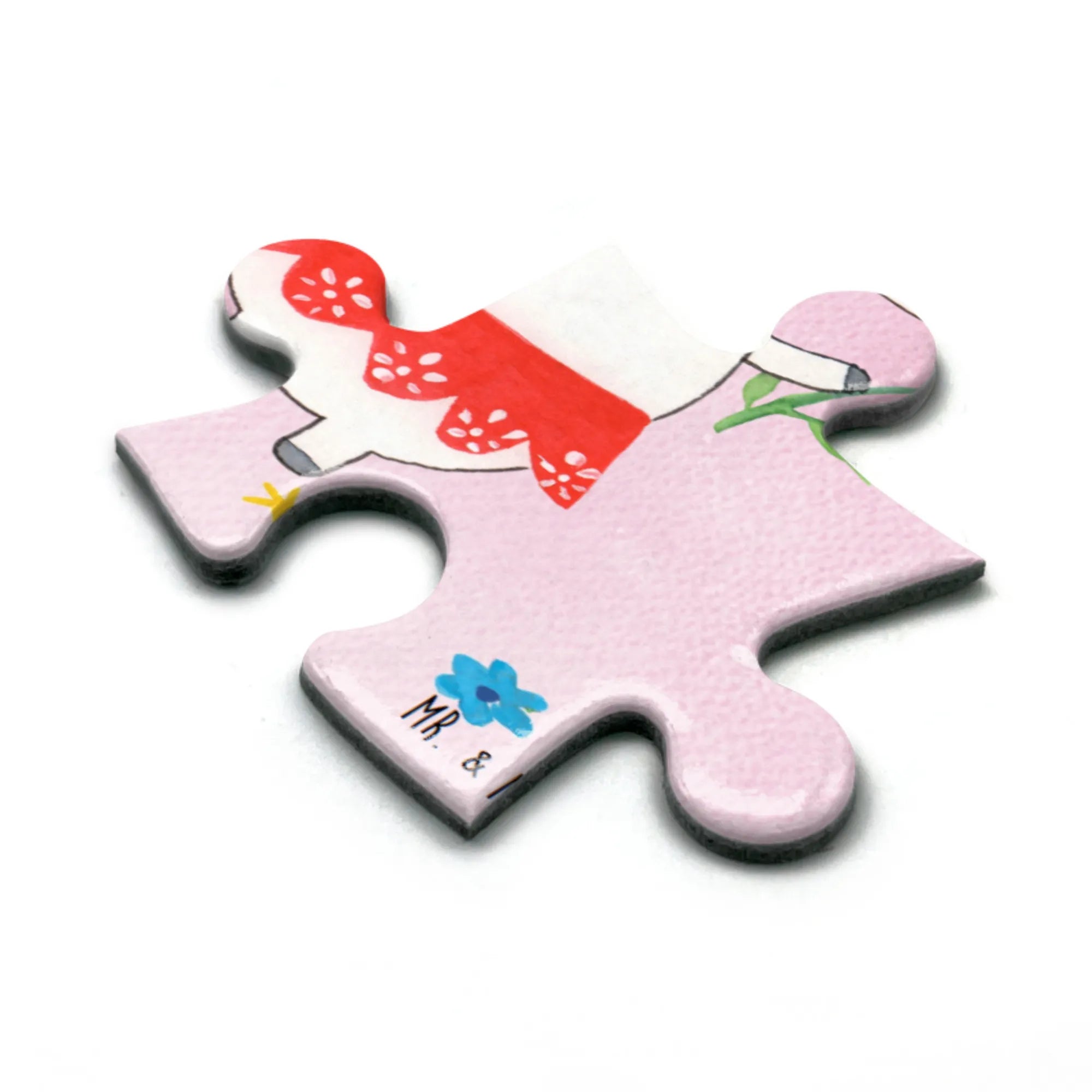 Unsere Motive werden von Mrs. Panda handgezeichnet und mit Liebe in unserer Manufaktur verarbeitet. Die brillante, seidenmatte Oberfläche lässt die Farben strahlen und macht das Puzzle zum Hingucker. Als besonderes Extra bekommst du eine edle Metall-Schmuckdose mit dem Motiv auf dem Deckel – praktisch als Puzzlehilfe und wunderschön zur Aufbewahrung oder als kleines Deko-Objekt.