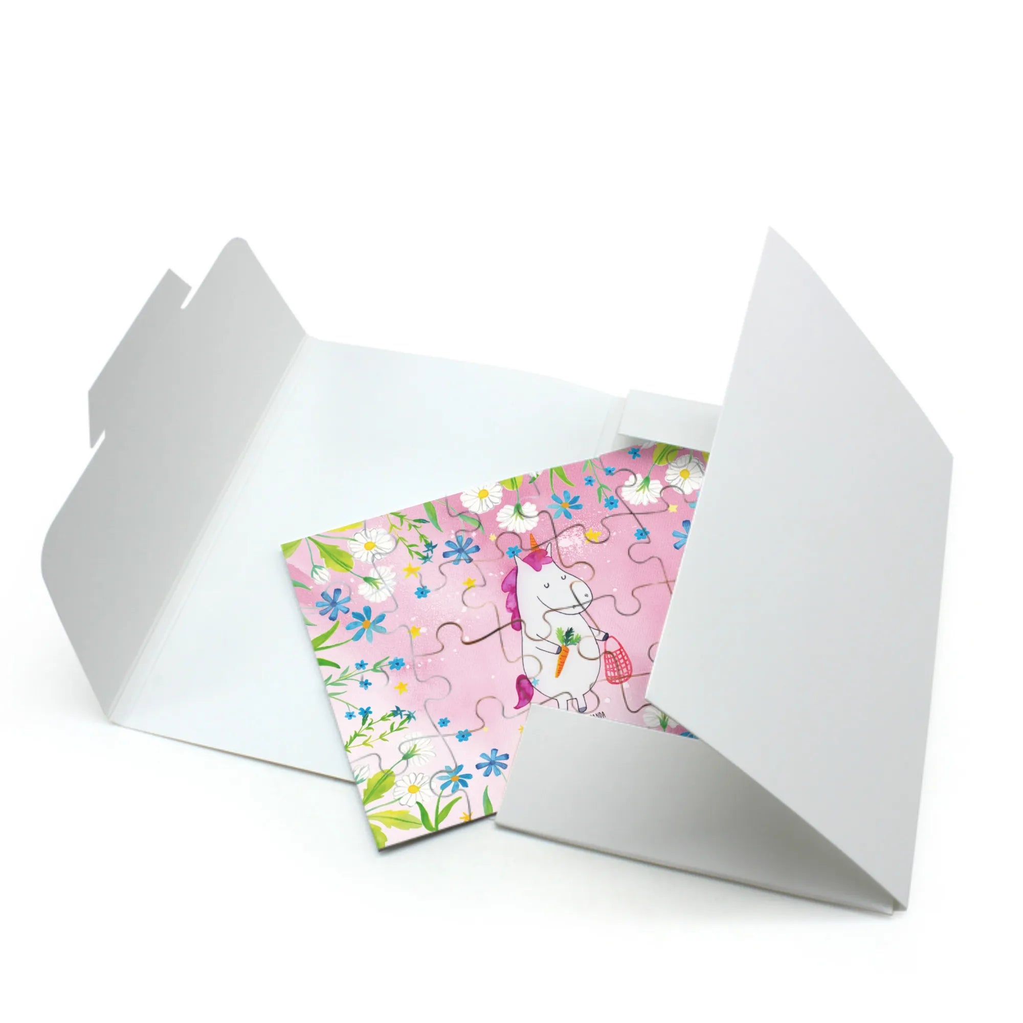 Wir drucken mit umweltfreundlicher Tinte und achten auf eine nachhaltige Verarbeitung in unserer Manufaktur im Herzen Norddeutschlands. Die Kombination aus liebevoller Illustration, praktischer Metall-Schmuckdose und hochwertigem Druck macht dieses Puzzle zu einem besonderen Geschenk aus der Einhorn Kollektion von Mr. & Mrs. Panda.