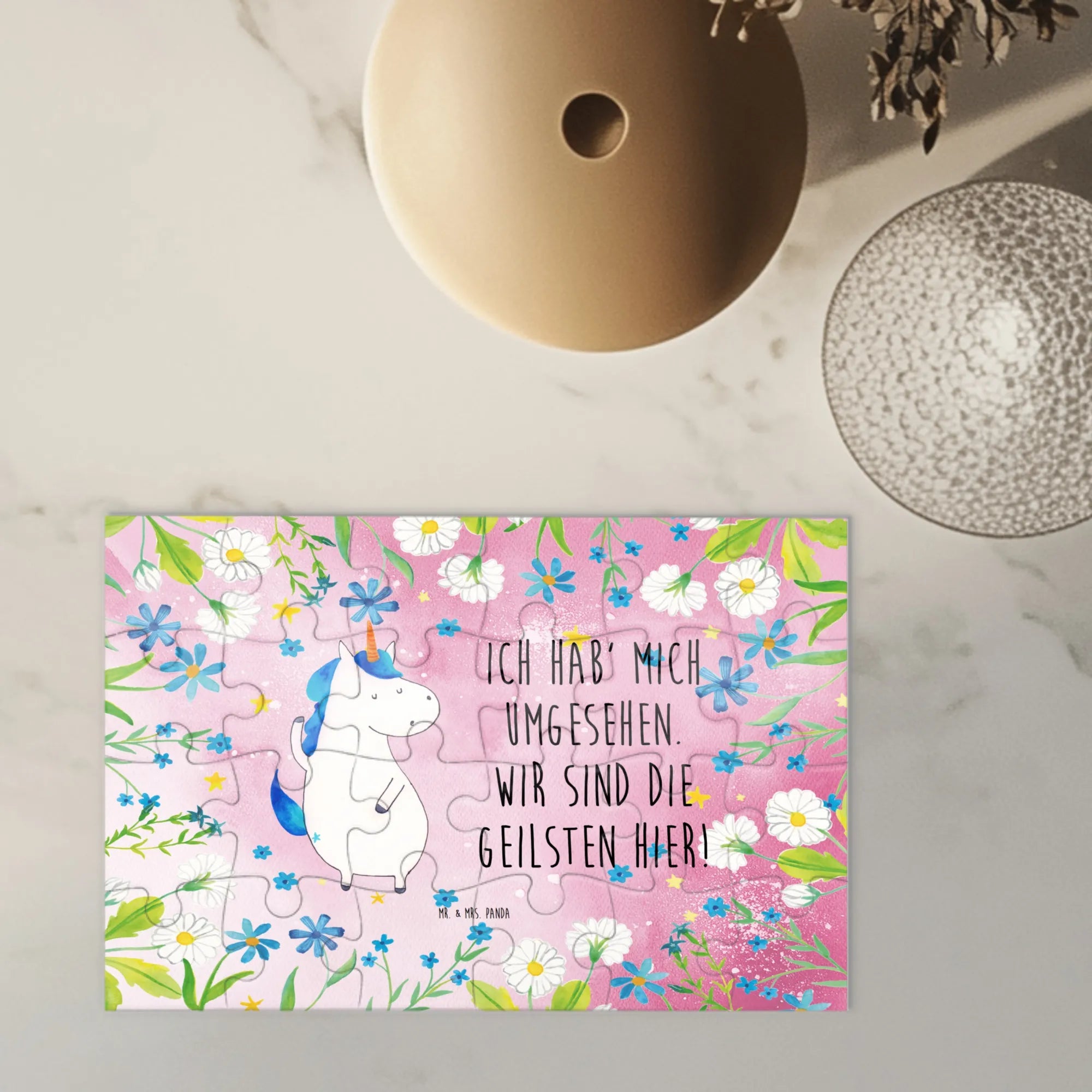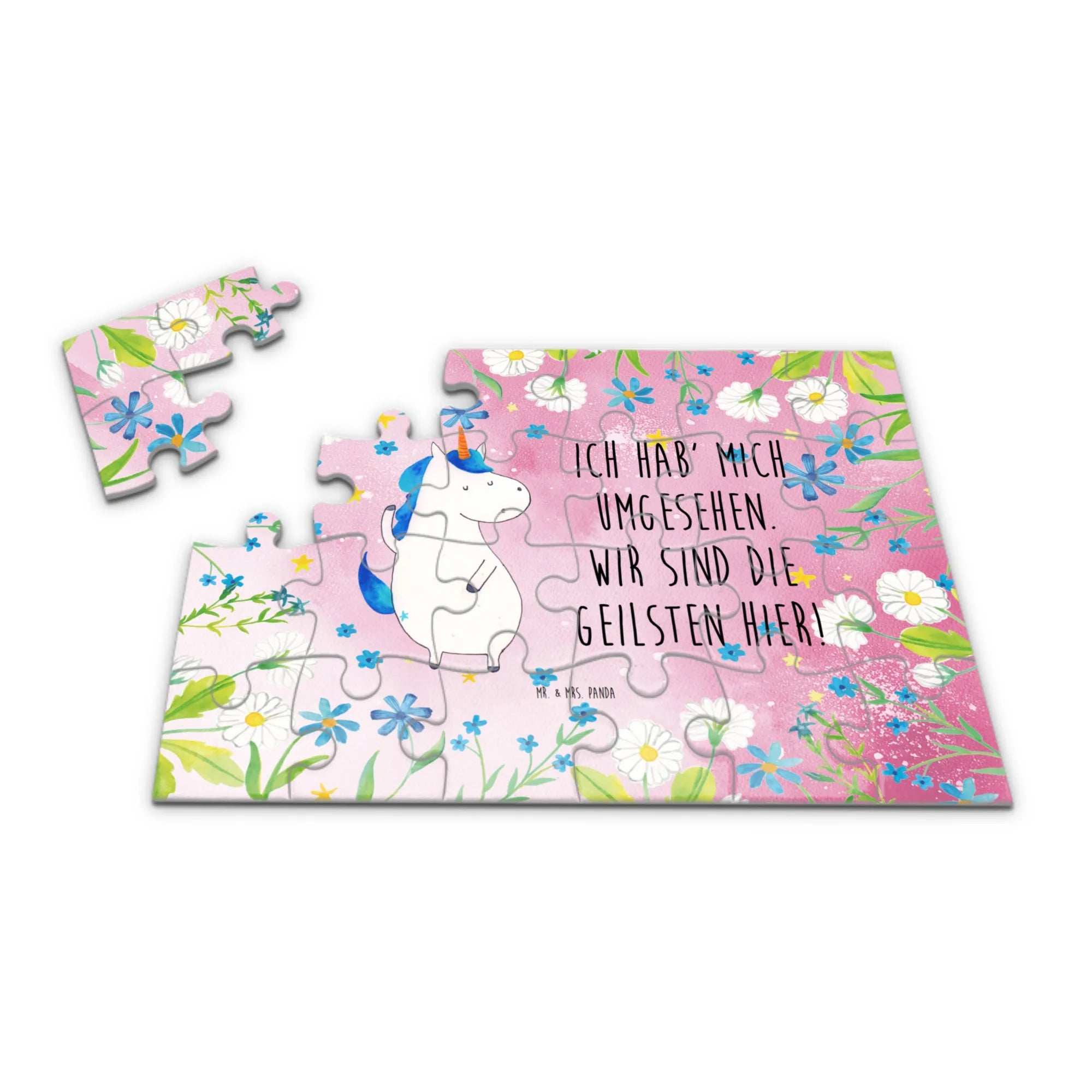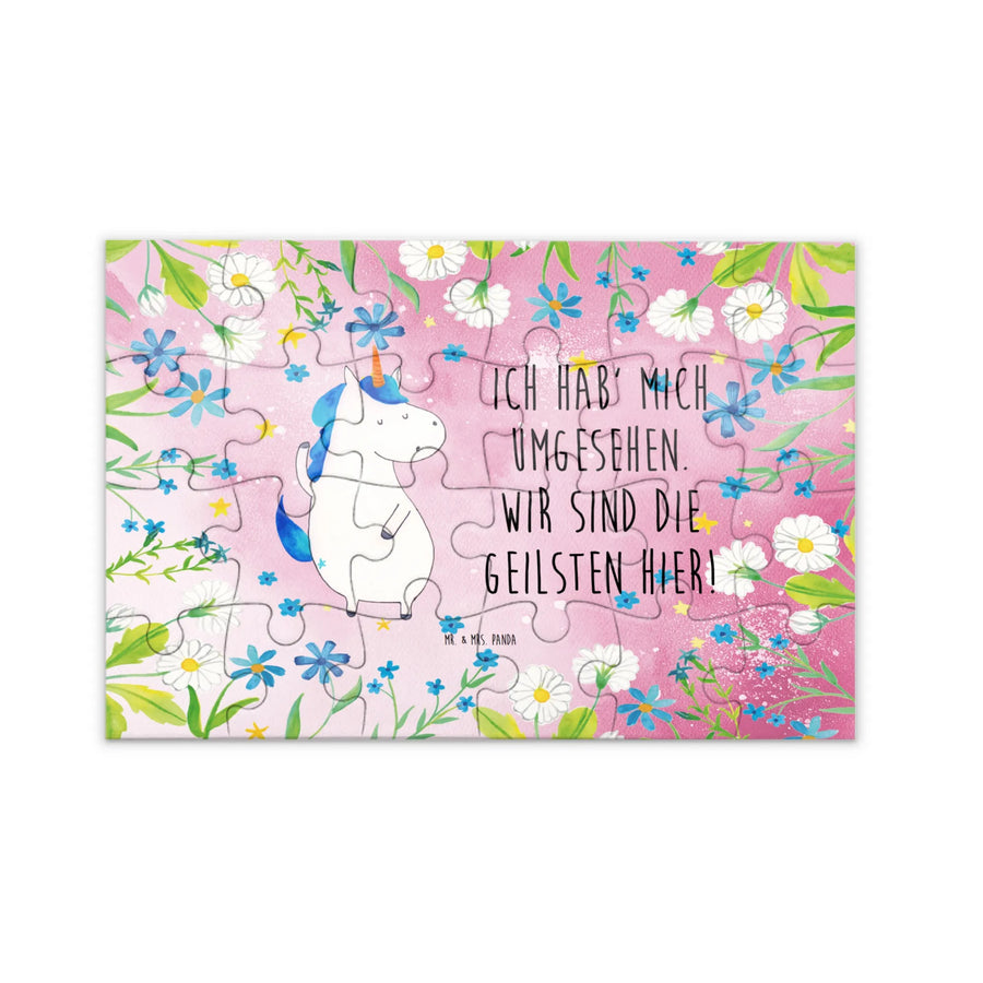 Suchst du ein Geschenk, das Freude macht und zusammenbringt? Unser Puzzle „Einhorn Mann“ aus der Einhorn - Kollektion von Mr. & Mrs. Panda ist genau das! Das liebevoll illustrierte Einhorn strahlt Selbstbewusstsein und Charme aus und zaubert jedem Betrachter ein Lächeln ins Gesicht.