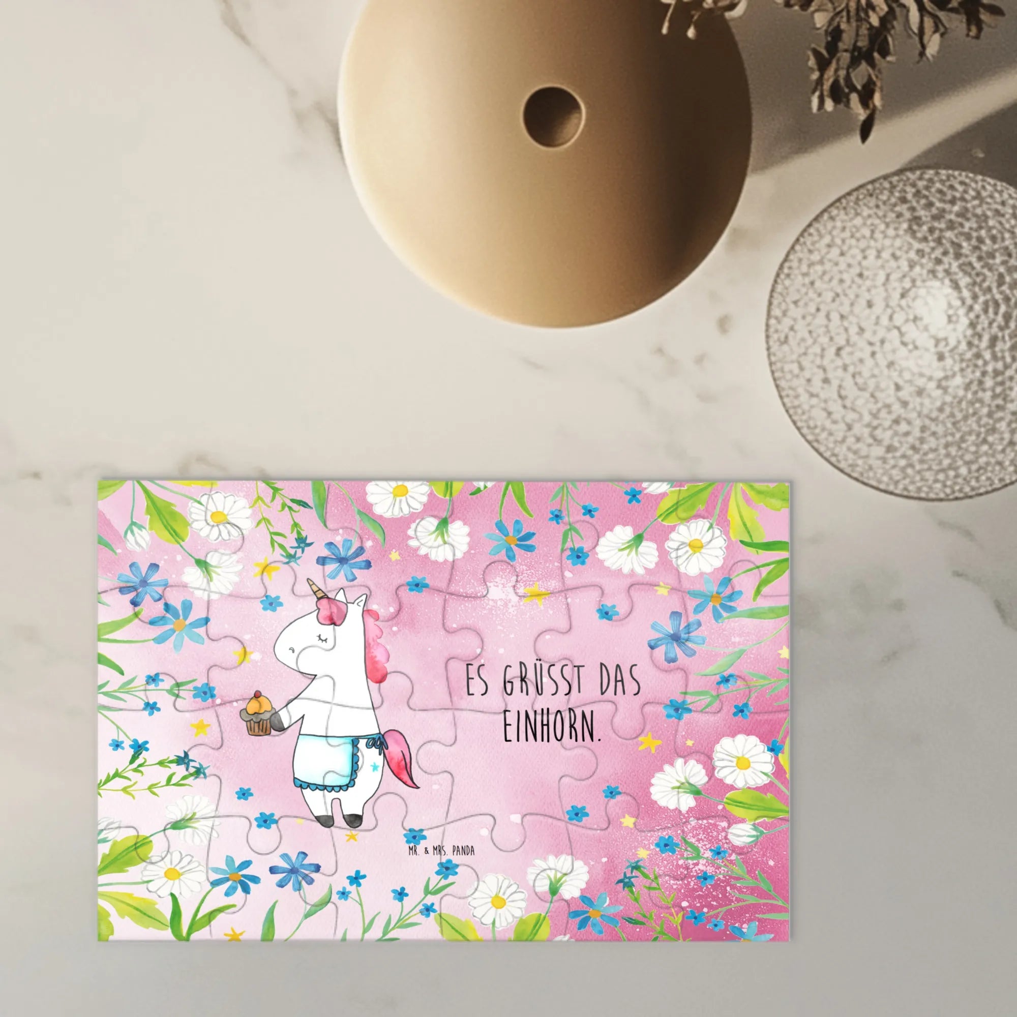 Unser Puzzle "Einhorn Muffin" aus der Einhorn - Kollektion von Mr. & Mrs. Panda ist das ideale Geschenk für alle, die Einhörner, Backen und niedliche Motive lieben. Das charmante Einhorn mit Schürze präsentiert stolz einen selbstgebackenen Muffin – begleitet vom liebevollen Spruch: Es grüsst das Einhorn. Ein perfekter Geburtstagsgruß, Dankeschön für die Kollegin oder einfach eine süße Überraschung.