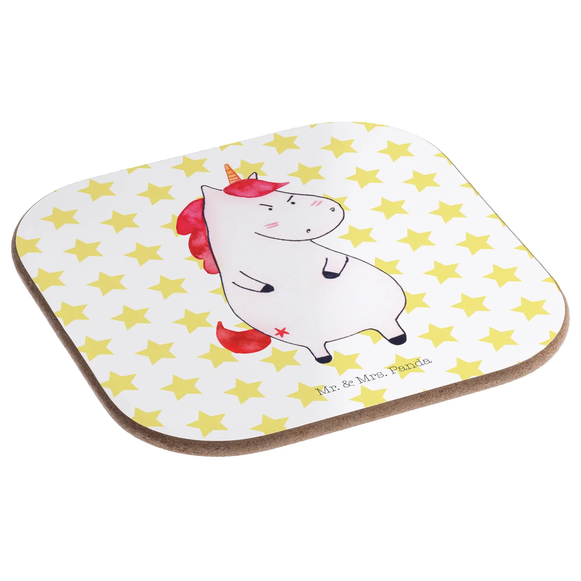 Quadratische Untersetzer Einhorn wütend – Mr. & Mrs. Panda