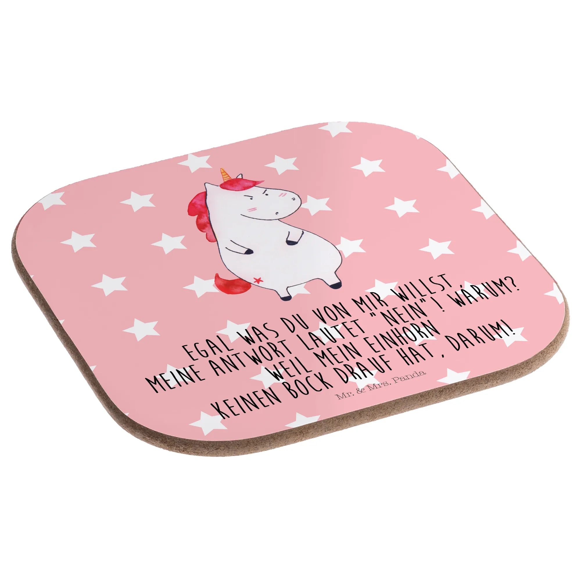 Quadratische Untersetzer Einhorn wütend - mit Spruch - Rot Pastell