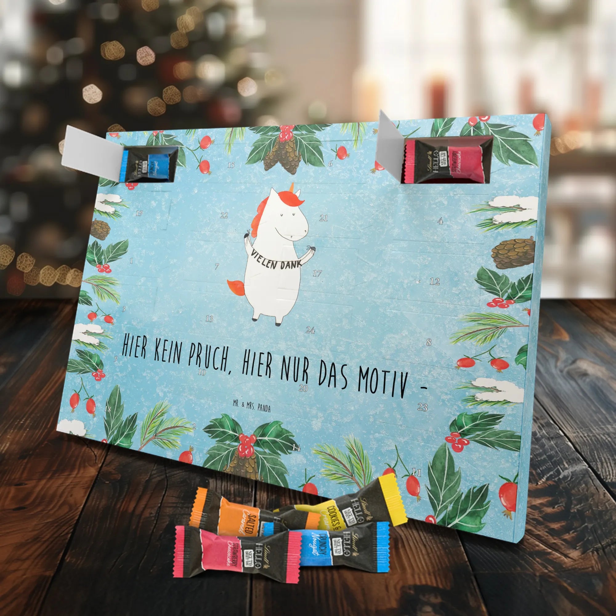 adventskalender pralinen Einhorn Dankeschön - Classic - mit Spruch - Eisblau
