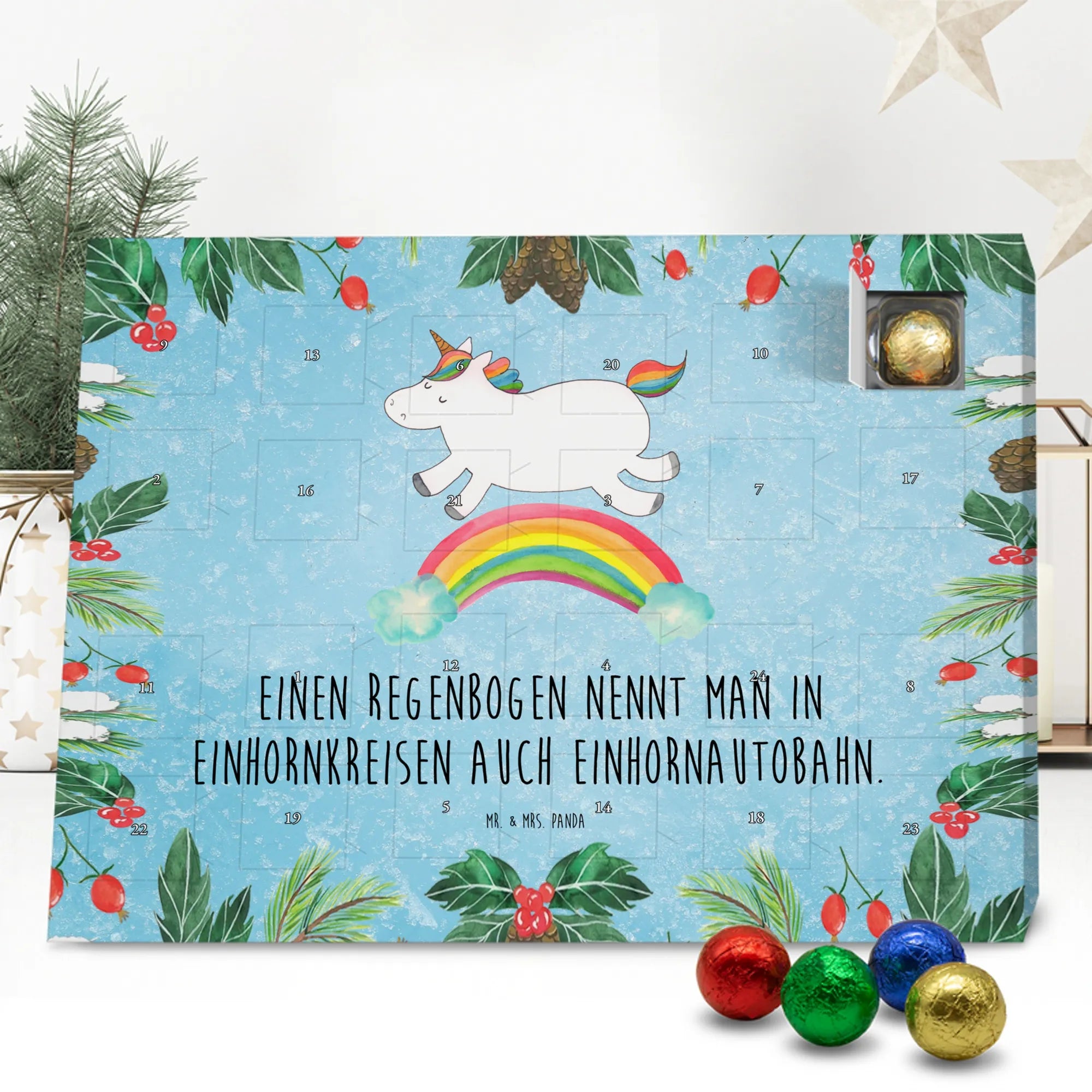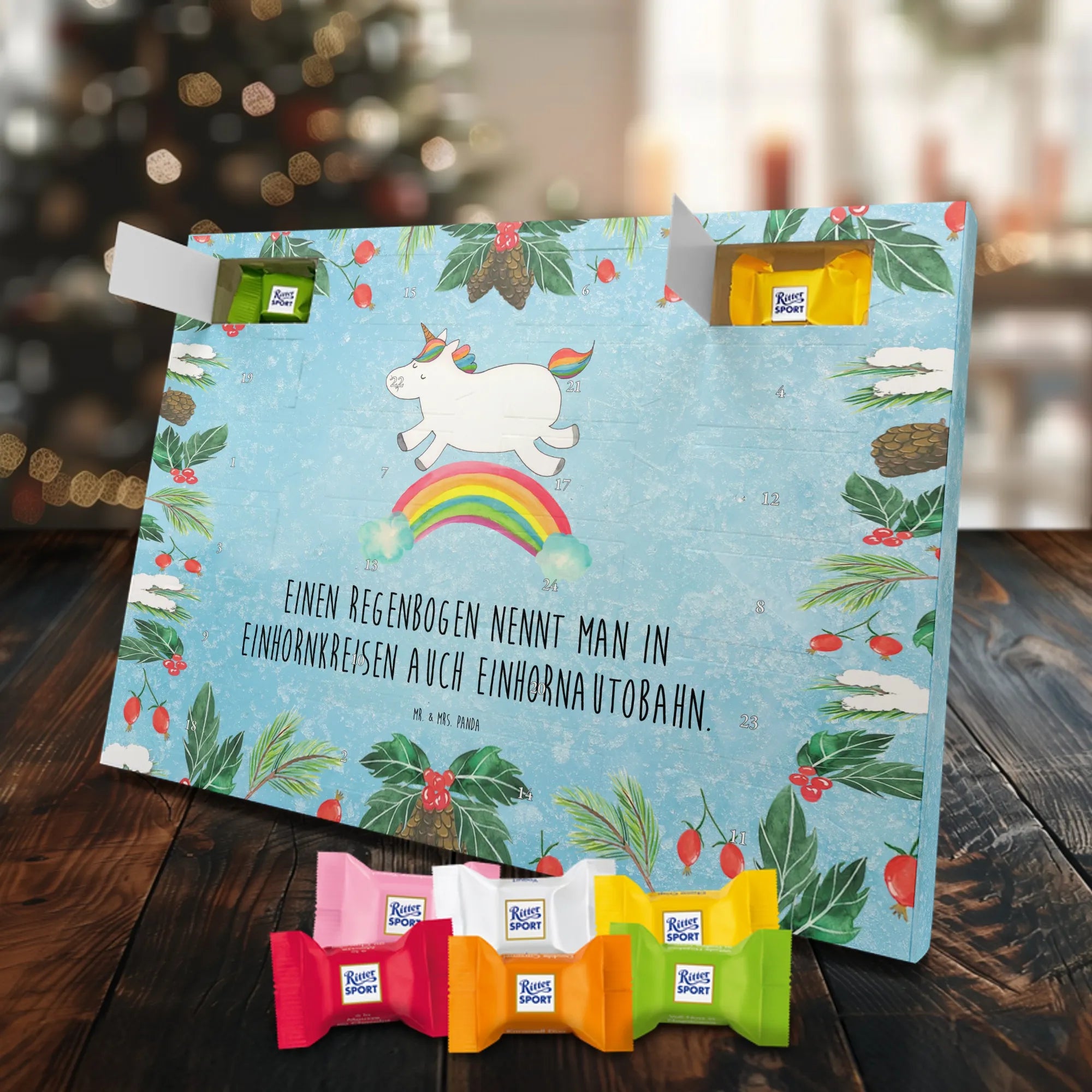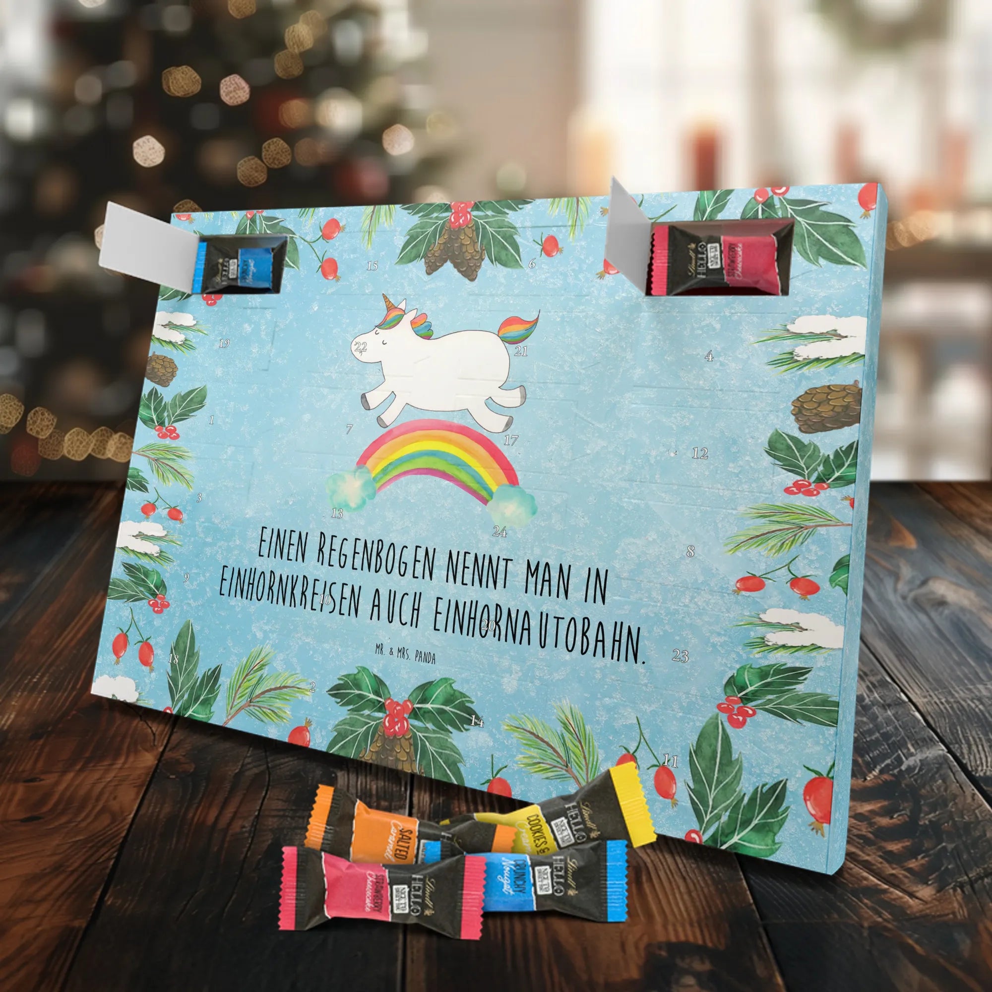 süßigkeiten adventskalender Einhorn Regenbogen - Classic - mit Spruch - Eisblau