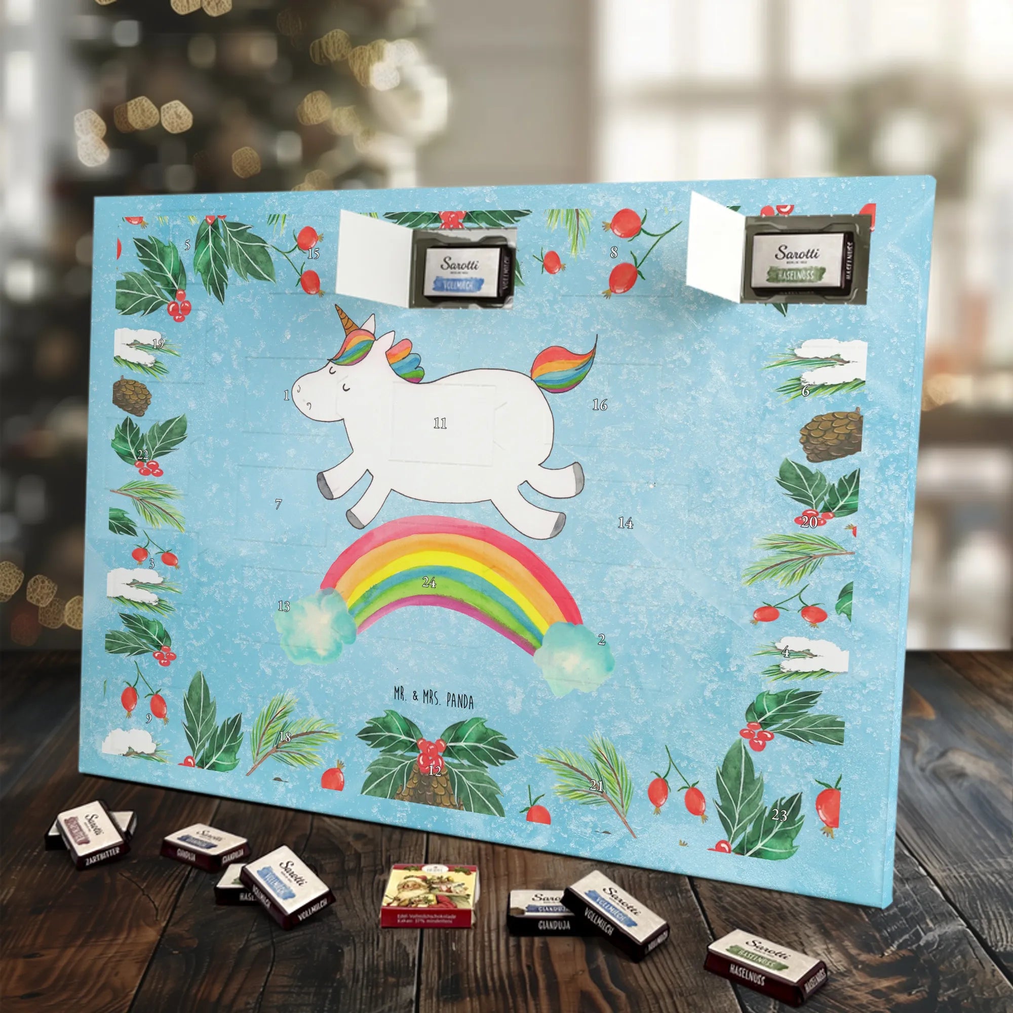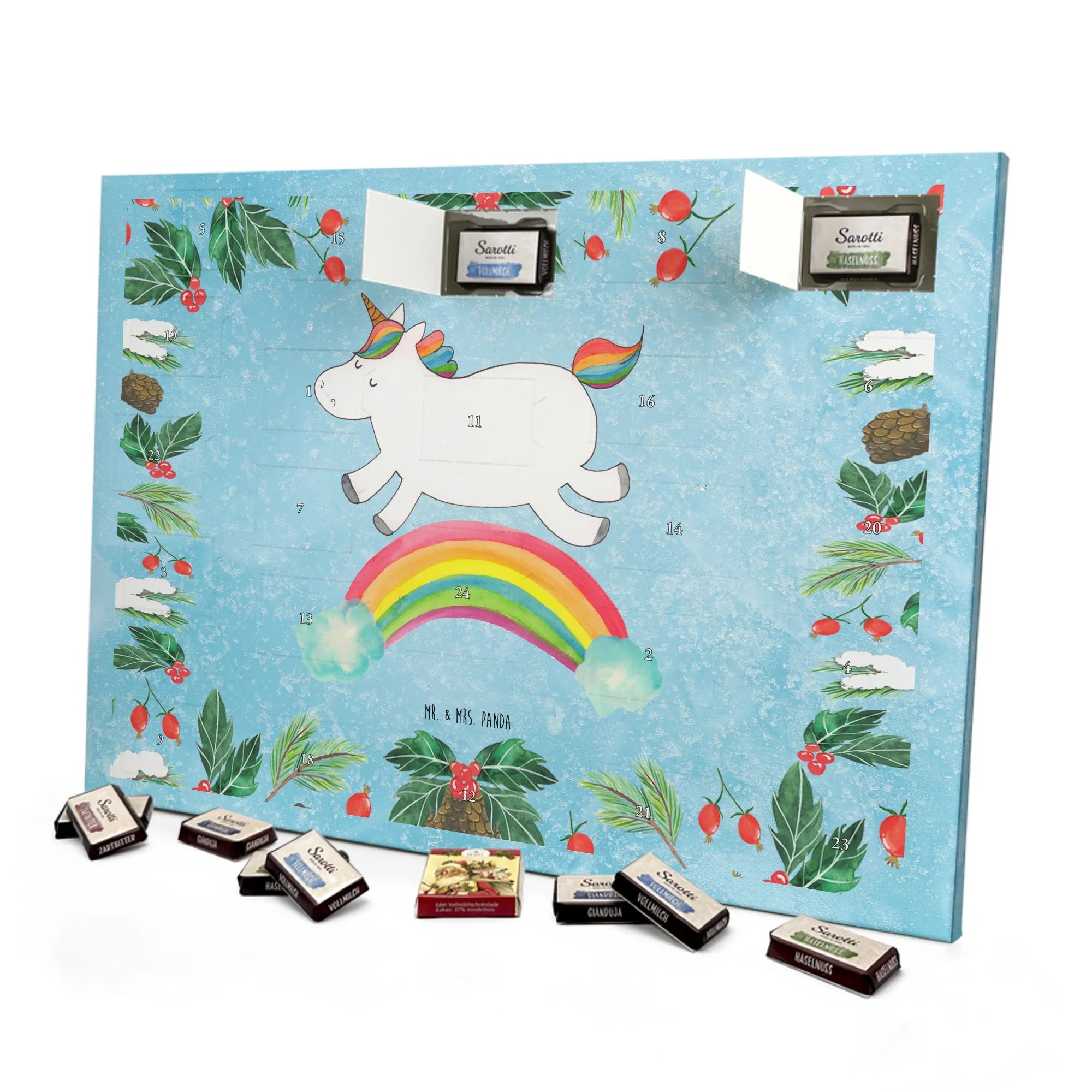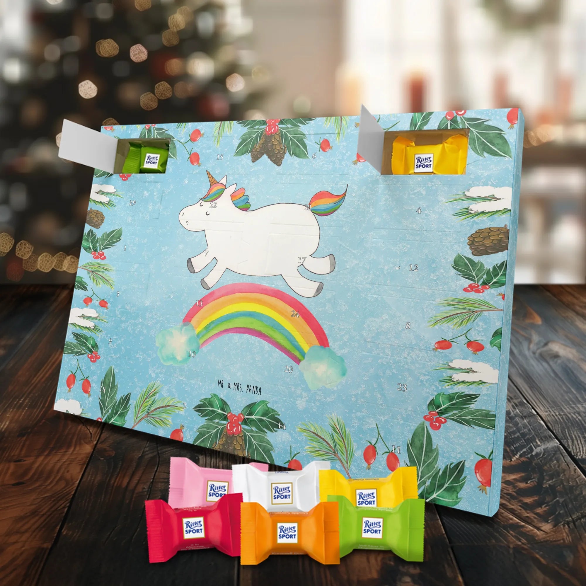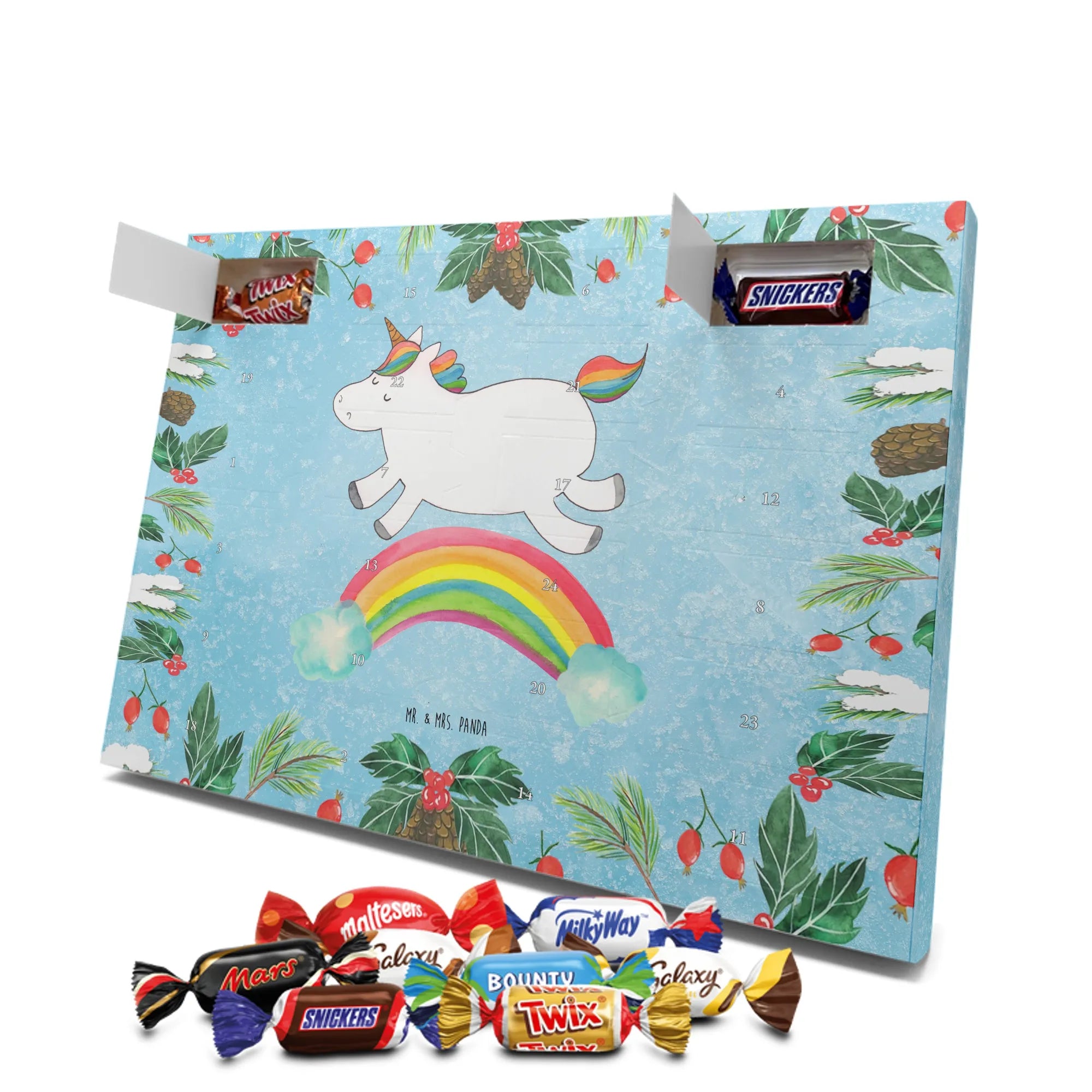süßigkeiten adventskalender Einhorn Regenbogen - Classic - mit Spruch - Eisblau
