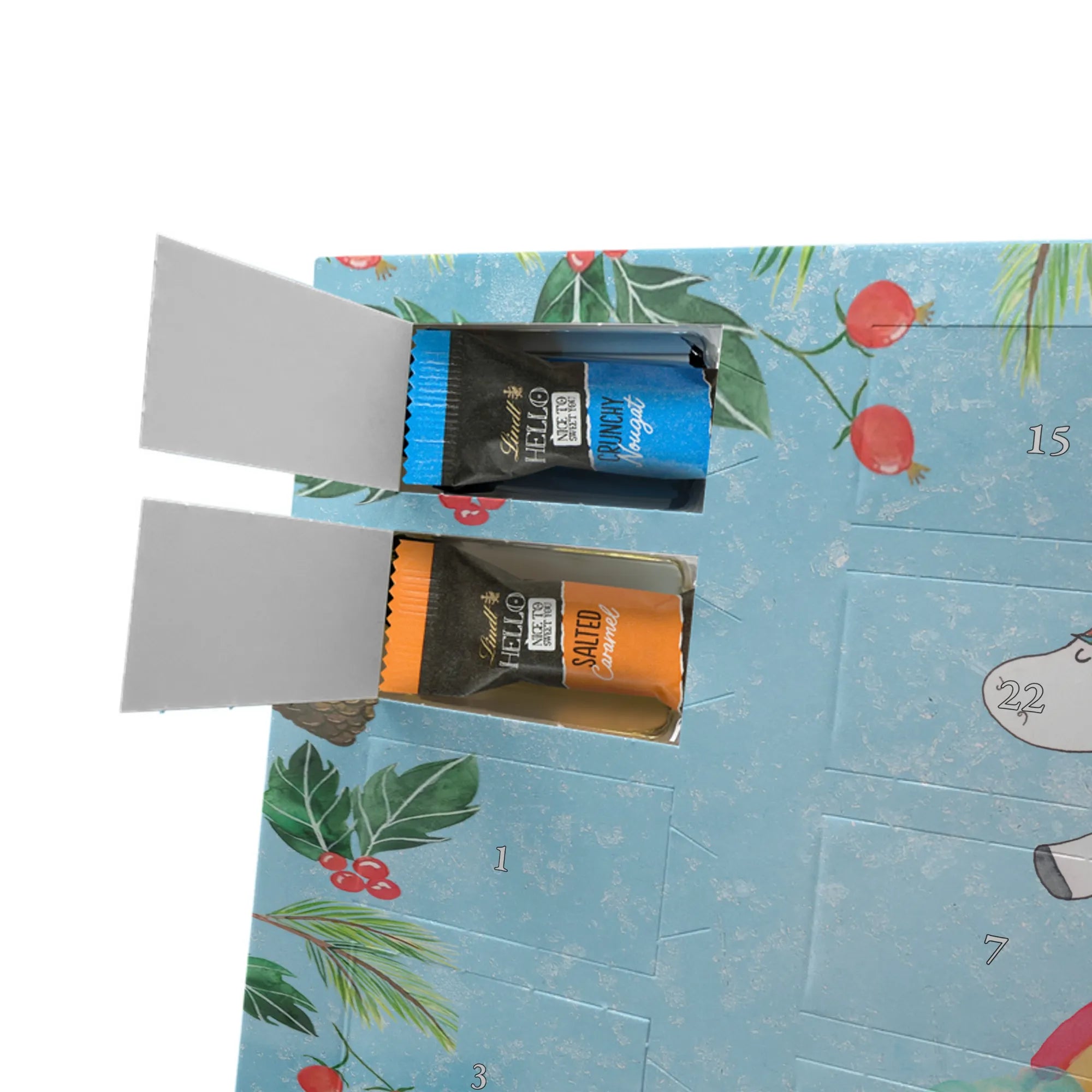 🐼 LINDT HELLO ADVENTSKALENDER: Liebevoll bedruckt, seidenmatte Veredelung, 325×225×27 mm.