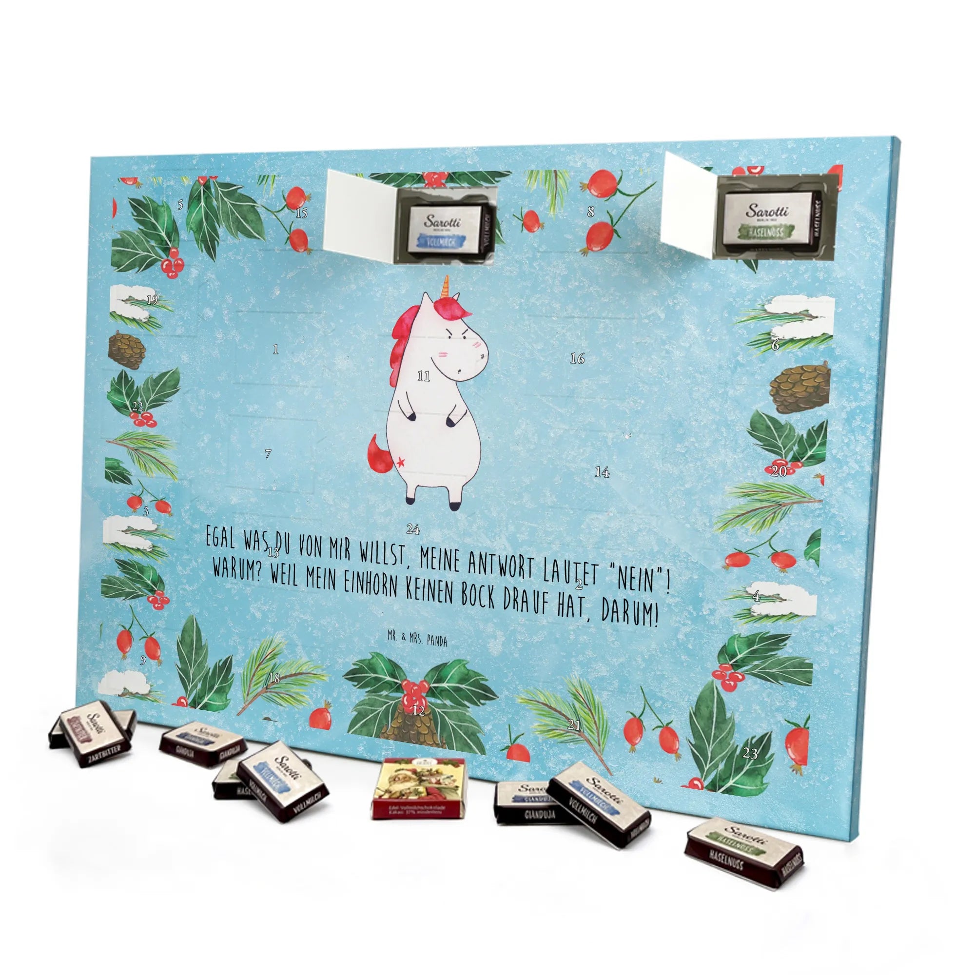 Schokoladen Adventskalender Einhorn Wut - Classic - mit Spruch - Eisblau