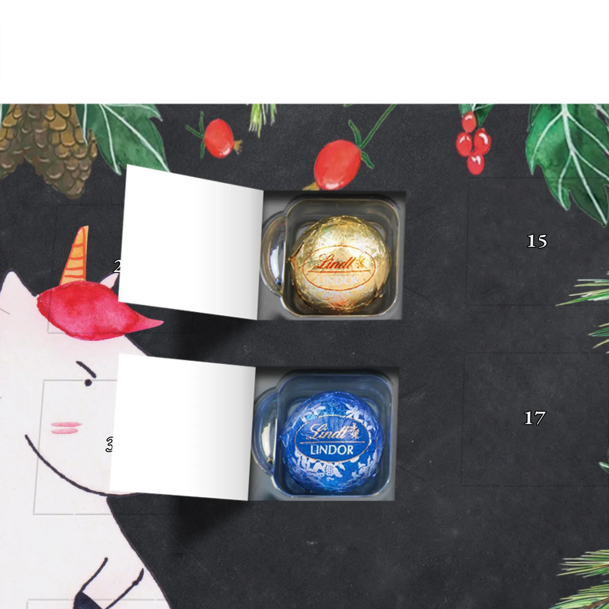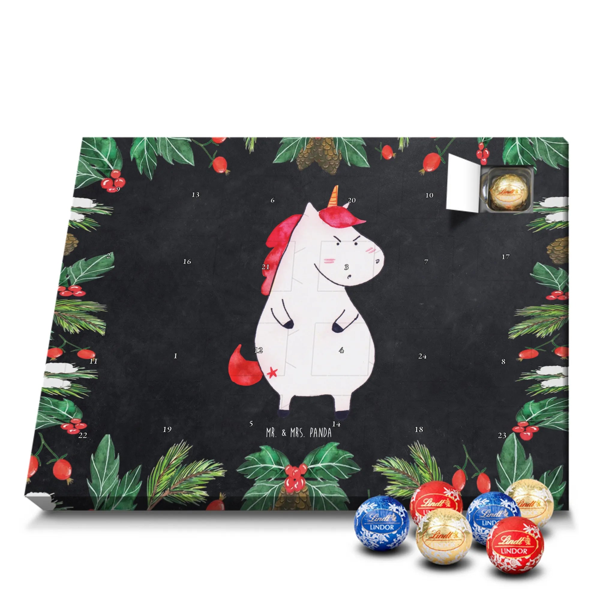 🐼 Schoko Adventskalender mit Lindt Lindor, 24 Kugeln, seidenmatter Druck, nicht personalisierbar.