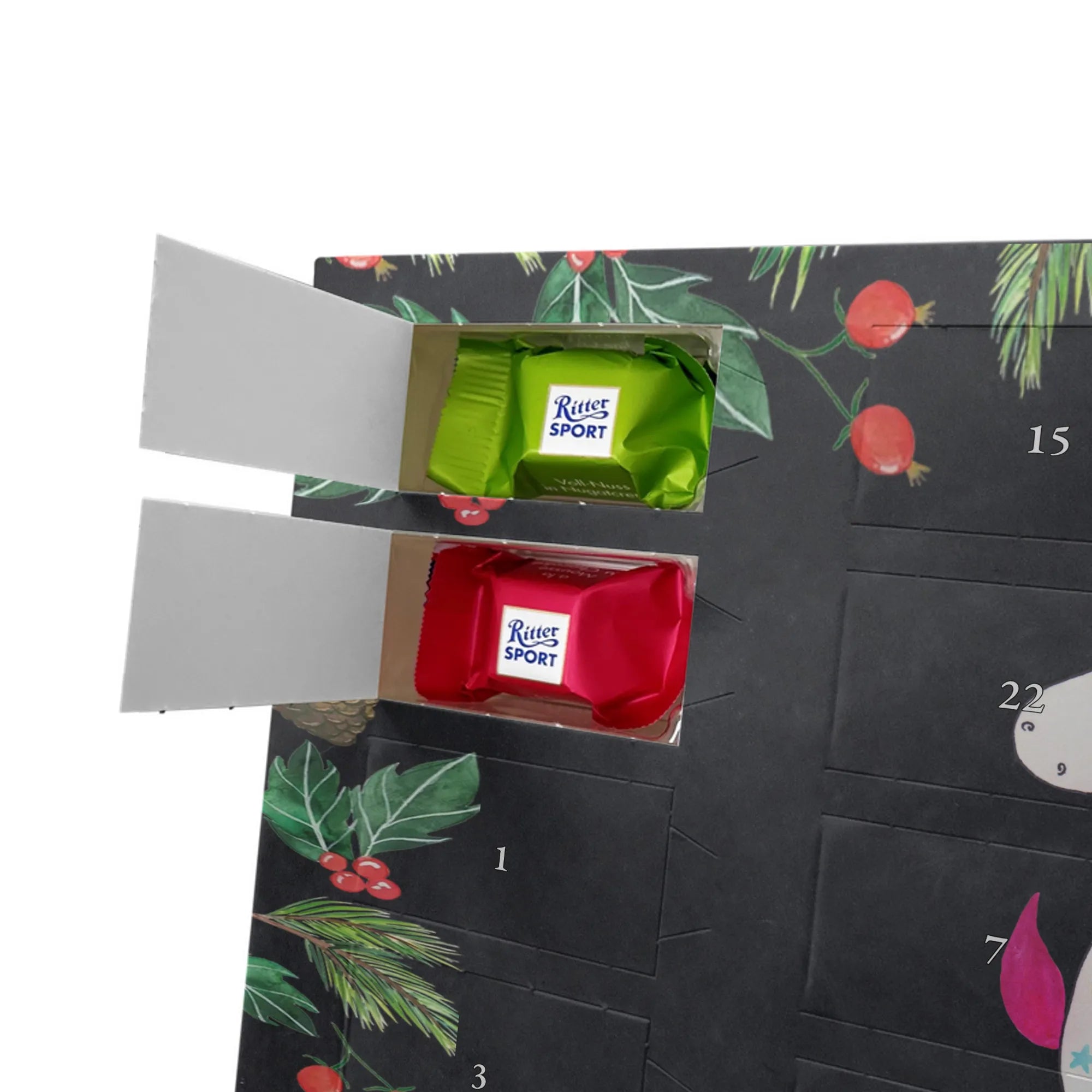 🐼 Adventskalender mit Schokolade: Liebevoll bedruckt, seidenmatter Lack, edles Design.