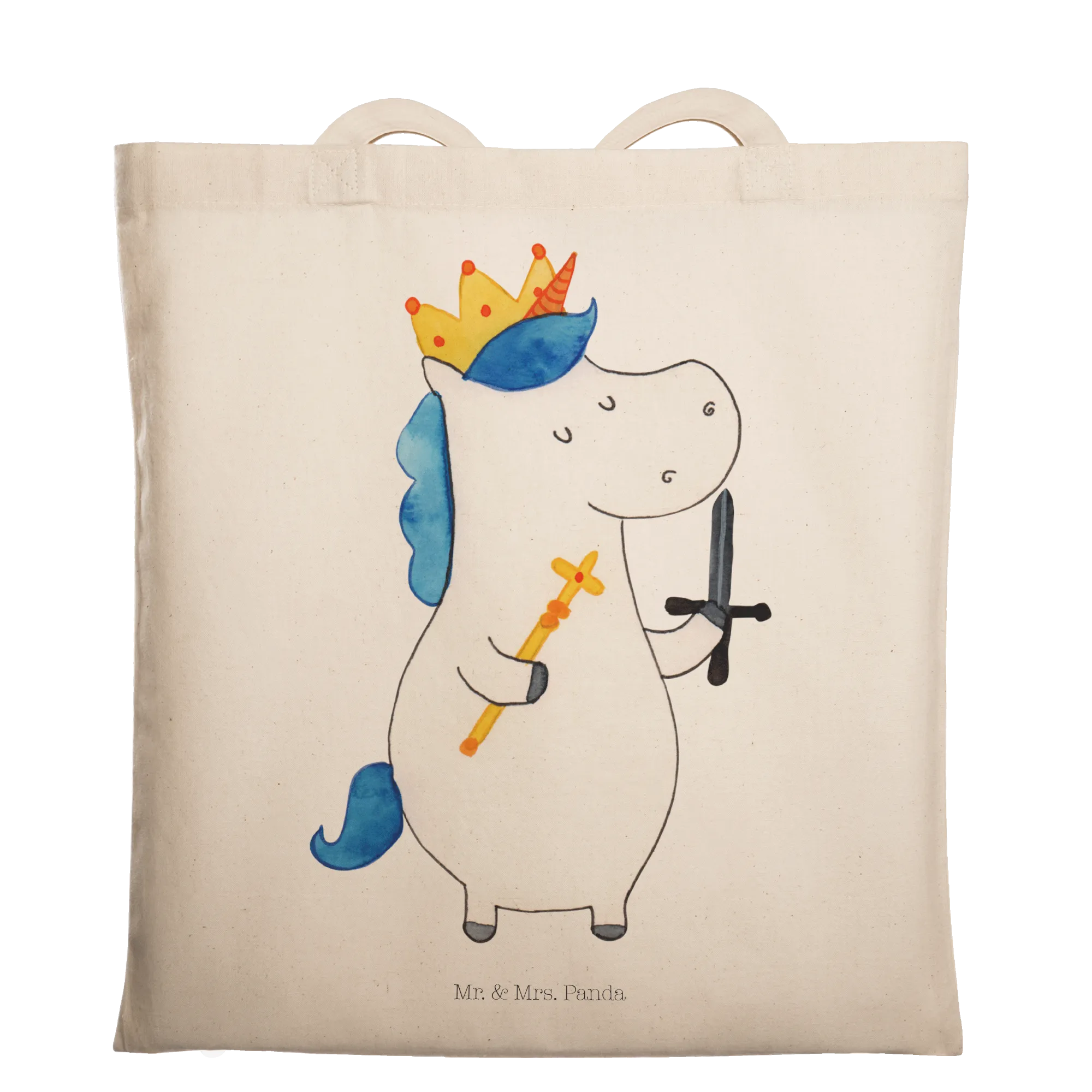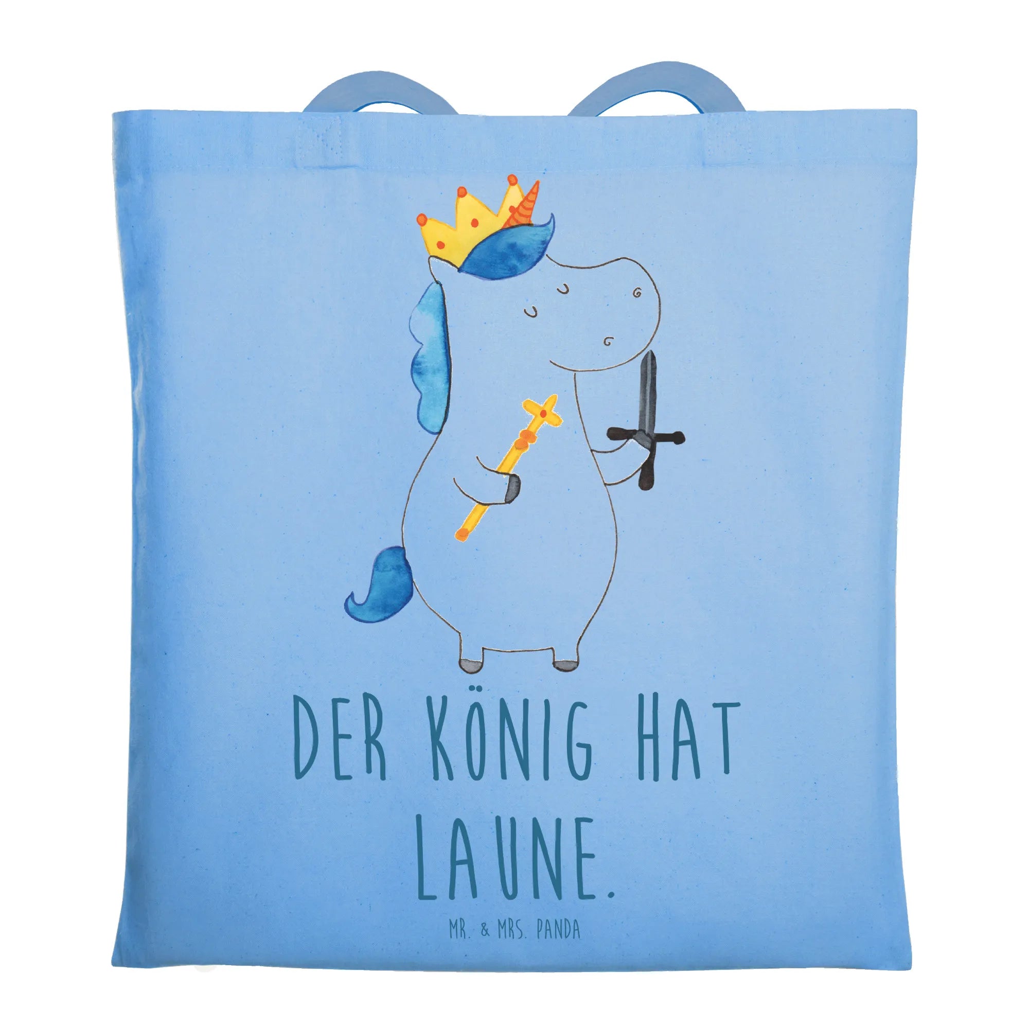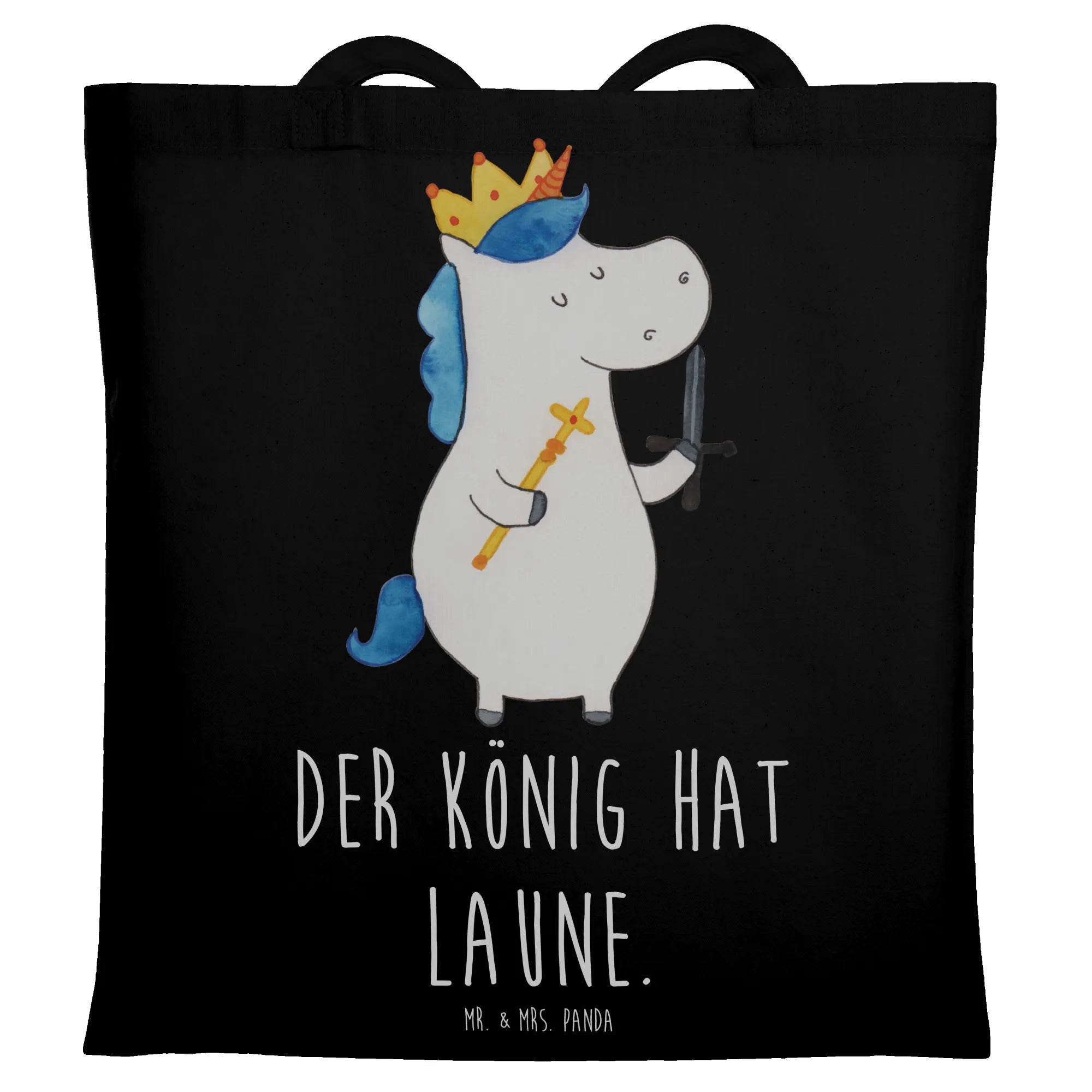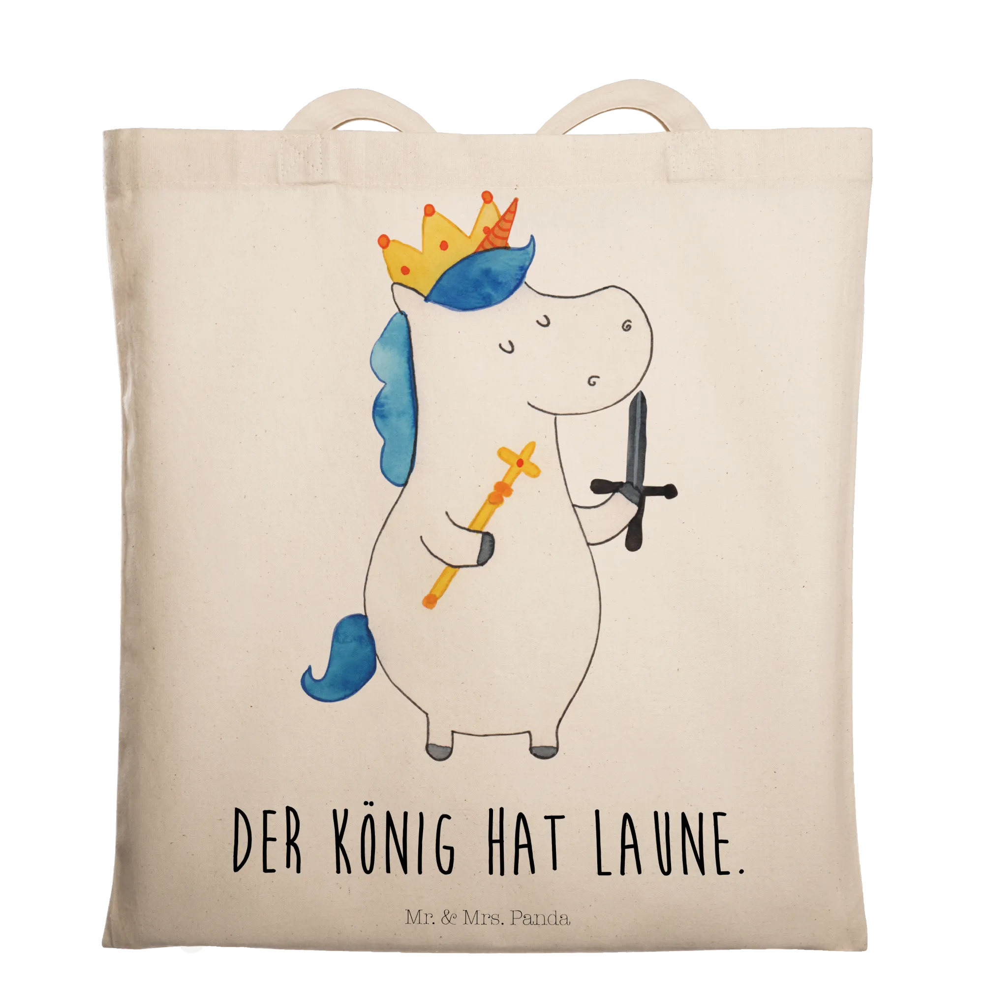 Die Tragetasche Einhorn König mit Schwert aus der bezaubernden Einhorn-Kollektion von Mr. & Mrs. Panda ist der perfekte Begleiter für alle, die das Magische lieben! Sie ist mehr als nur eine Weitetasche - sie verkörpert die Freude und den Spaß, die mit dem Einhorn-Thema einhergehen. Mit dem süßen Motto "Der König hat Laune" wird jeder Tag zu einem kleinen Abenteuer.