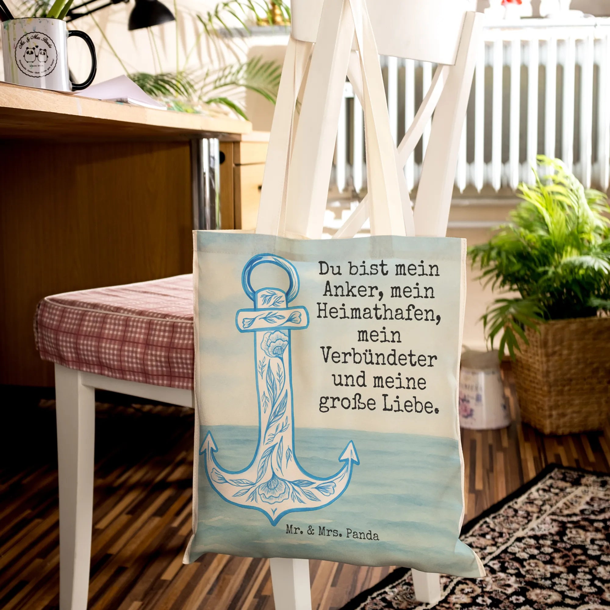 Stell dir vor, wie ein sanft geschwungener Anker in tiefem Blau vor deinen Augen zum Leben erweckt wird, verziert mit zarten Linien, die das Licht einfangen und wie Wellen im Sonnenschein glitzern. Dieses Motiv von Mr. & Mrs. Panda ist nicht einfach nur ein Bild; es ist eine Hommage an den Hafen der Liebe und Sicherheit. Jedes Detail des blauen Ankers erzählt die Geschichte von Geborgenheit und dem tiefen Vertrauen, das wir in unsere Lebenspartner legen. Der Spruch 'Du bist mein Anker, mein Heimathafen, mein Verbündeter und meine große Liebe' umgibt das Motiv wie eine sanfte Brise, die uns liebevoll ins Ohr flüstert, dass in den stürmischsten Zeiten des Lebens immer ein Ankerplatz in der Nähe ist. Lass dieses Bild dein Herz erwärmen und dir einen steten Begleiter sein, der dich daran erinnert, dass wahre Liebe und Freundschaft der sicherste Hafen sind.
