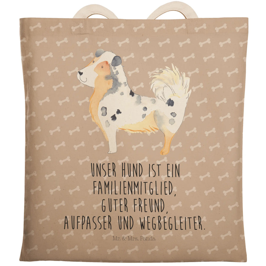 Entdecke die wunderschöne Einkaufstasche von Mr. & Mrs. Panda mit dem süßen Motiv eines Australian Shepherds! Diese Tragetasche ist nicht nur ein echter Hingucker, sondern auch praktisch und umweltfreundlich. Mit ihren robusten Henkeln kannst Du die Tasche ganz unkompliziert überallhin mitnehmen – sei es zum Einkaufen, zum Bummeln durch die Stadt oder für einen entspannten Tag im Park.
