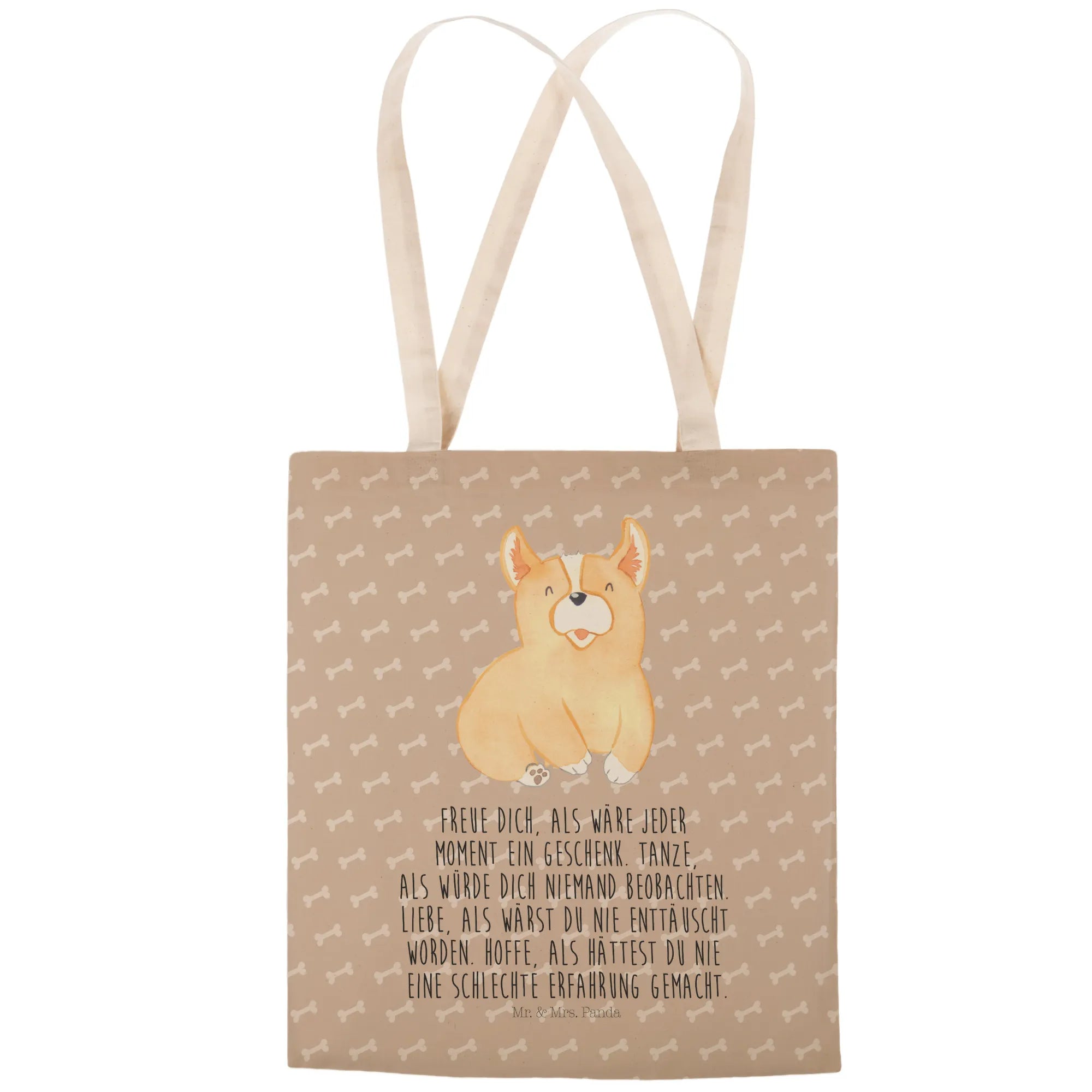 Die Einkaufstasche mit dem süßen Corgi-Motiv von Mr. & Mrs. Panda ist das perfekte Geschenk für alle Hundeliebhaber und Hundebesitzer! Wenn Du auf der Suche nach einer individuellen Tragetasche bist, die nicht nur praktisch, sondern auch voller Lebensfreude steckt, dann hast Du sie gerade gefunden. Diese hochwertige Baumwolltasche ist aus robuster Kunstfaser gefertigt und überzeugt durch ihre Langlebigkeit. Die Maße von 420 mm x 400 mm bieten ausreichend Platz für all Deine täglichen Einkäufe oder für ein gemütliches Picknick im Park mit Deinem besten Freund – Deinem Hund!