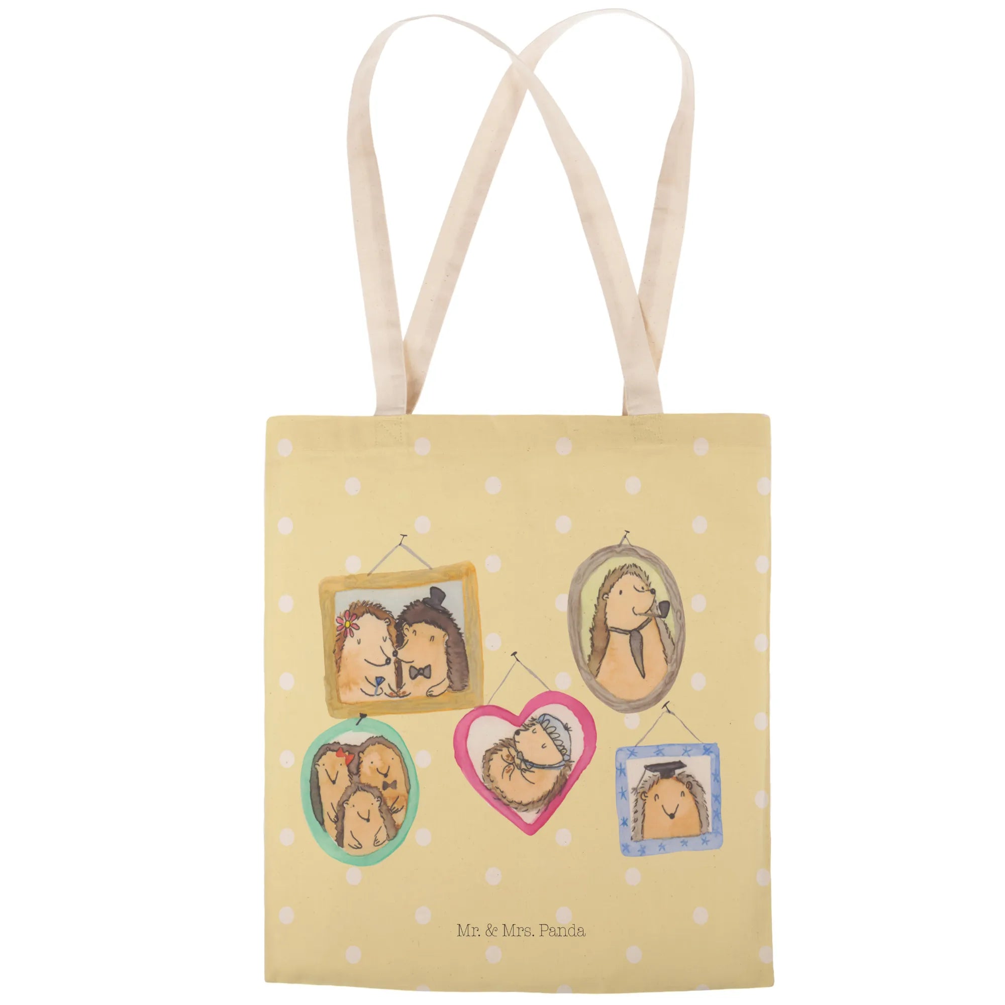 Die Einkaufstasche Igel Familie von Mr. & Mrs. Panda ist das perfekte Geschenk für alle, die die besonderen Momente im Familienleben schätzen. Mit ihrem liebevollen Design, das eine charmante Collage aus Igelfiguren zeigt, strahlt diese Tragetasche Wärme und Zuneigung aus.