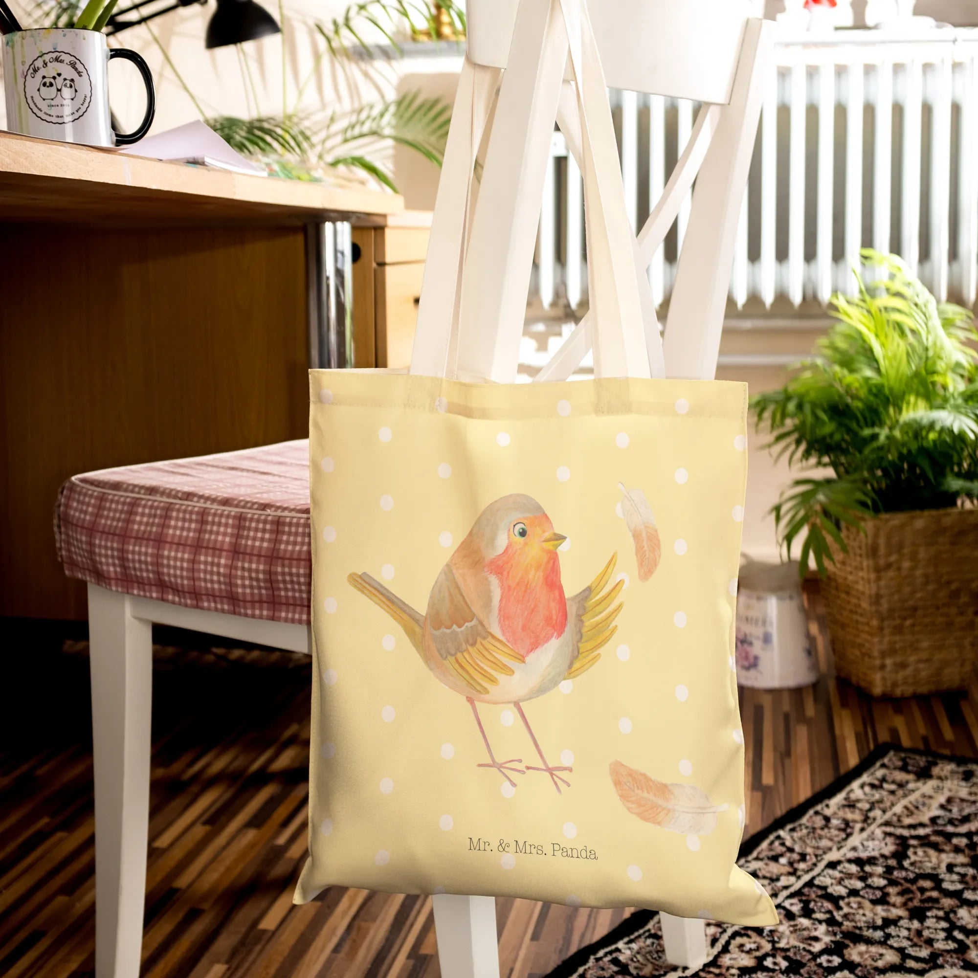 Die Einkaufstasche "Rotkehlchen mit Federn" aus der bezaubernden Small World Kollektion von Mr. & Mrs. Panda ist der perfekte Begleiter für alle, die sich von der Natur inspirieren lassen möchten! Diese wunderschöne Tragetasche besticht durch ihr liebevoll gestaltetes Motiv eines kleinen Rotkehlchens, das inmitten bunter Federn strahlt. Ideal für den Einkauf oder einen täglichen Ausflug, denn diese Tasche ist robust und belastbar, sodass du sie unzählige Male wiederverwenden kannst.