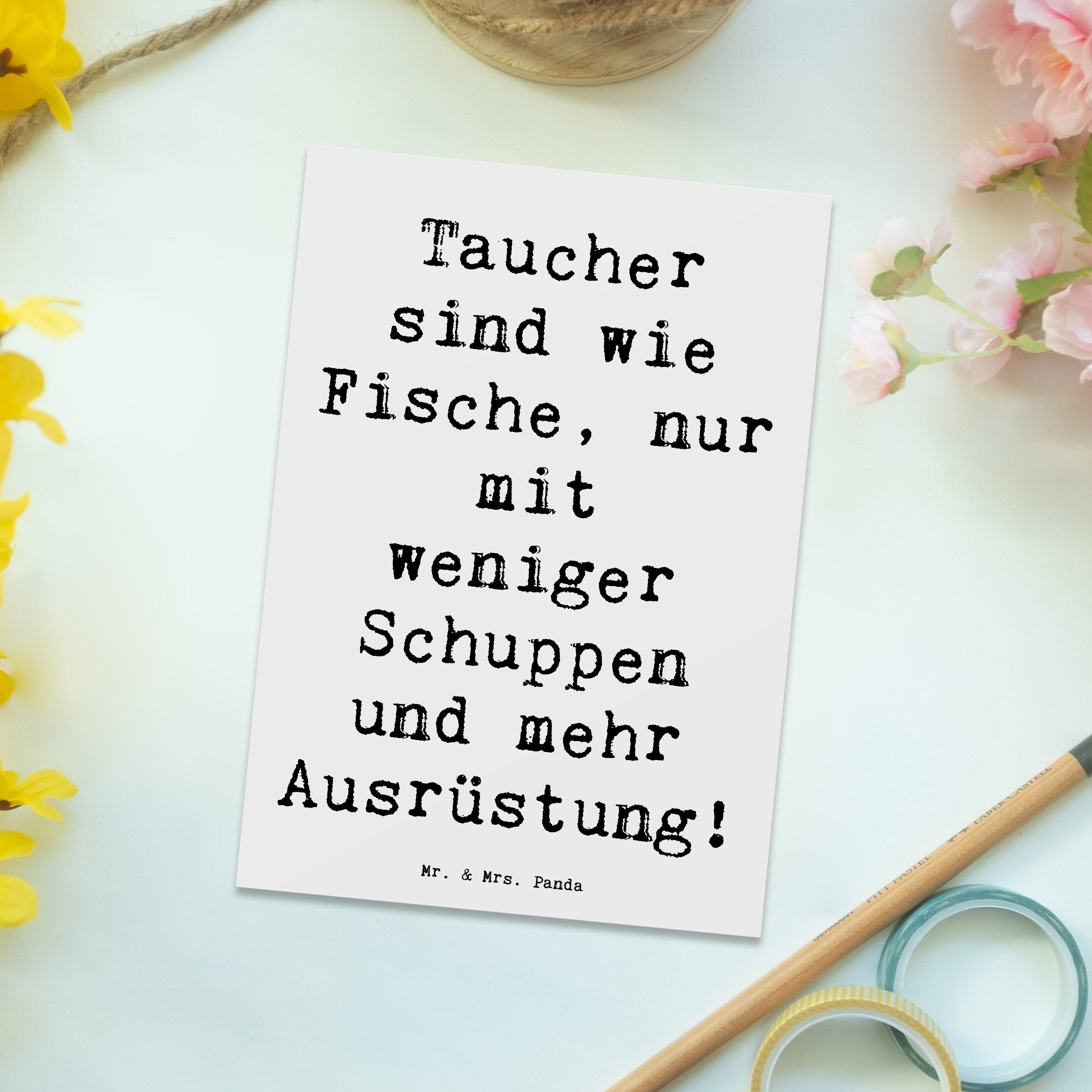 Manchmal braucht man einfach eine kleine Aufmunterung oder das perfekte Geschenk für einen Sportfreund! Unsere Postkarte mit dem lustigen Tauchen-Motiv von Mr. & Mrs. Panda ist genau das, was Du suchst. Diese einzigartige Postkarte bringt nicht nur ein Lächeln auf die Gesichter von Sportliebhabern, sondern eignet sich auch optimal als Einladungskarte, Geburtstagskarte oder Dankeskarte.