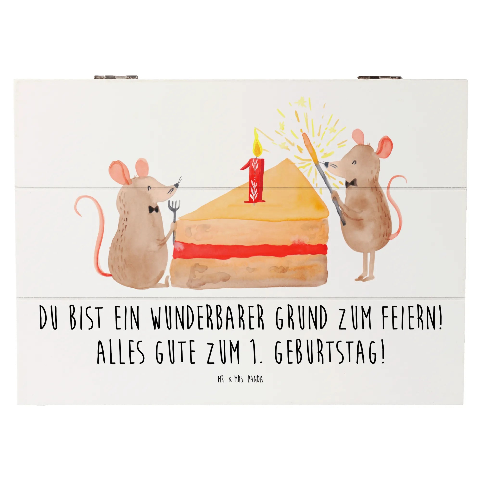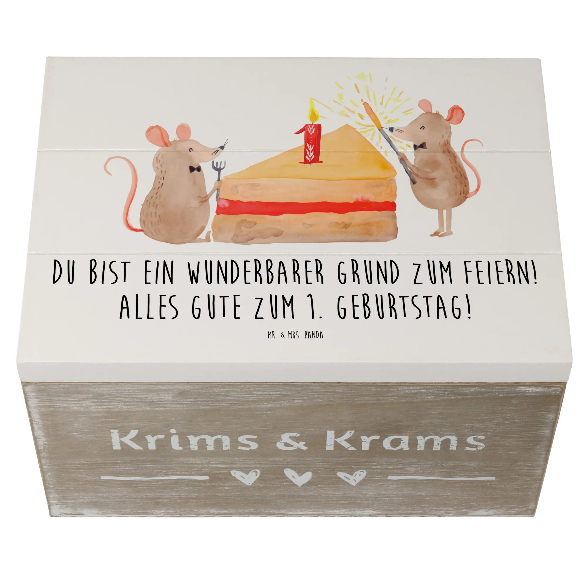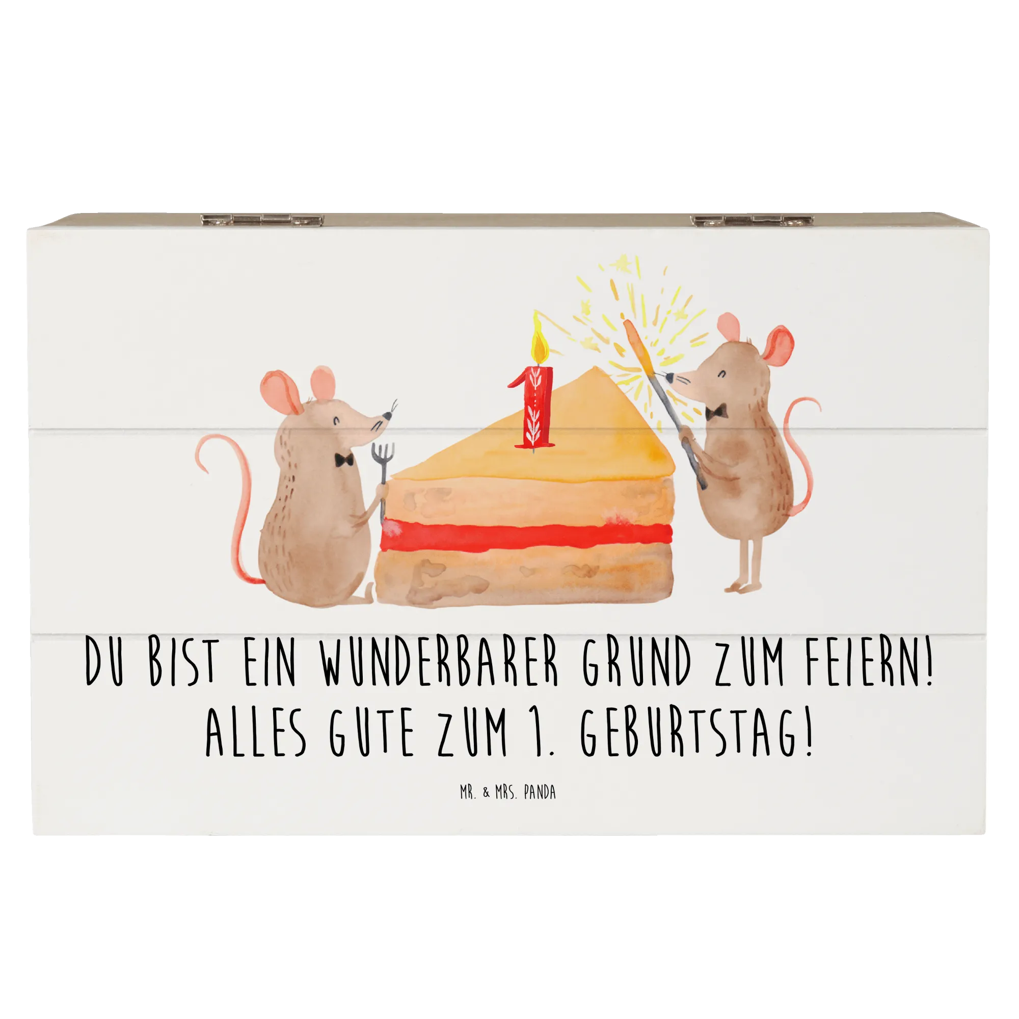 Die wunderbare Holzkiste zum 1. Geburtstag von Mr. & Mrs. Panda ist das perfekte Geschenk, um diesen besonderen Tag gebührend zu feiern! Mit dem liebevollen Spruch "Du bist ein wunderbarer Grund zum Feiern! Alles Gute zum 1. Geburtstag!" in wunderschöner Schrift wird diese Kiste zu einem einzigartigen Aufbewahrungsort für die schönsten Erinnerungen.